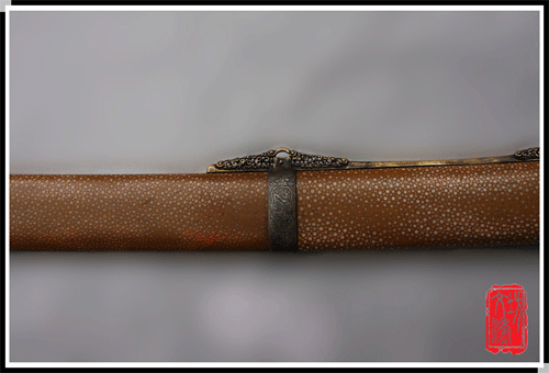鞘染鳝鱼黄色鱼皮做阴刻穿枝莲花开光龙饰