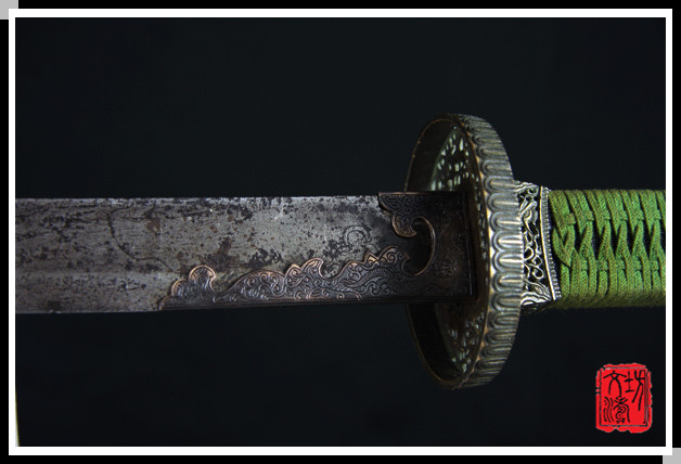 修复后: 鞘:包鱼皮上黑灰色大漆且反复对色更觉古朴大方;