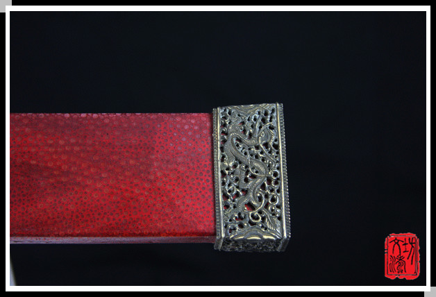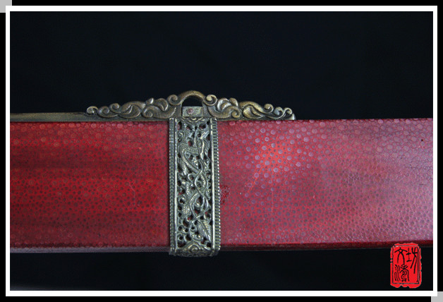 鞘:珍珠鱼皮上朱红色大漆;