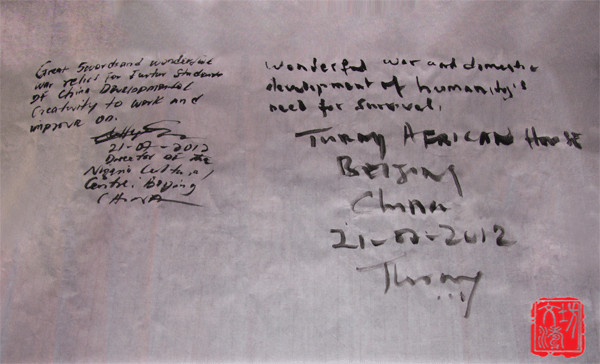 尼日利亚文化中心主任乌马乌可吉——克利福特 参观文涛坊古兵器博物馆 并题字 以示鼓励!!!