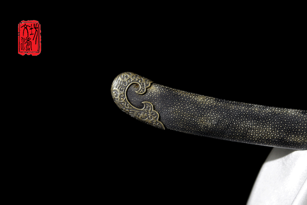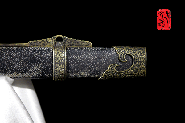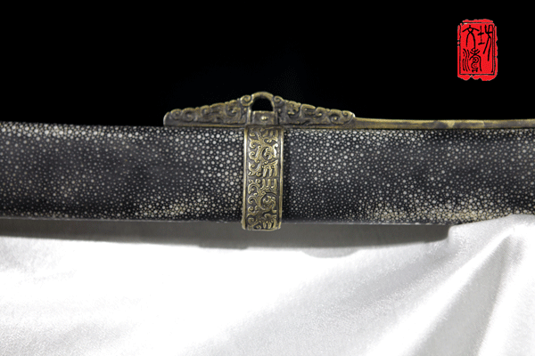鞘:包珍珠鱼皮上灰黑色漆,经反复对色后更显古朴;