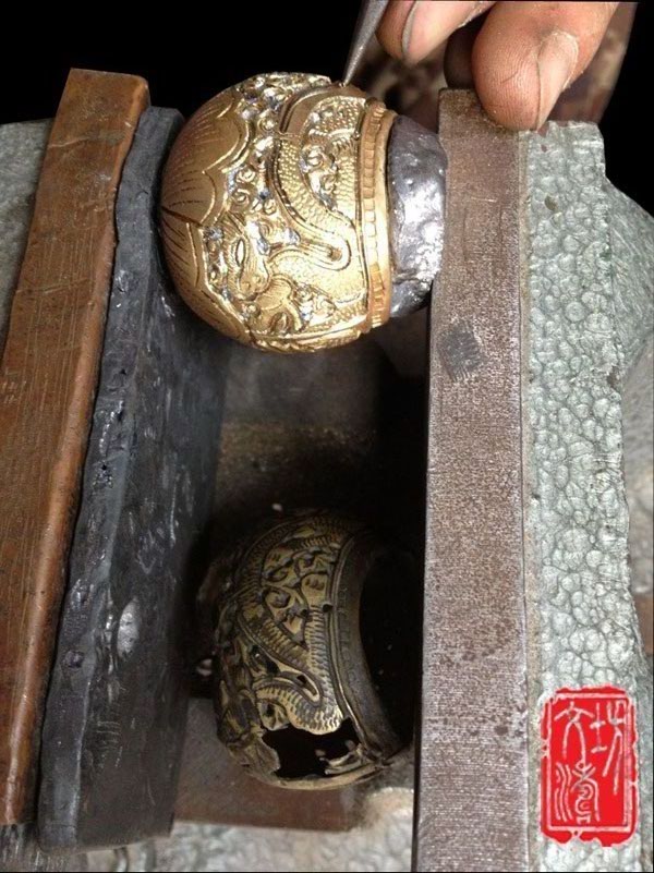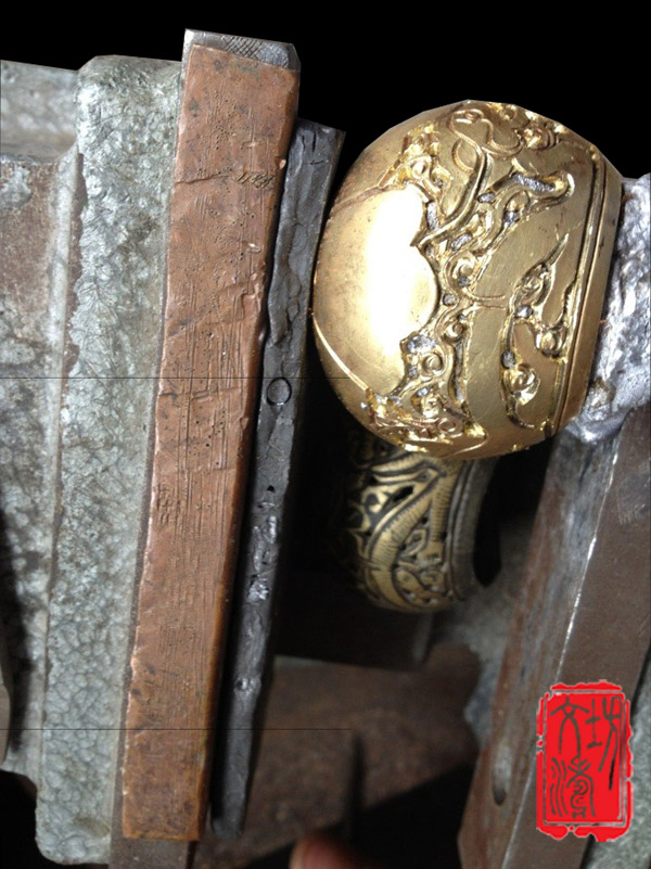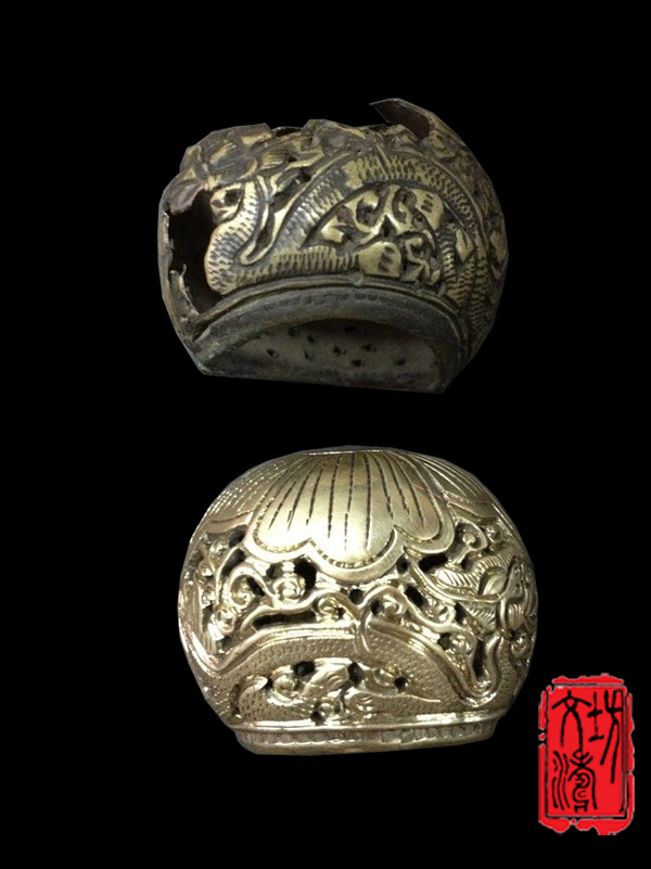 这个铜柄首是在原来的基础上修补过的还是新做的?、