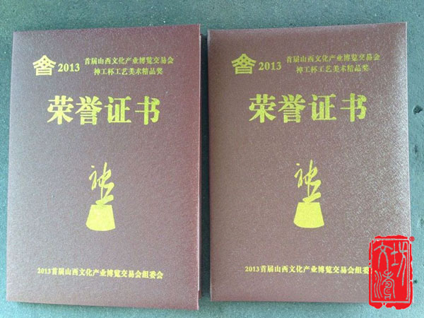 首届山西文博会 开启文博之梦 文涛坊作品 荣获“神工杯”奖!