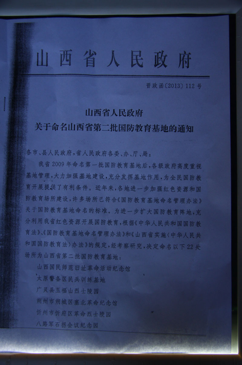大寒时节,但内心温暖如春。博物馆经过几番挫折与多方的斡旋、商谈,终于在2013年10月31日,被山西省人民政府命名为山西省第二批国防教育基地。