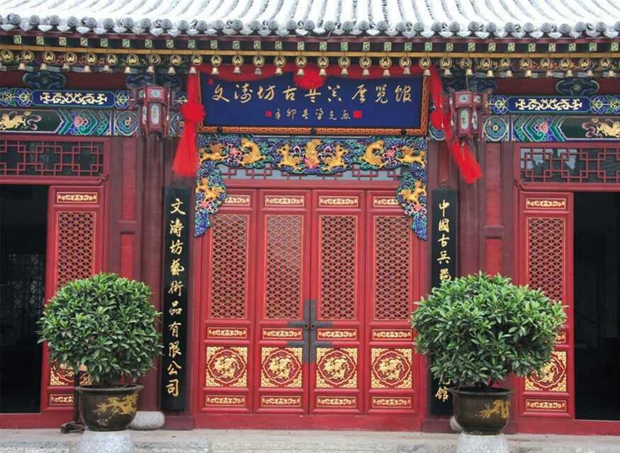 文涛坊古兵器博物馆位于 平遥古城内,北邻古城西大 街,南伴古城十二景之一的 凤凰台,占地面积2000余 平方米,内设六个展馆和五 个作坊。六个展馆以实物、 投影、油画等形式,系统展示了原 始社会、青铜时代、宋元明清乃至抗战时期的兵器文 化,同时生动地反映了西周 大将尹吉甫驻兵初筑城墙、 抵抗金将粘罕进攻、凭借瓮 城挫败北番兵劫等历史战争 事件。五个作坊通过匠师演 示操作,全方位再现了古兵 器制作的冶炼、锻造、研 磨、雕刻等流程,体现了文 涛坊人钟情古兵历史、追忆 民族文化的不懈追求。是一处以弘扬古兵器文化为主 体,丰富古城文化内涵为特 色,“免费参观、免费讲 解”的公益性博物馆。2010年9月19日开馆以来,博物馆年均接待海内外 游客160万人次左右。博物 馆的建立填补了全省乃至全 国古兵器收藏、制作,加工、修复以及文化研究、展 览为一体的空白,不仅丰富 了平遥古城的文化内涵,成 为平遥乃至山西文化产业建 设的一大亮点,而且赢得了 社会各界广泛的支持。 2011年2月份,原国务委 员、国防部长梁光烈上将特为我馆亲笔题字“文涛坊古兵器展览馆”;2011年7 月,我馆应 台湾国立故宫博物院、美和 科技大学工艺博物馆邀请, 携数十把博物馆研发的数款 精品刀剑参加了在台湾高雄 市举办的“海峡两岸古今刀 剑精品专展”;2011年10 月,内蒙古自治区党委书记 王君亲临我馆并题字“厚德 载物”; 2012年4月,受文化部、中工美邀请,我馆复制的 8件精美艺术品刀剑 在国家博物馆展出。博物馆 先后获得:旅游发展先进集 体奖;非物质文化遗产先进 单位;2012年度文化产业 发展品牌单位;2013年10 月31日被山西省人民政府确定为山西省国防 教育基地。以更强的民族责任感,将中 国古兵器文化的研究事业推 向更高的层次,让古兵器文化不断发扬光大,永续延绵。