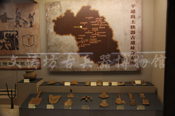 展厅通过实物、图片、泥塑等载体 ,全方位再现了传统平遥金属冶炼、铸造、锻造、传统制作刀剑流程。展厅中集 实物展览、文化研究于一体,传承着古老 的手艺、、、、、、; 今天,联合国教科文组织将建筑、文字、古兵器列为为世界文化 三大遗产,平遥传统的冶铁技术, 特别是兵器锻造技术已退出了历史舞台,如何将这一重要的非物质文化遗产传承下去,并为增强国民的民族自豪感和凝聚力做出应有的 献,我们这一代人的责无旁贷。 欢迎各位友人参观、指导!