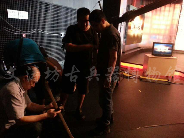 2014年7月17日平遥县文涛坊古兵器博物 馆馆藏稀世珍宝弩及优秀作品之——戟、 受邀亮相央视《国宝档案》参与专家组拍摄。