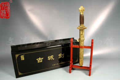 此剑以铜皮做鞘,工艺精湛,剑身手工折叠煅打,子夜焠火,纯手工研磨,剑首两面的双林寺与镇国寺泥塑佛像,精雕细刻;剑柄为黑檀木制,一面镶嵌铜币型世界文化遗产标志,另一面镶嵌铜币型三教合一图;剑格与剑鞘上是连体的建筑,剑鞘缠绕着一只貔貅口含钱币,具有传统的深刻寓意;总体设计新颖,制作精良,经一年之久设计完工。