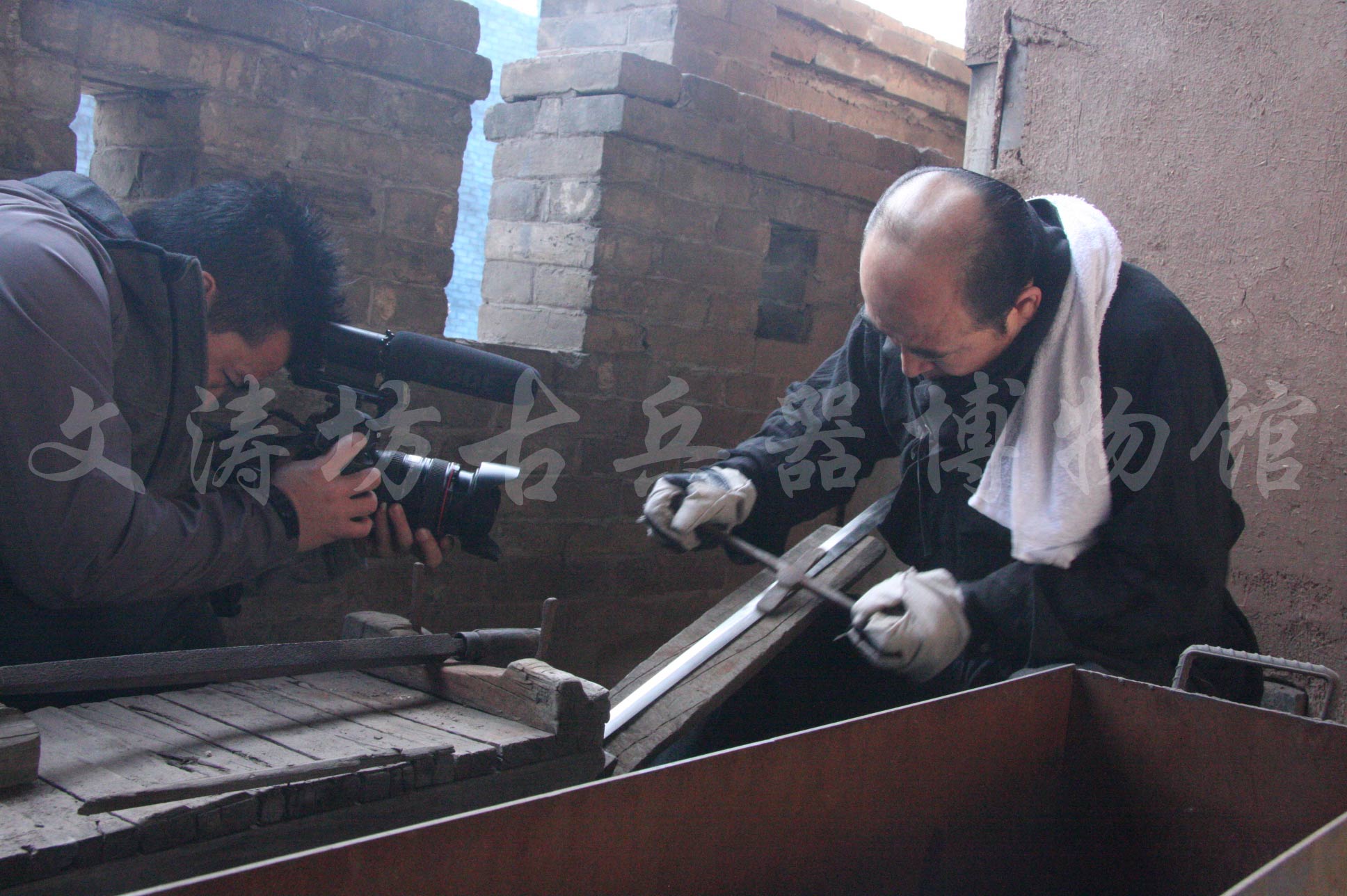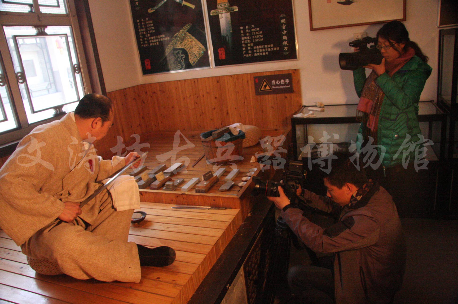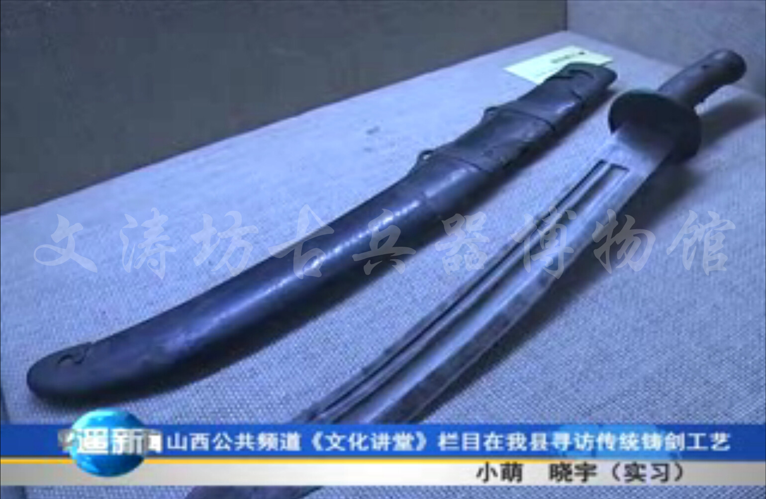 2015年1月22日,山西电视台公共频道《文化讲堂》栏目组在我县文涛坊古兵器博物馆寻访传统铸剑工艺。