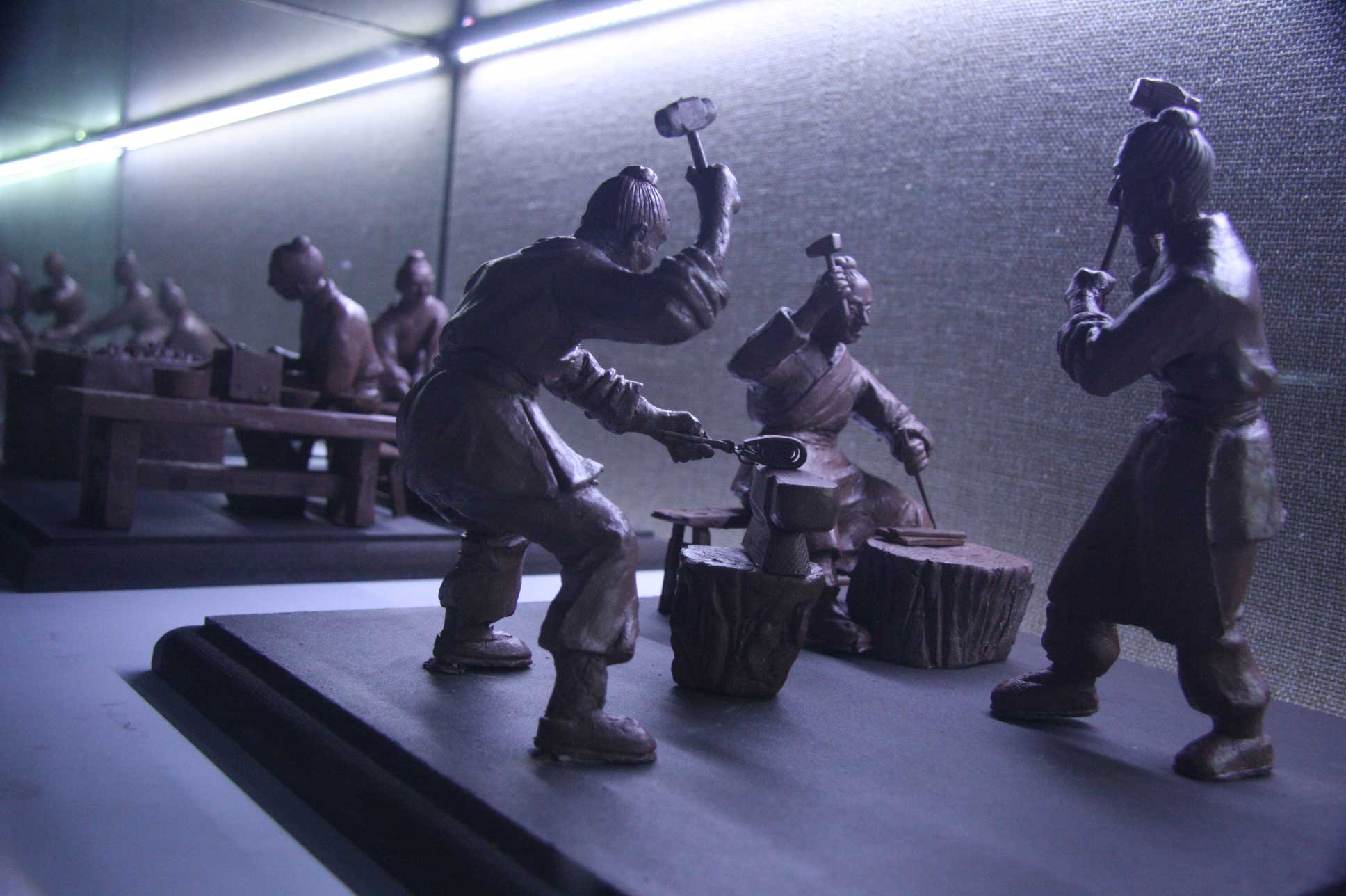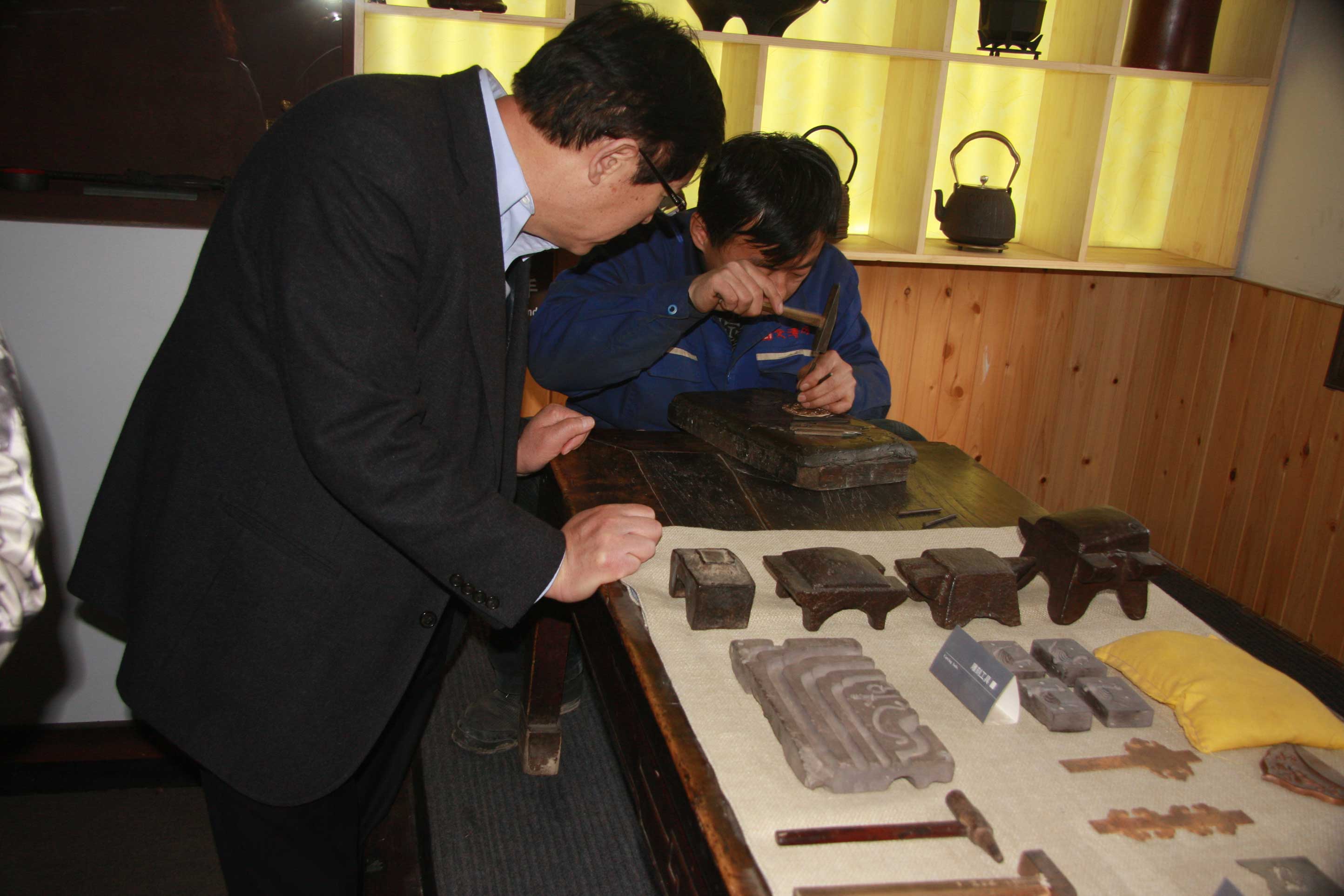 讲解员分组分批仔细讲解, 首先参观非遗展厅,平遥的金属冶炼、锻造以及铸造历史,最早可以追溯到春秋战国时期,到汉代乃至明清以后,冶铁业一直快速地发展;