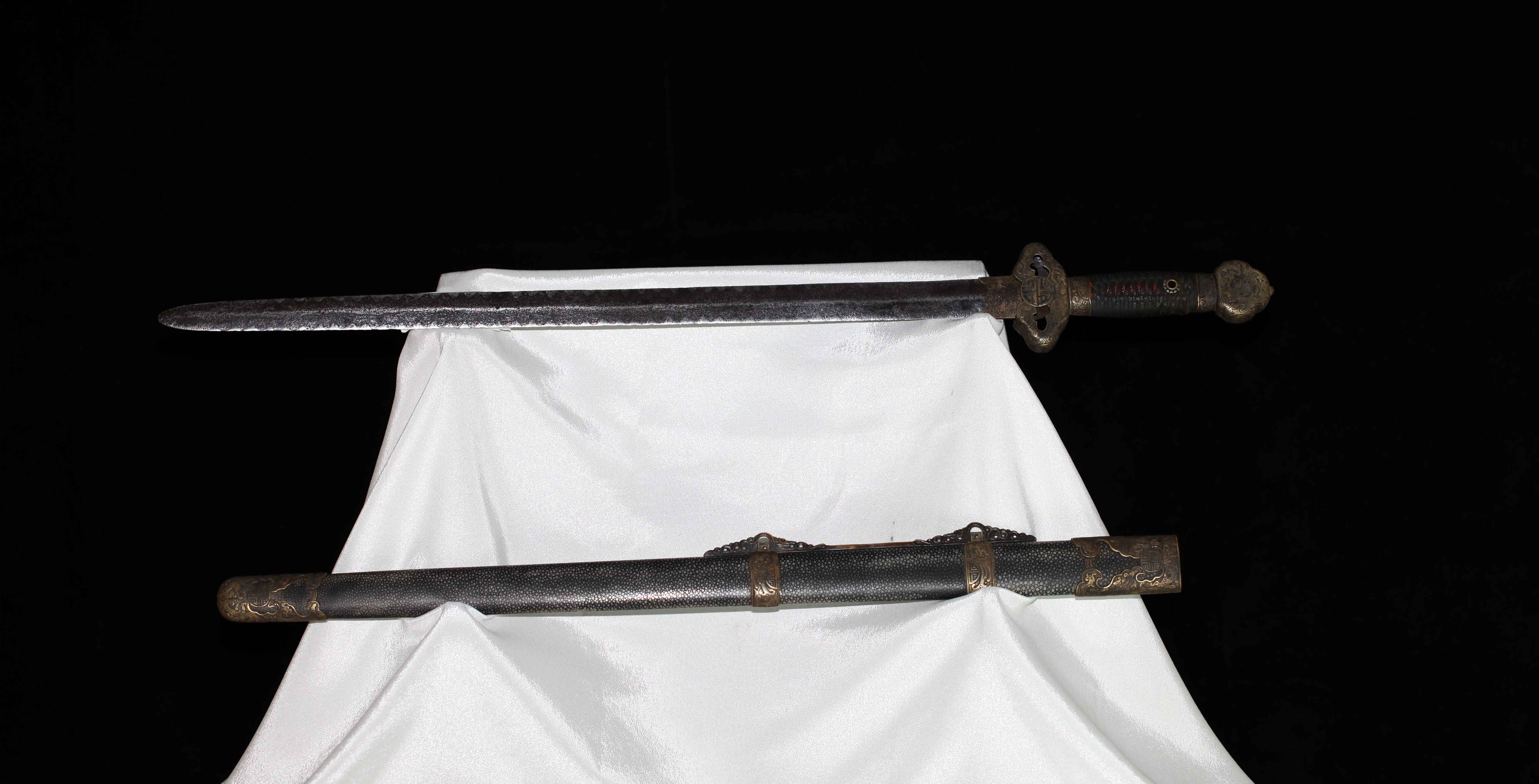 剑身做简单清洁除锈剑首、护手、鞘口配福寿剑装