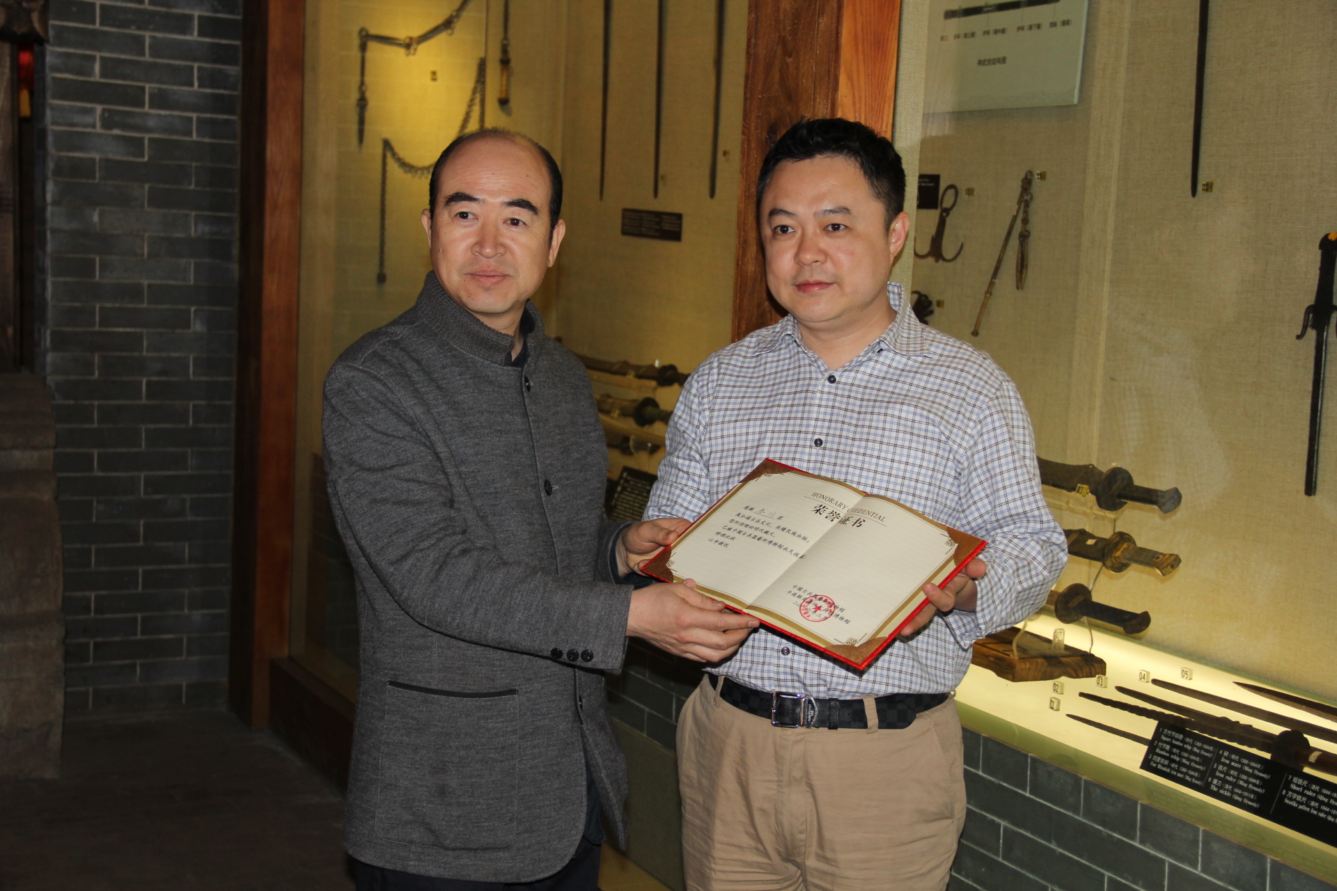 2016年3月28日,查理兄在馆长刘文涛的陪同下参观中国古兵器艺术博物馆,对我馆弘扬、保护、传承古兵器传统文化给予了肯定与赞赏。