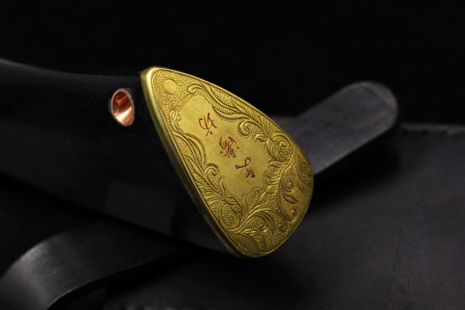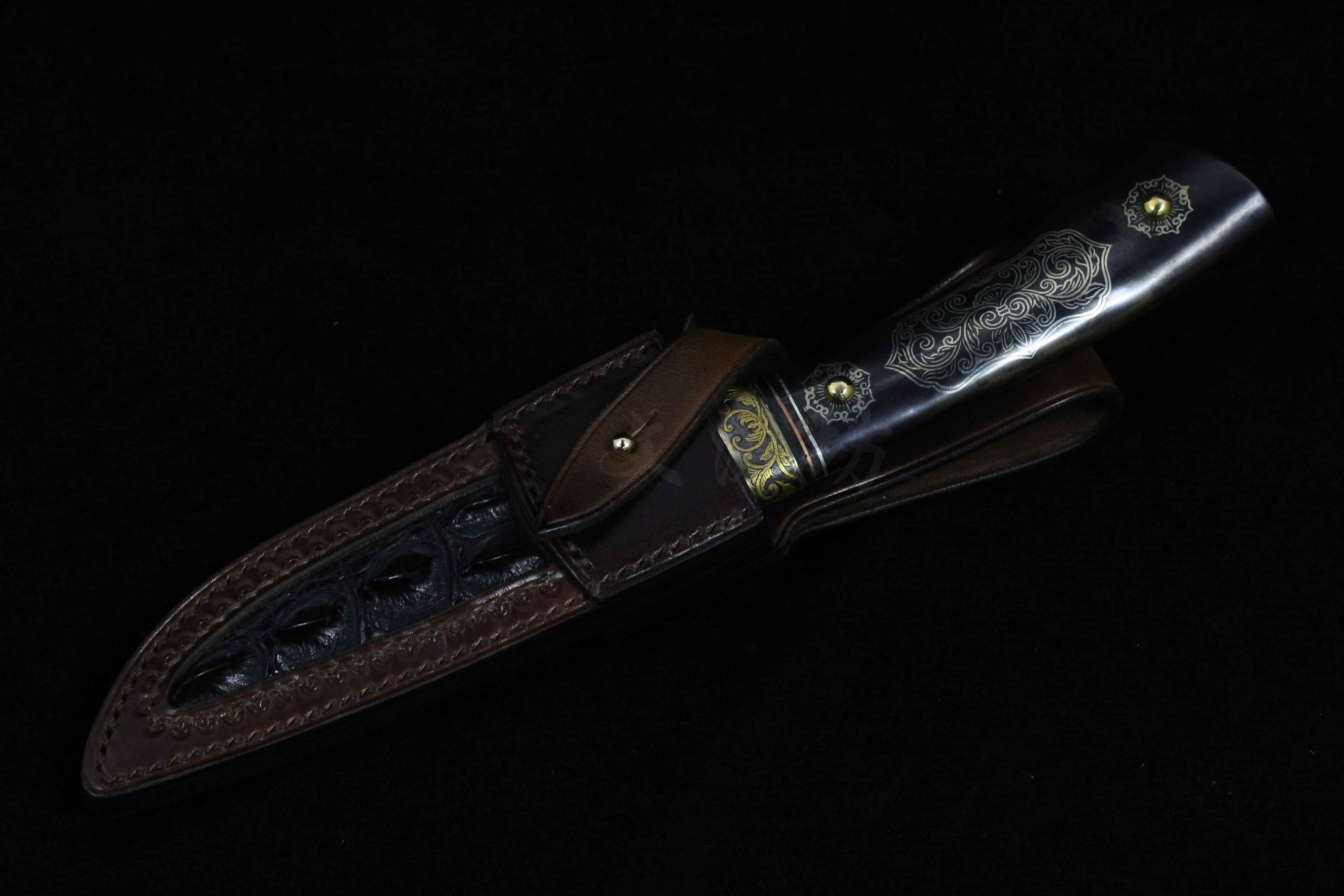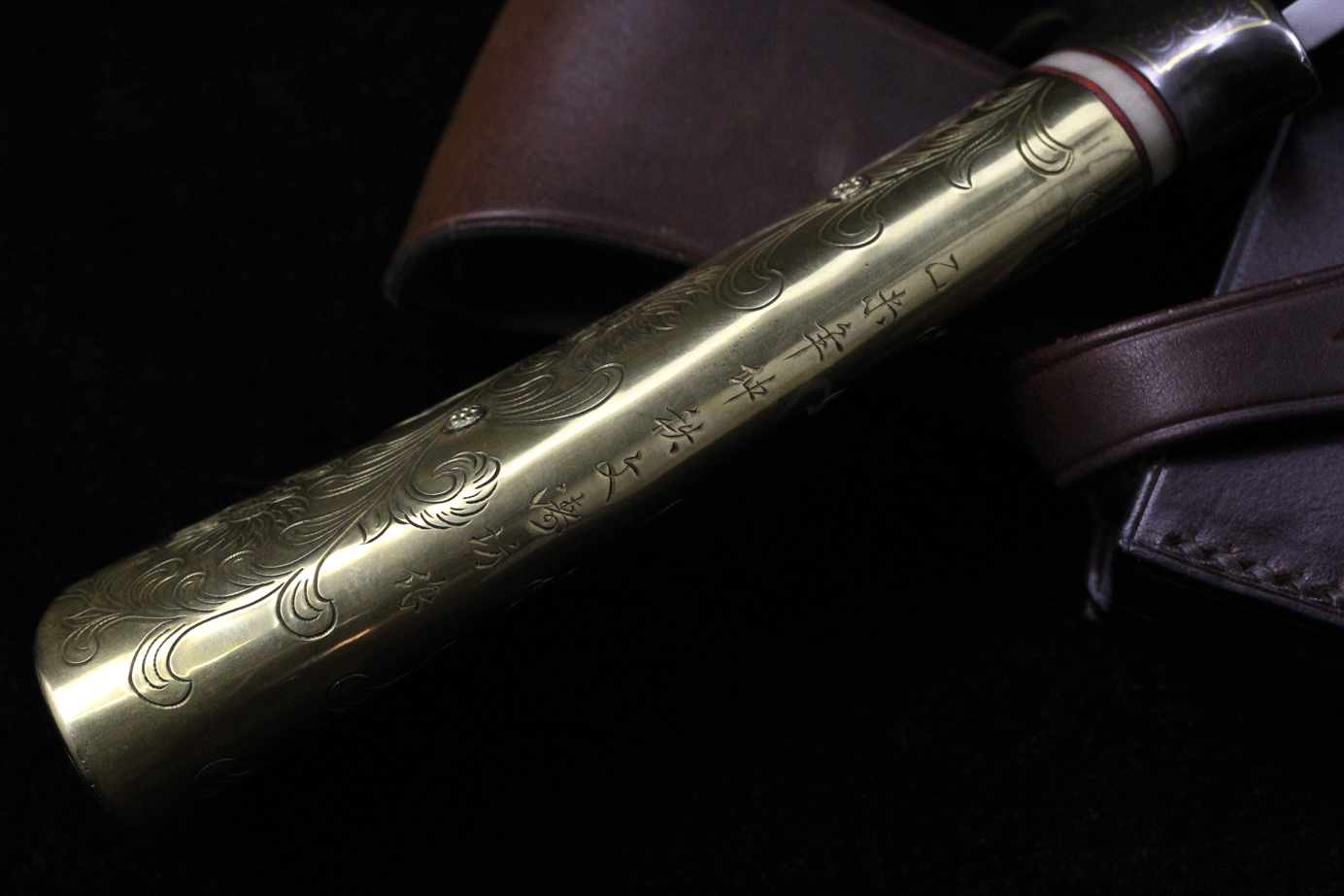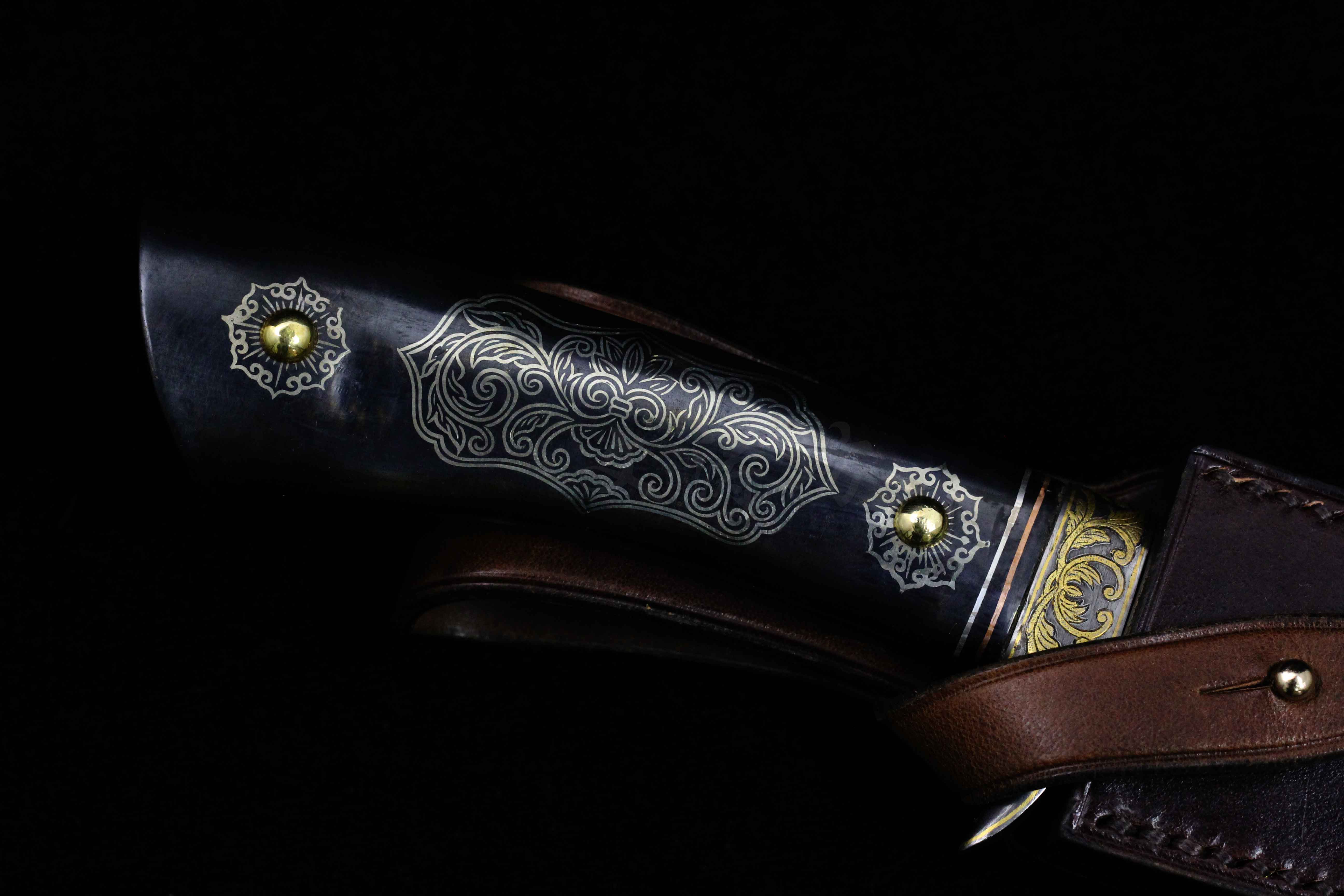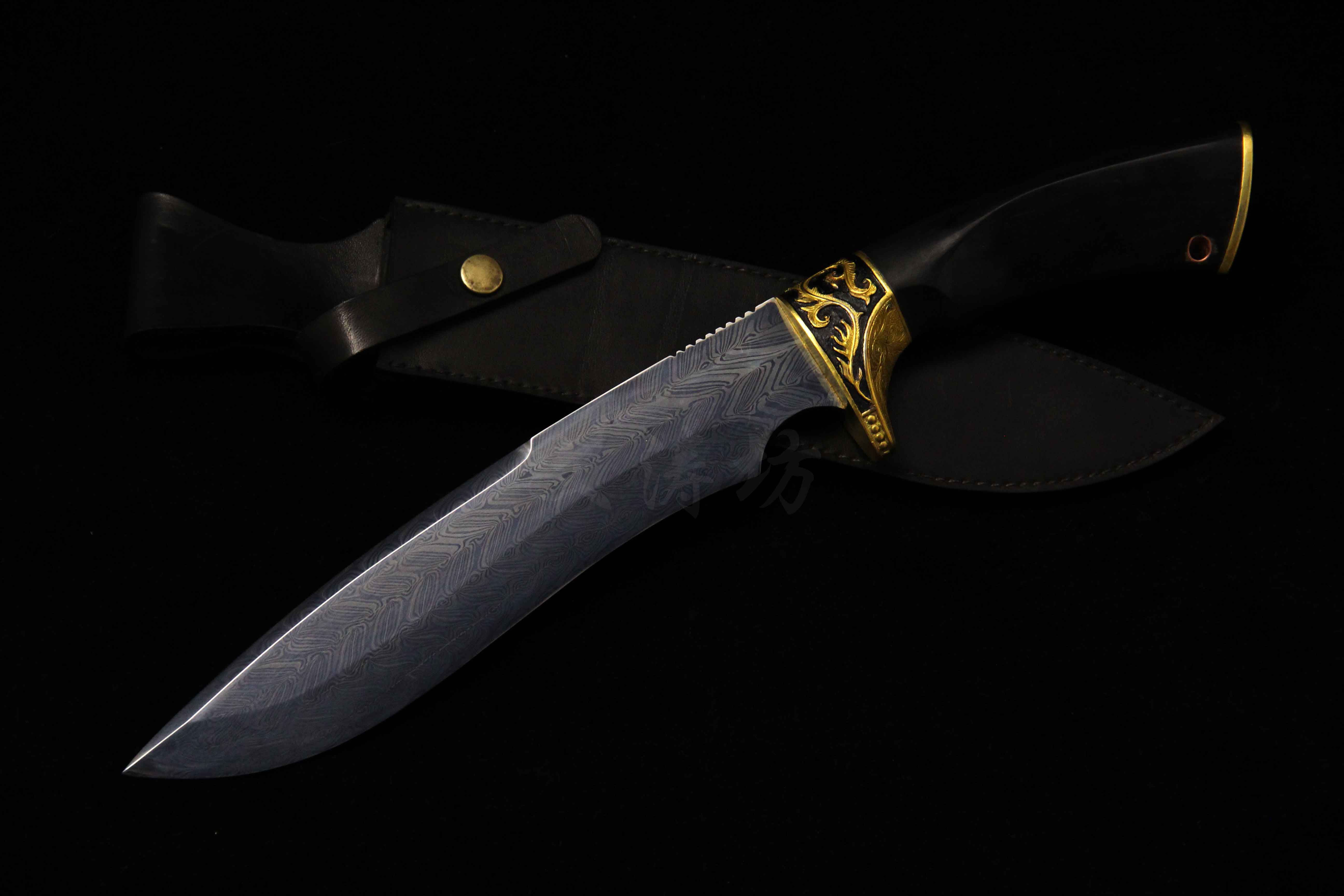 平遥古城距今拥有2700多年的历史,是国家历史文化名城,世界文化遗产。它是中国境内保存最为完整的一座古代县城,是中国汉民族城市在明清时期的杰出范例。此剑是平遥县政府力推的旅游珍品、由锻造技艺第六代传人刘文涛先生精心制作设计;平遥剑鞘以“一城两寺”的设计理念为依托,将古城墙、双林寺、镇国寺、城隍庙、清虚观、县衙、文庙、市楼、日升昌票号等著名景点为装饰图案,体现平遥丰厚、多样的建筑与源源流长的文化内涵。体现中华儒教、道教、佛教以及民俗文化,“两寺”浮雕于柄首,分别是双林寺韦陀与镇国寺菩萨像;剑身手工折叠锻打,子夜淬火,纯手工研磨, 柄为驼骨做瓜棱状、剑格与剑鞘为连体古城楼建筑,剑鞘上盘绕貔貅口吞铜币,代表招财进宝之意,浮雕“汇通天下”字样,代表中国第一家票号——平遥日升昌。平遥剑极致匠心,是刀剑与古城文化的完美融合!