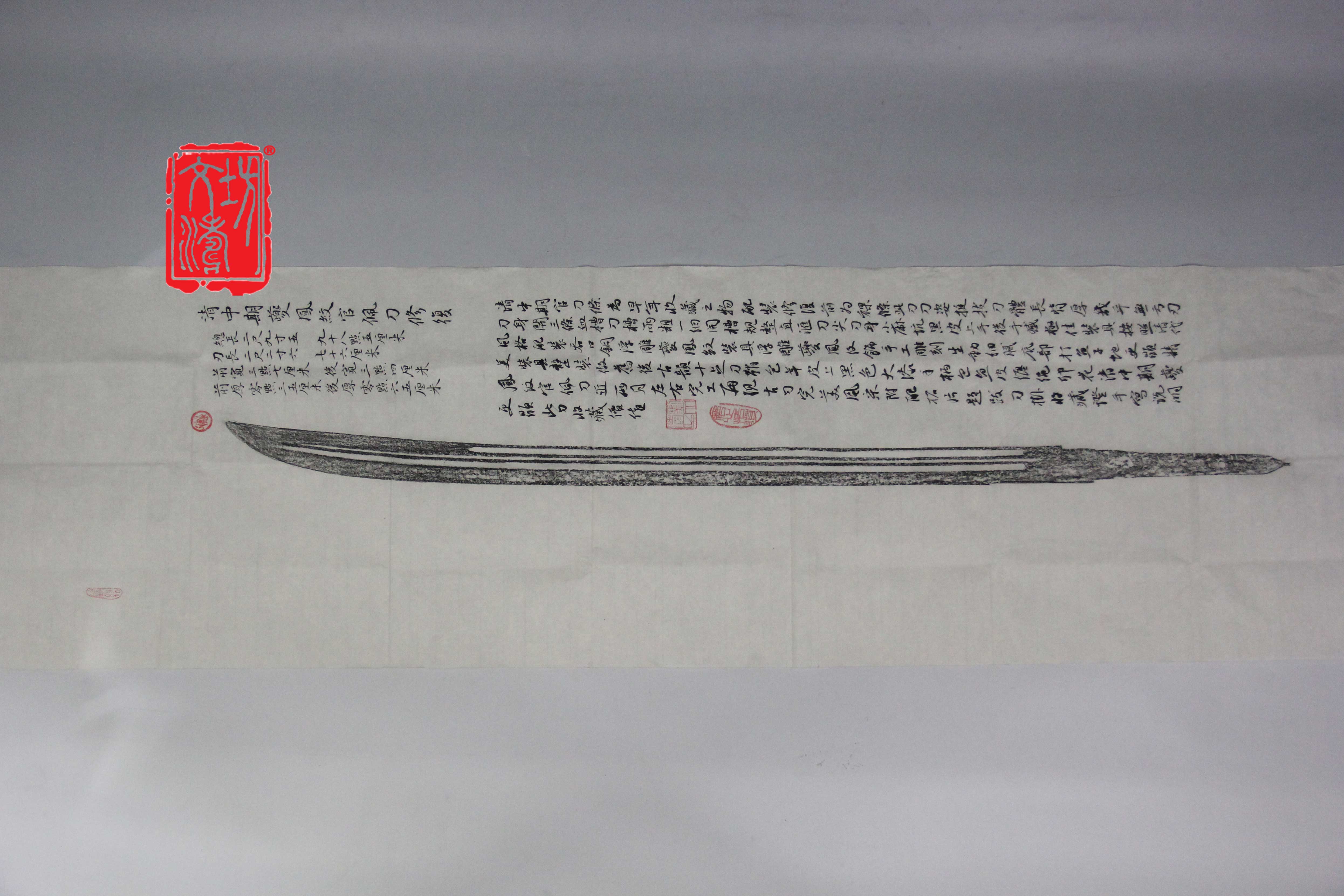清中期夔凤纹官配刀近两月左右完工,再现古刀完美风采。附配拓片题跋、刀挂、收藏证、手写说明,更显此刀收藏价值。