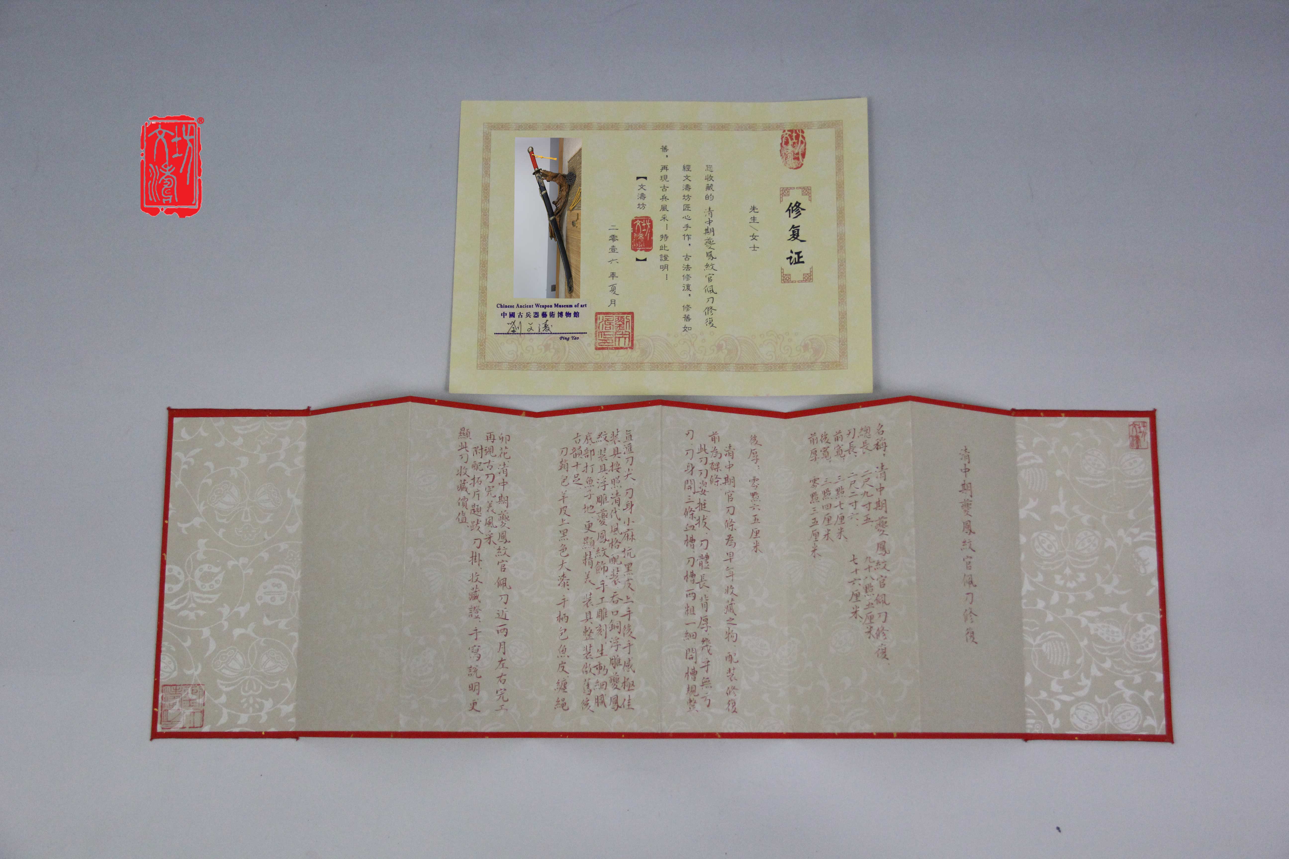 名称:清中期夔凤纹官配刀修复