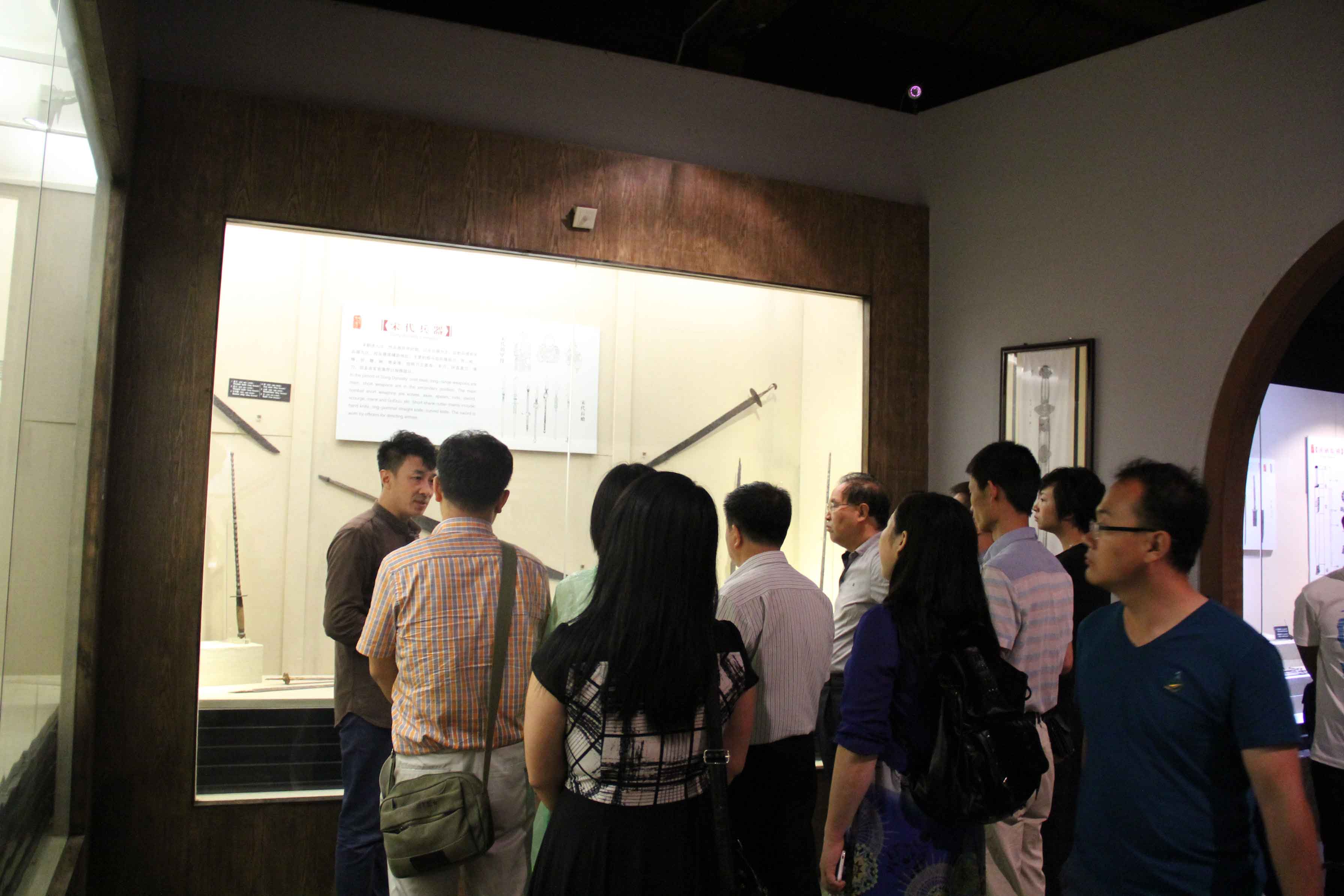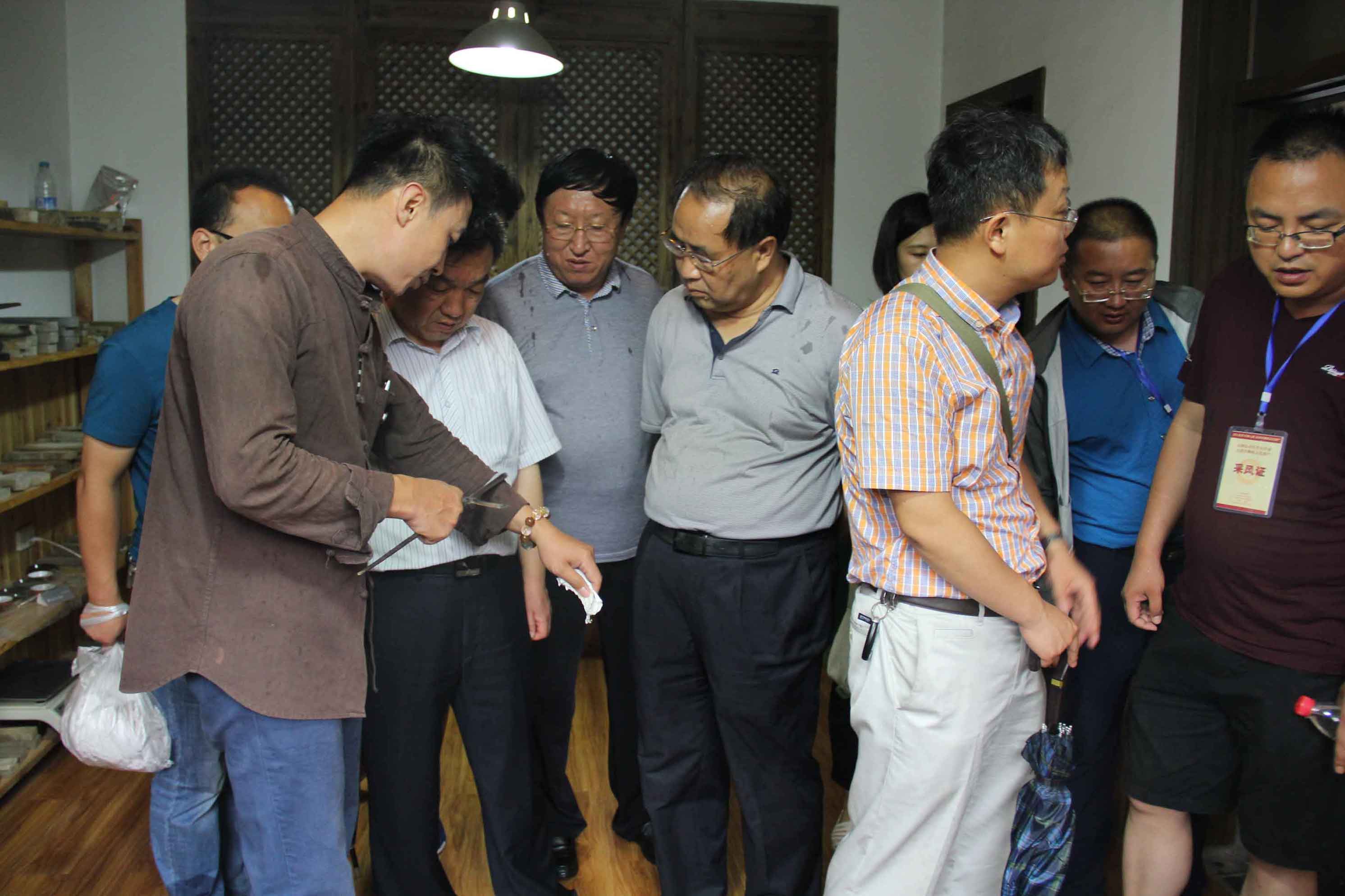 7月14日,由山西省作协30余名青年党员作家组成的采风团,在省作协、省工艺美术协会的组织带领下,就平遥手工技艺类非物质文化遗产项目对中国古兵器艺术博物馆进行了观摩调研。采风团在平遥县城联社主任师恒彬、文联主席赵永平的带领下,对文涛坊古兵器艺术博物馆进行了参观调研,由常务副馆长巩生华陪同并对古兵器演变过程和刀剑制作流程进行了详细介绍。省直工委常务副书记杨增武,省作家协会党组书记、主席杜学文,省文化厅党组成员、省工美集团董事长李钢荣,参观!采风团对刀剑制作技艺精髓、传承状态有了深入的了解。