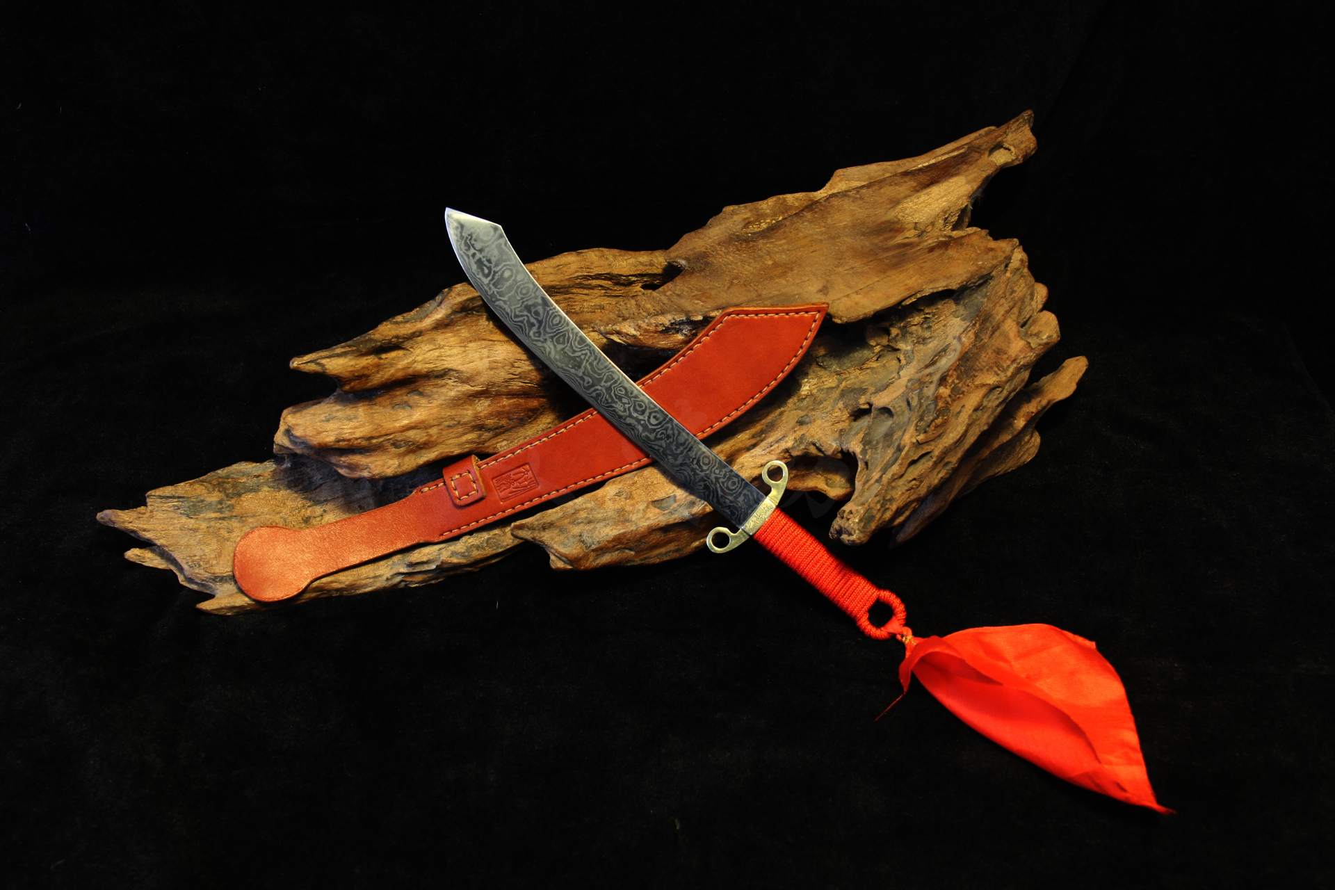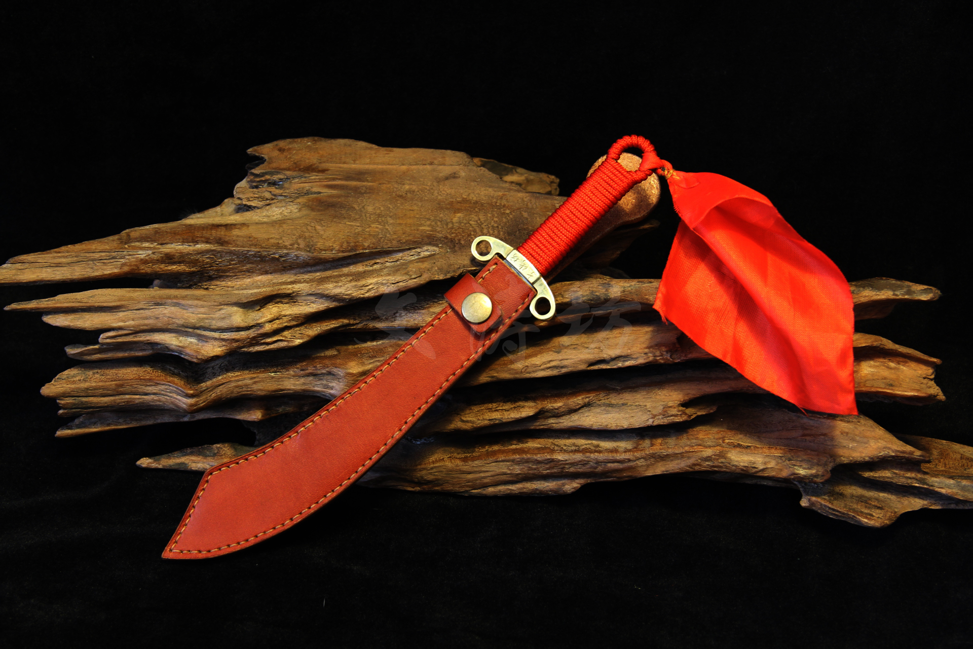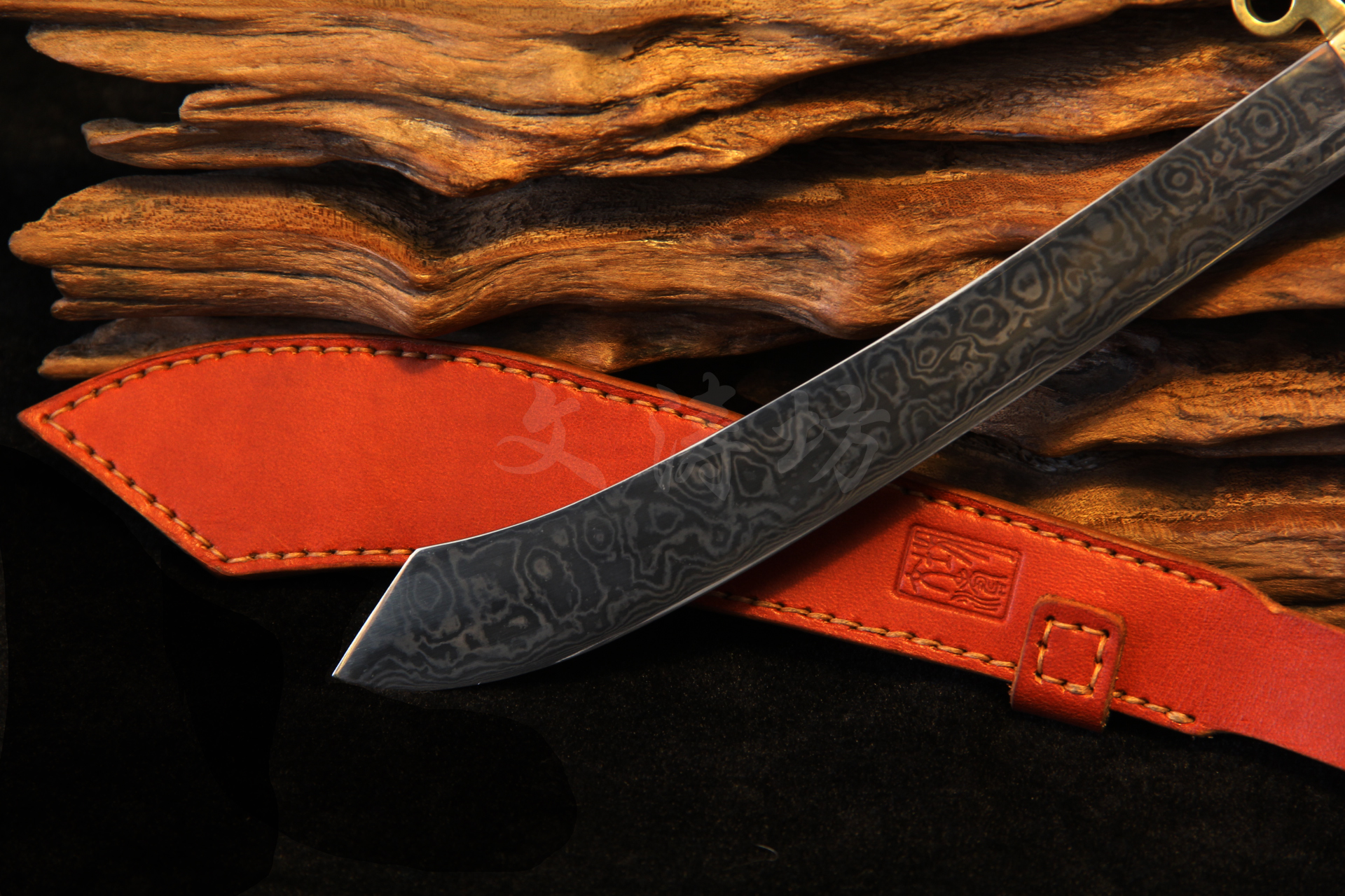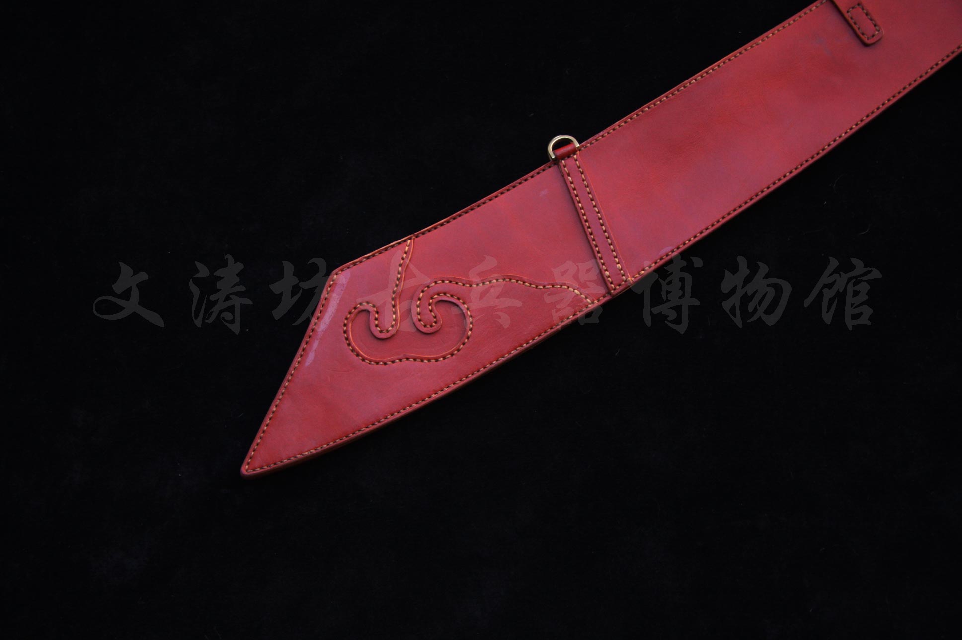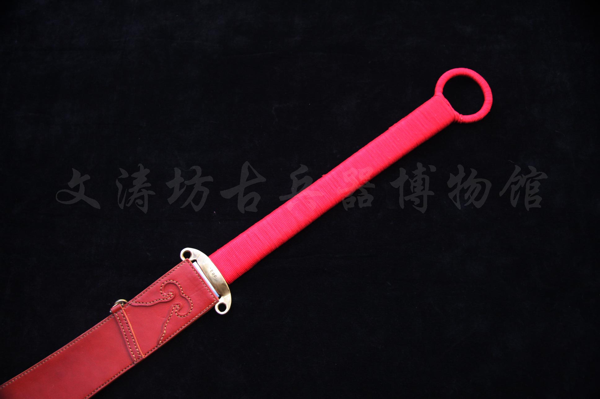 此刀根据文涛坊古兵器博物馆馆藏红军大砍刀设计制作,经数月完工。刀身材质为自炼土钢与高碳钢折叠锻打花纹钢,经十余道工序手工研磨花纹绚丽;刀身楷书“抗战到底”四个大字,充分体现出当时军民抗战到底的决心与信心!!!鞘为进口牛皮手工缝制而成;刀刃宽大刀头加阔,其可单手或双手操持的功能性,結合了重量前傾的刀刃所帶來的极大殺傷力,使之成為理想的近身作战兵器。
