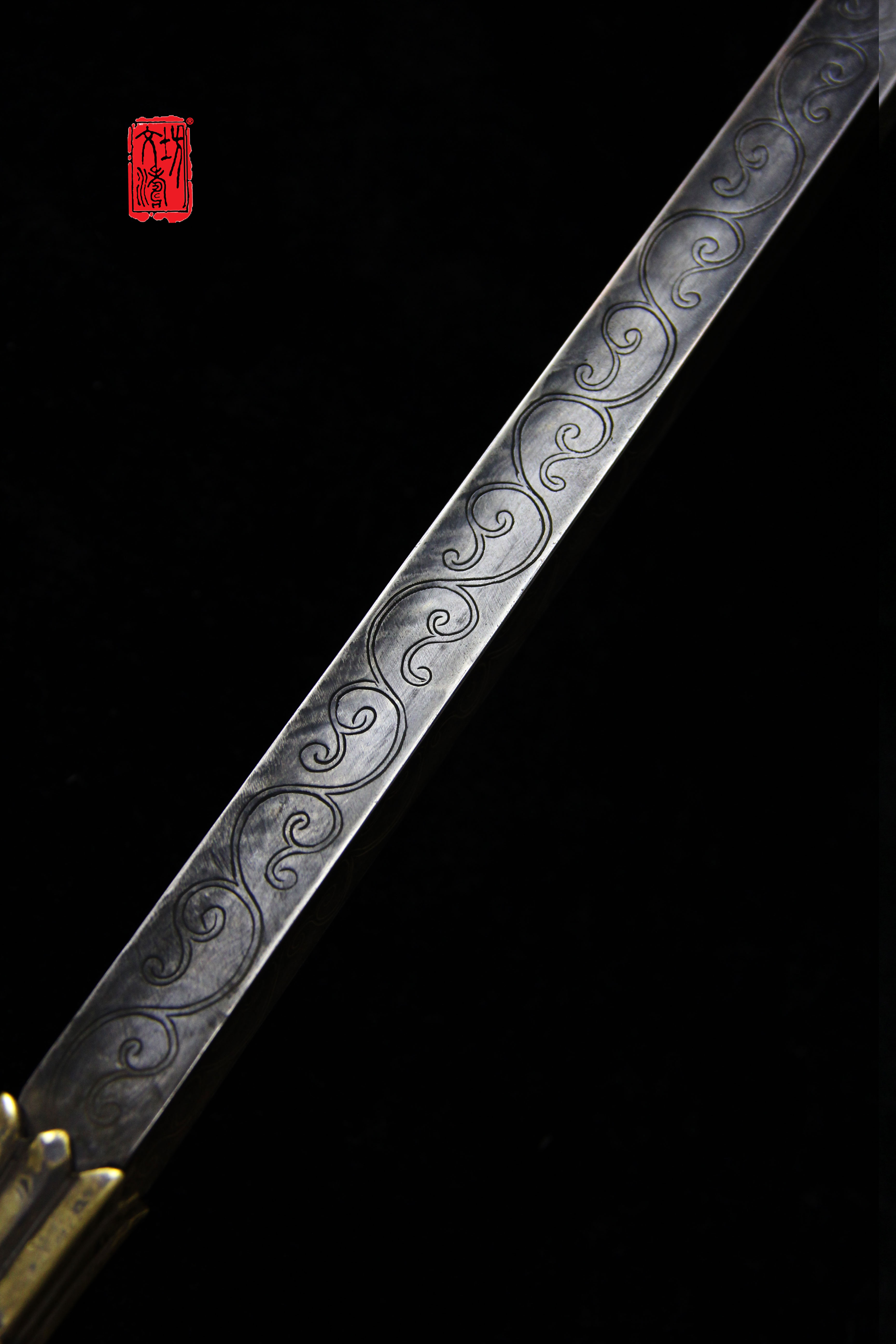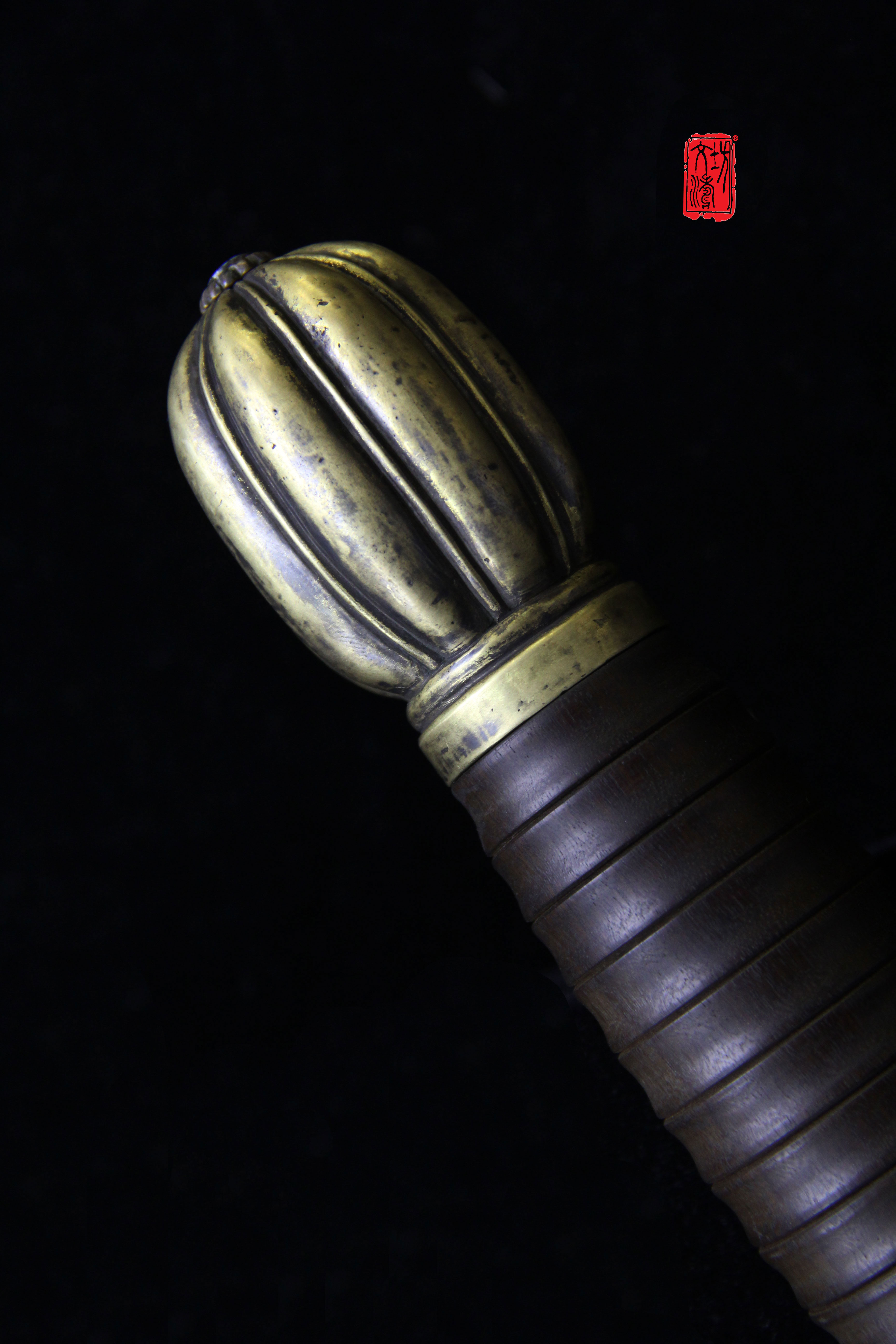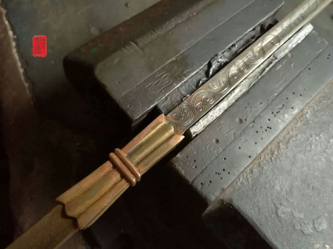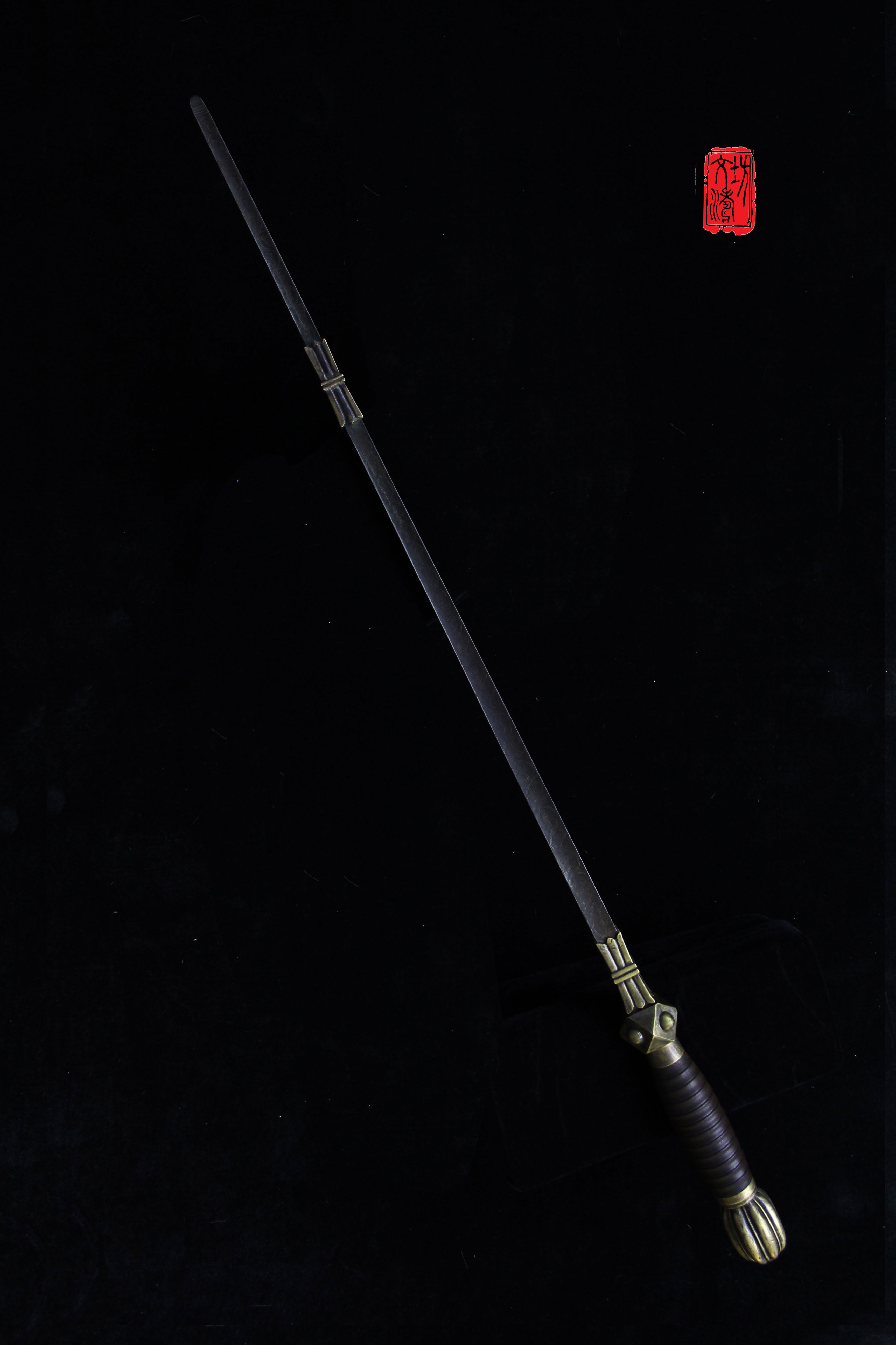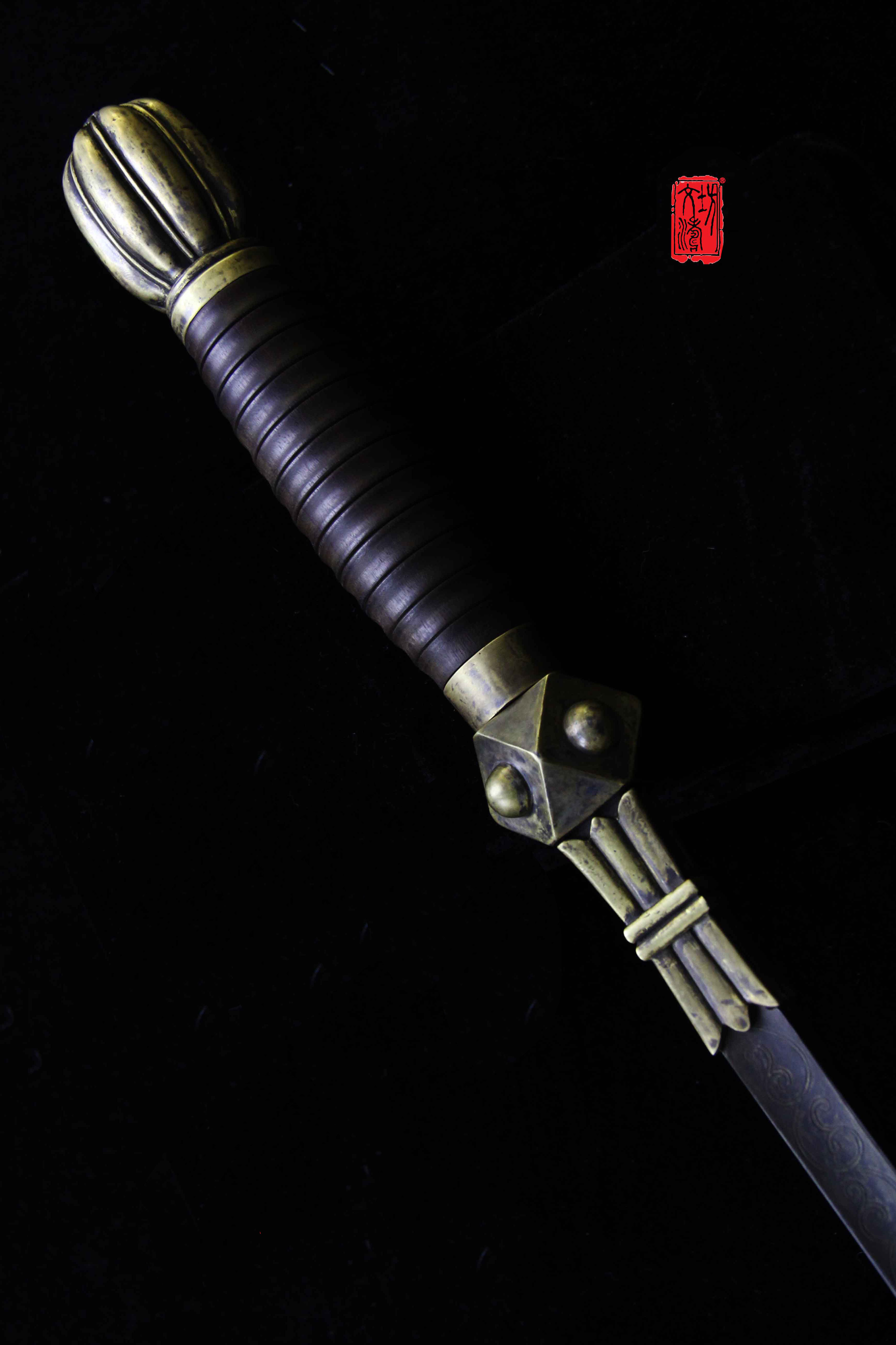 此钢锏为中国非物质文化遗产锻造技艺第六代传人刘文涛大师,参照中国古兵器艺术博物馆馆藏历代古锏实物资料,结合中国传统文化元素精心设计制作,历时九十天完工。锏,无刃有四棱刚直不阿,锏体四面成瓦面开凹槽,采用两种钢折叠煅打而成,水磨成型,多面乳钉护手前和锏体中部分置两朵束莲雕饰,寓意高雅与自律。纯手工阴刻的缠枝花贯穿整个锏体。柄首做瓜棱状,手柄为硬木竹节型,古朴典雅。此锏修长大气,可闲情把玩与实用并存。自古均为身份威仪的象征,御赐金锏可上打昏君下打谗臣行尚方之职!钢锏之凛凛正气亦是镇宅辟邪不二之选!