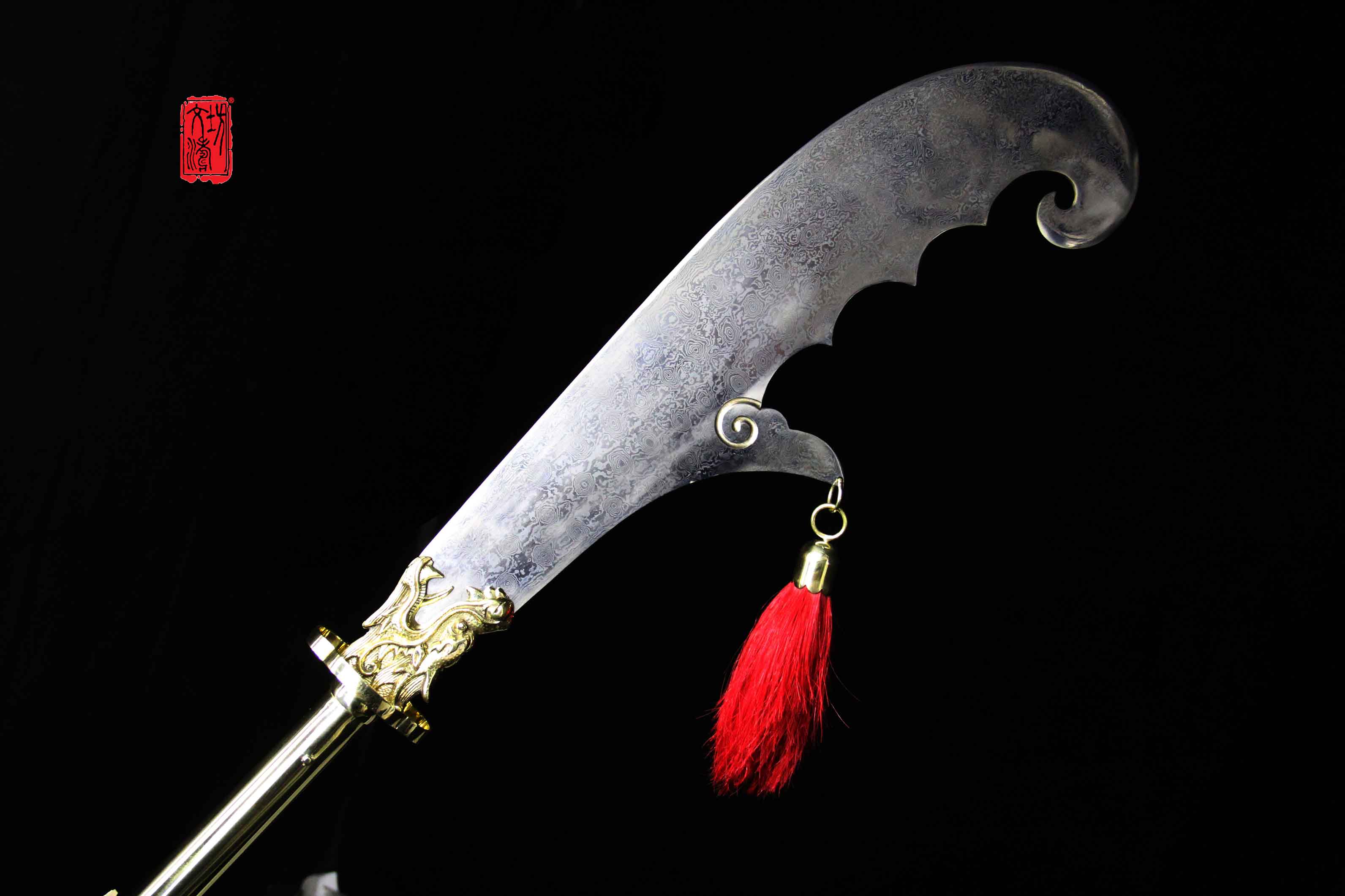 偃月刀属于长柄刀的一种。是《三国演义》中关羽的兵器。刀身或柄头都有许多精细的雕刻。正因其重量较重,所以斩、劈的威力非同小可。但也因此,却不适用於战场杀敌,而成为训练、仪仗,或宫殿侍卫的武器。