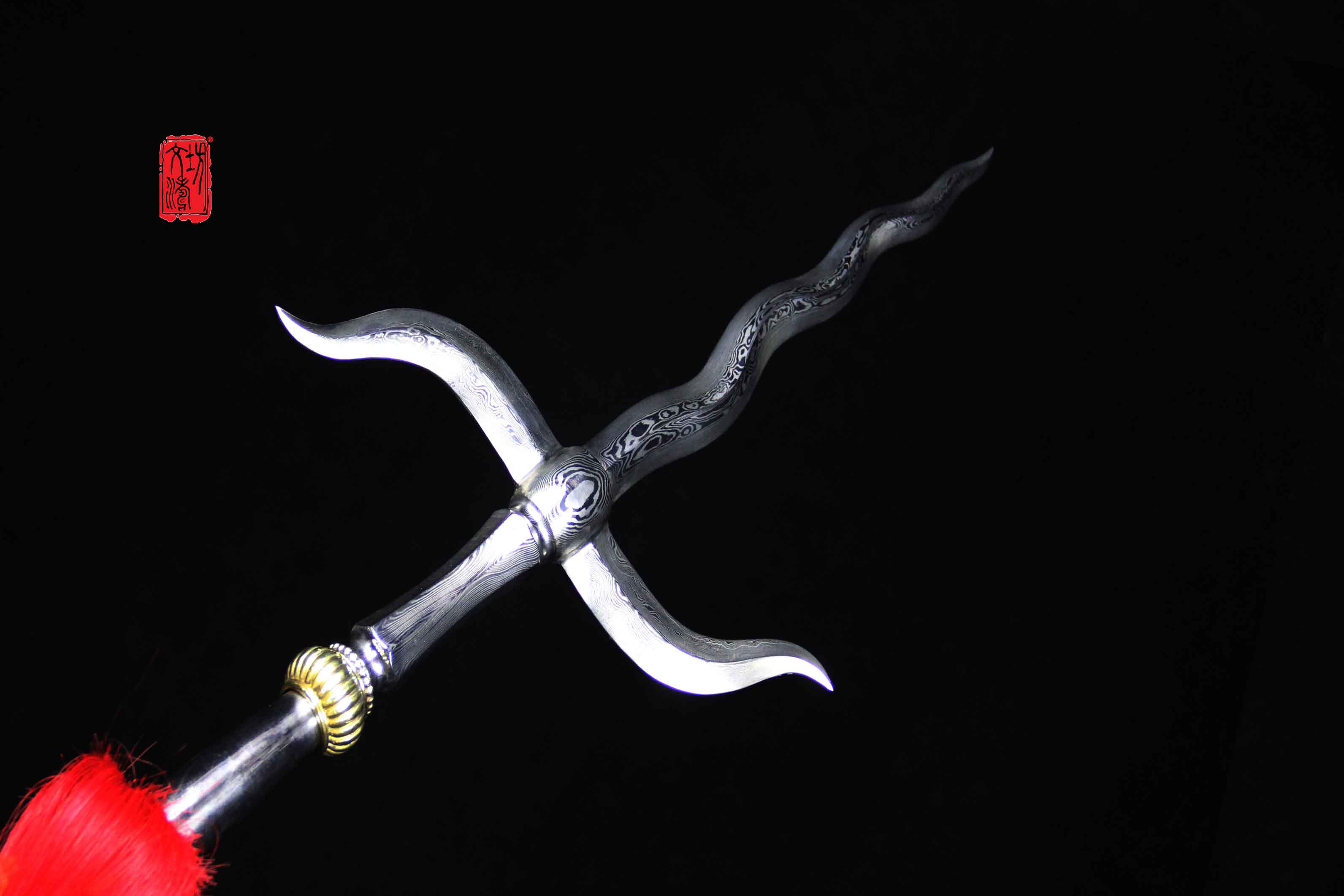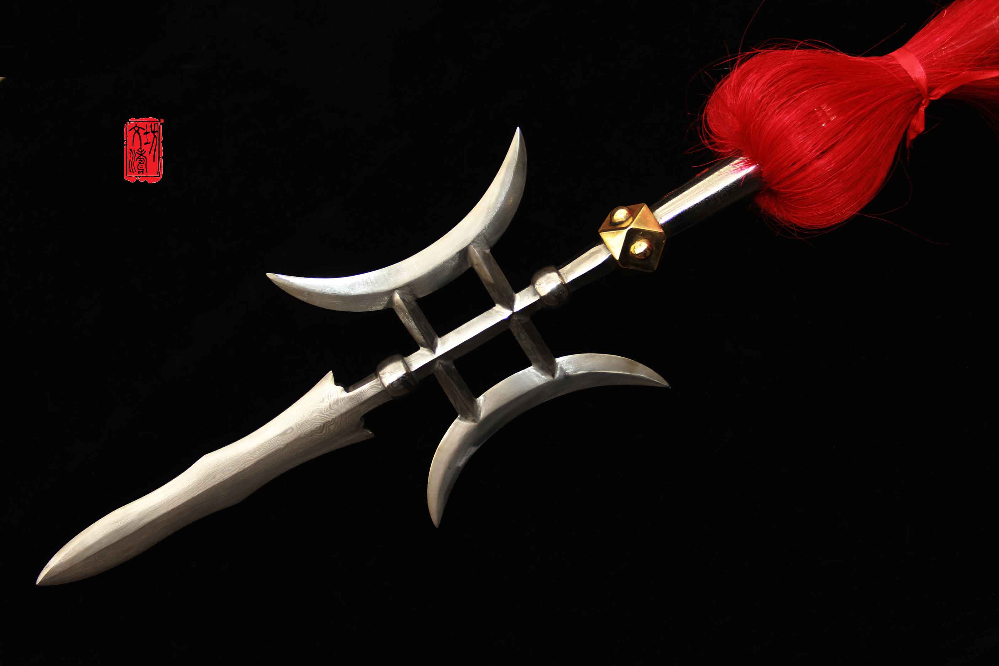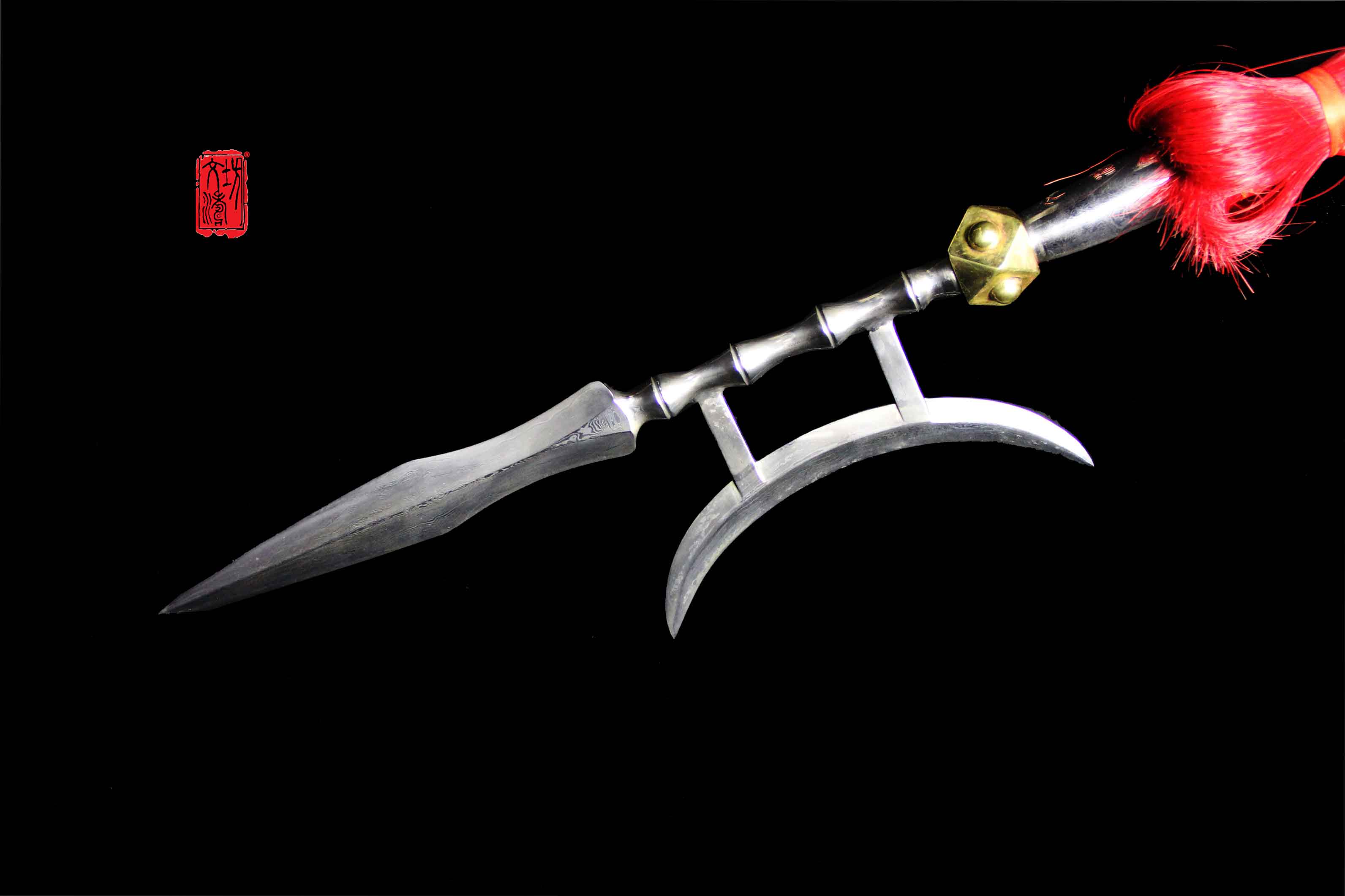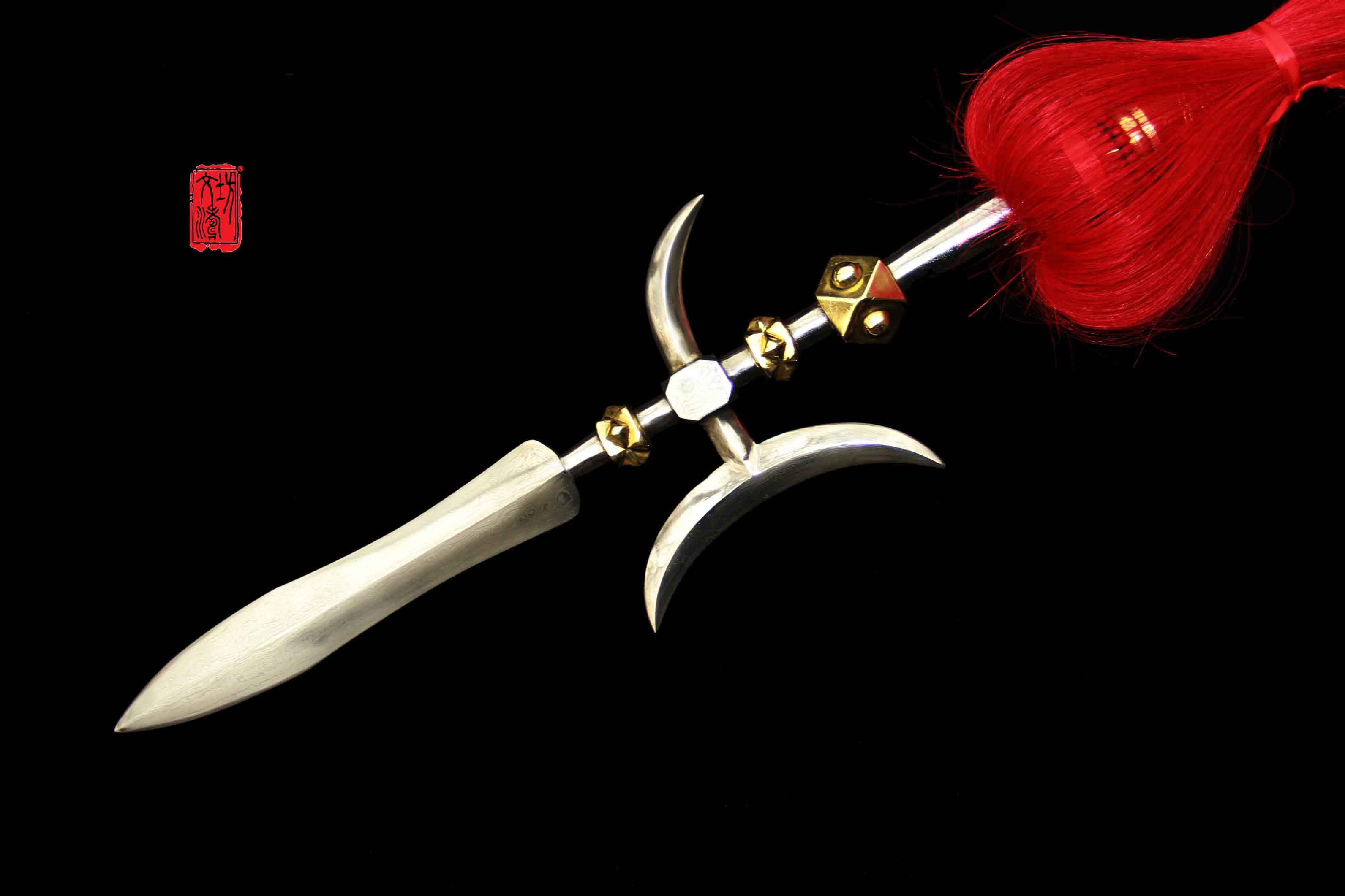 戟是中国古代的一种兵器,在戟杆一端装有金属枪尖,两侧有两个对称的月牙形利刃通过两枚小枝与枪尖相连,可刺可砍。因其在戟杆上以画、镂、彩绘等作为装饰,又称画杆方天戟或方天画戟。
