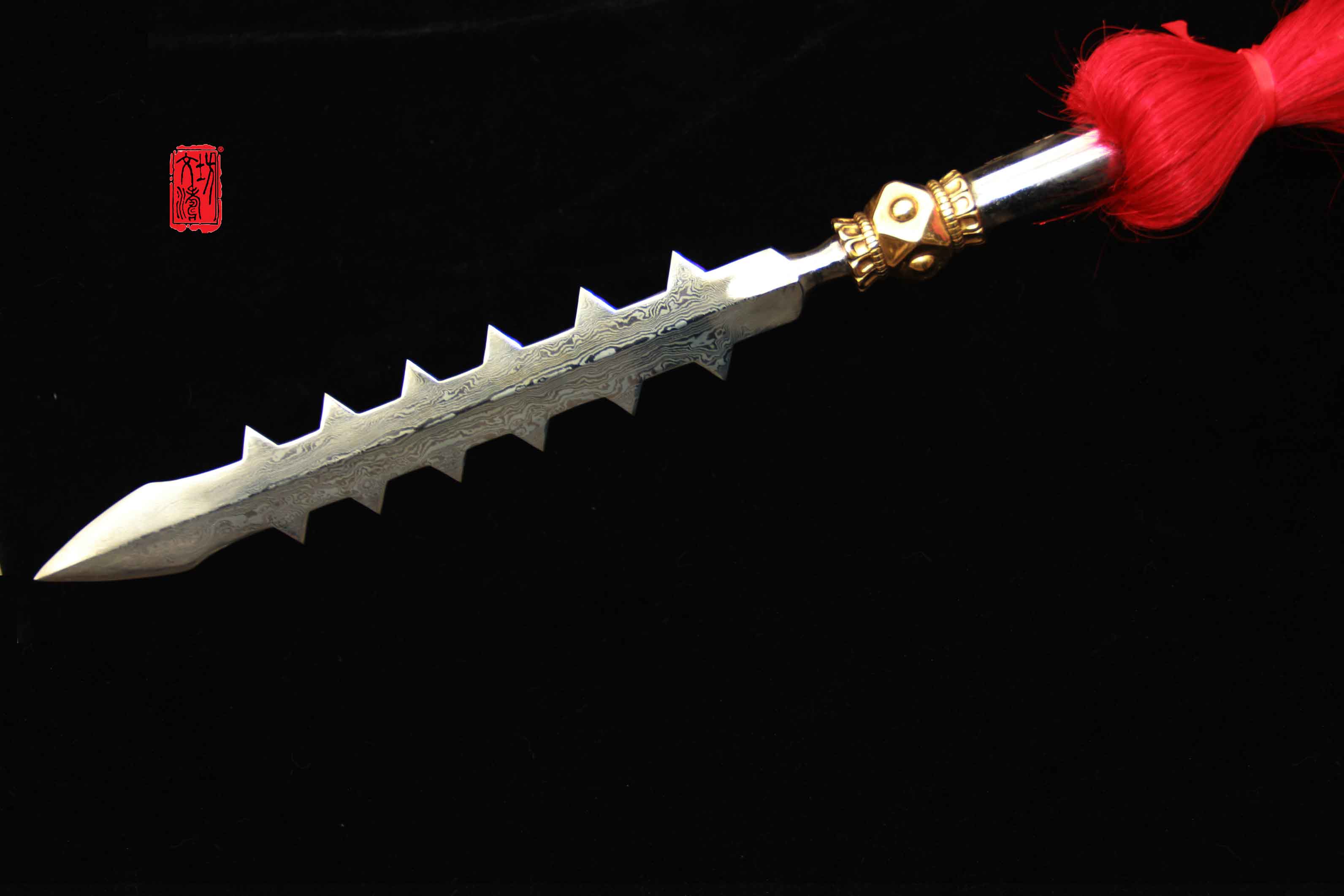 矛头似蛇形,其长度似蛇不要以为像金蛇剑那样。历史上张飞所使矛没有名称,而东晋的陈安曾用过丈八蛇矛。矛长丈八尺曰俏,马上所持,言其俏俏便杀也;又曰激矛,激截也,可以激截敌阵之矛也。丈八蛇矛与青龙偃月刀相媲美;它们先后成名,从此一发不可收,扬名天下。