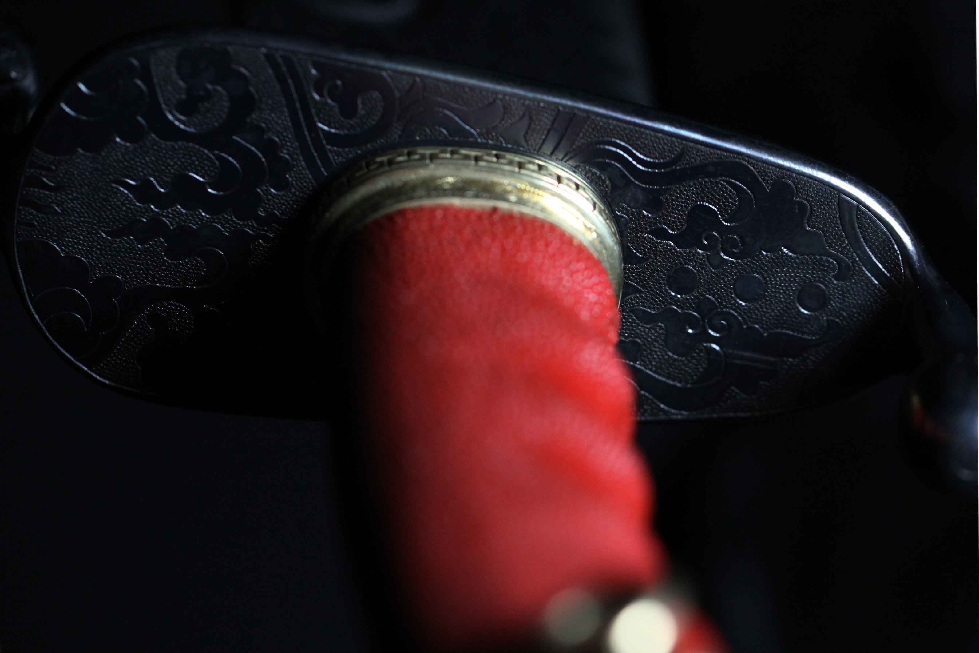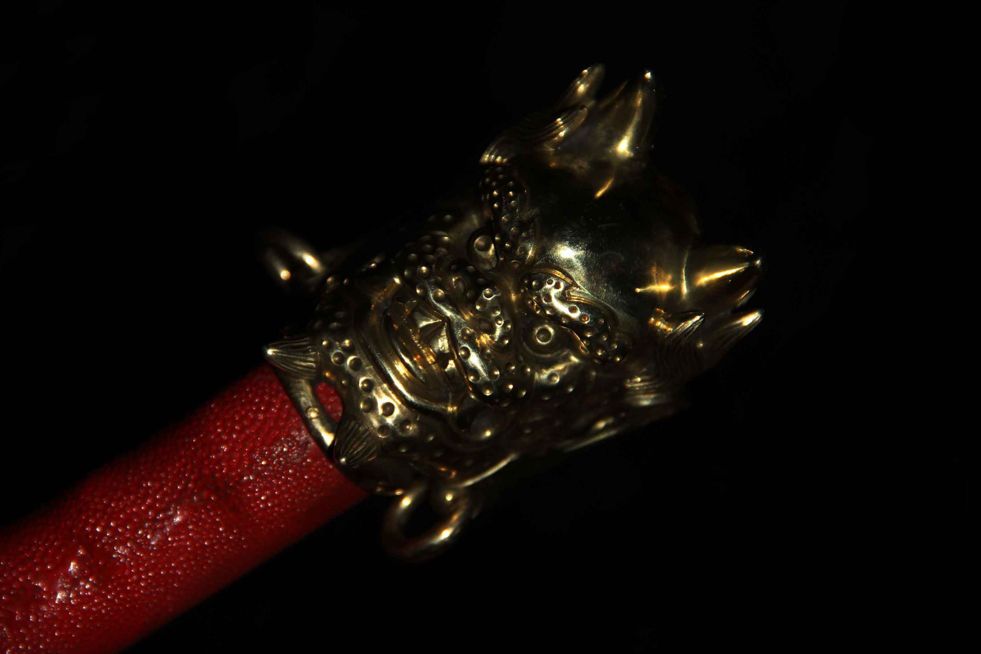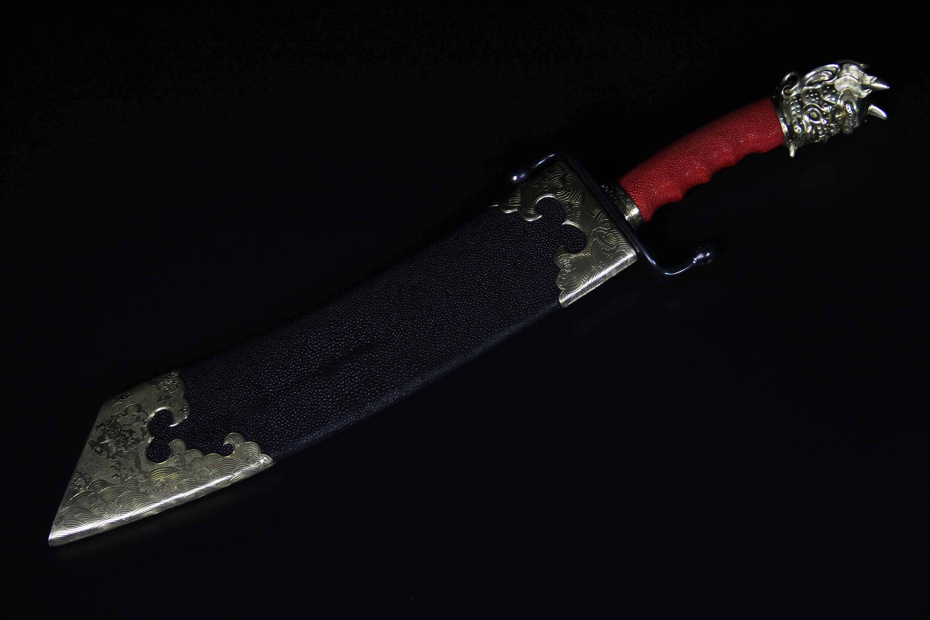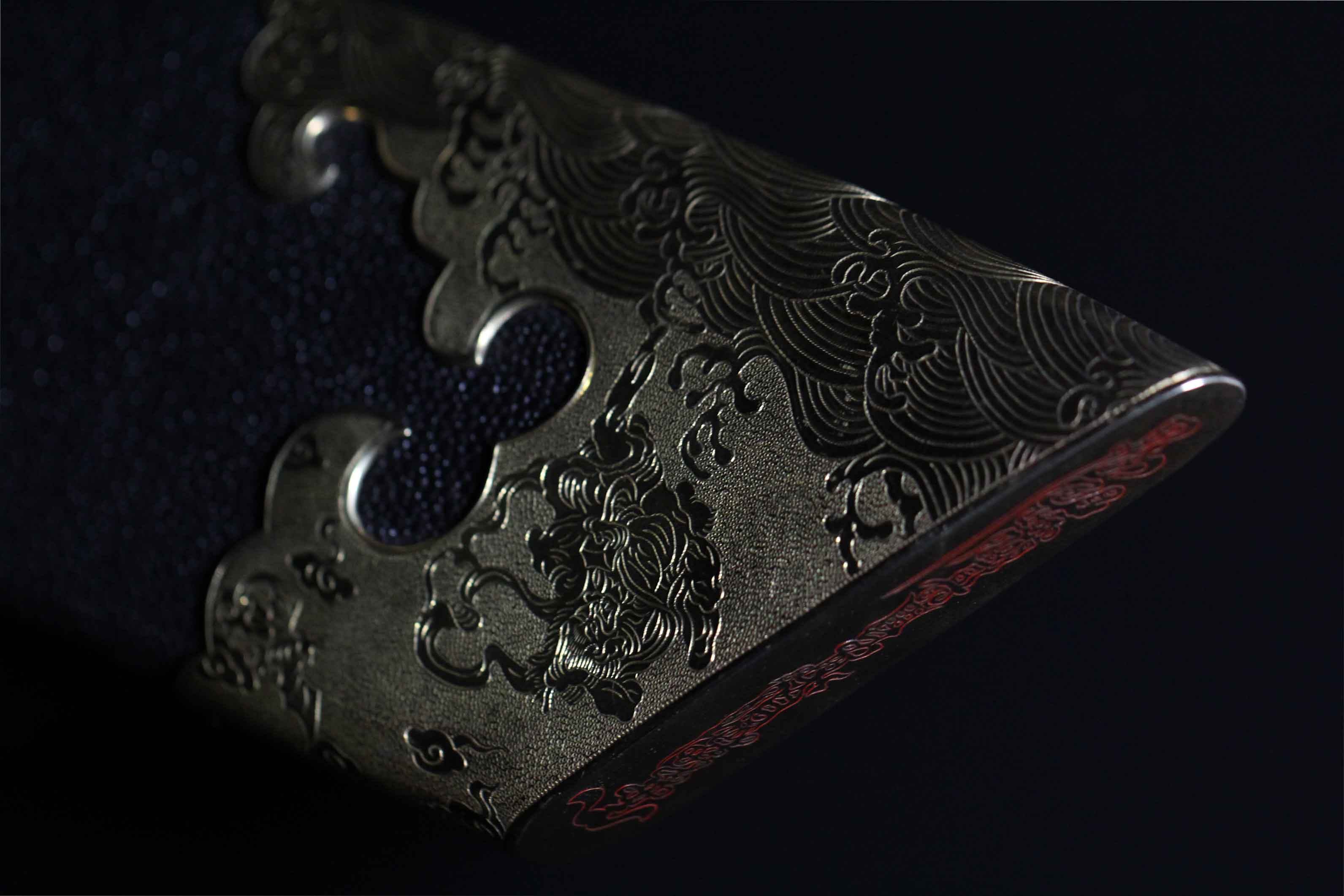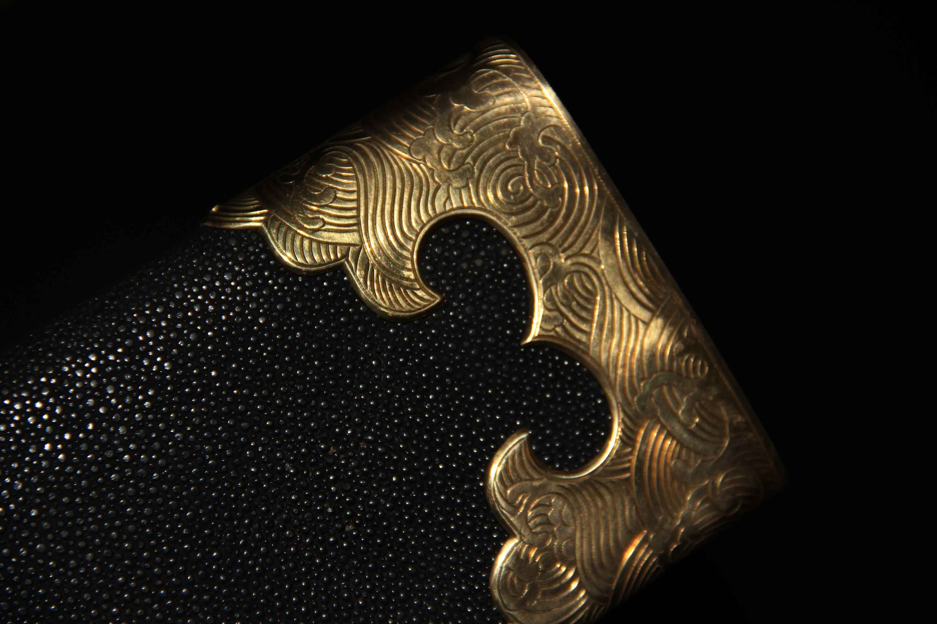 刀鞘包珍珠颗粒鱼皮上黑色大漆。