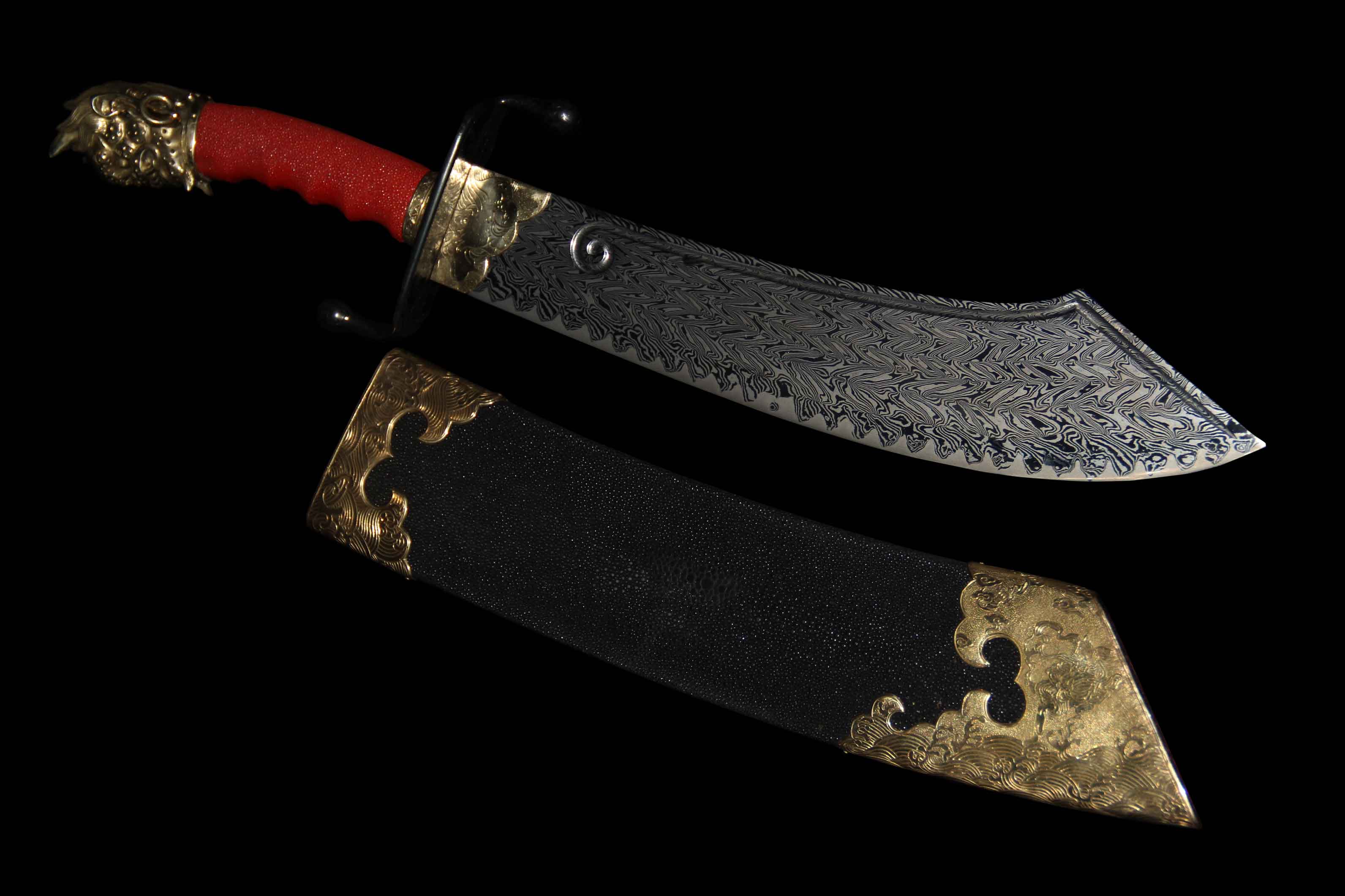 鬼头刀由非遗锻造技艺第六代传人、中国古兵器艺术博物馆馆长刘文涛先生参照博物馆馆藏及史料记载,设计、编排制作,历时三月之久完工的一支经典作品。