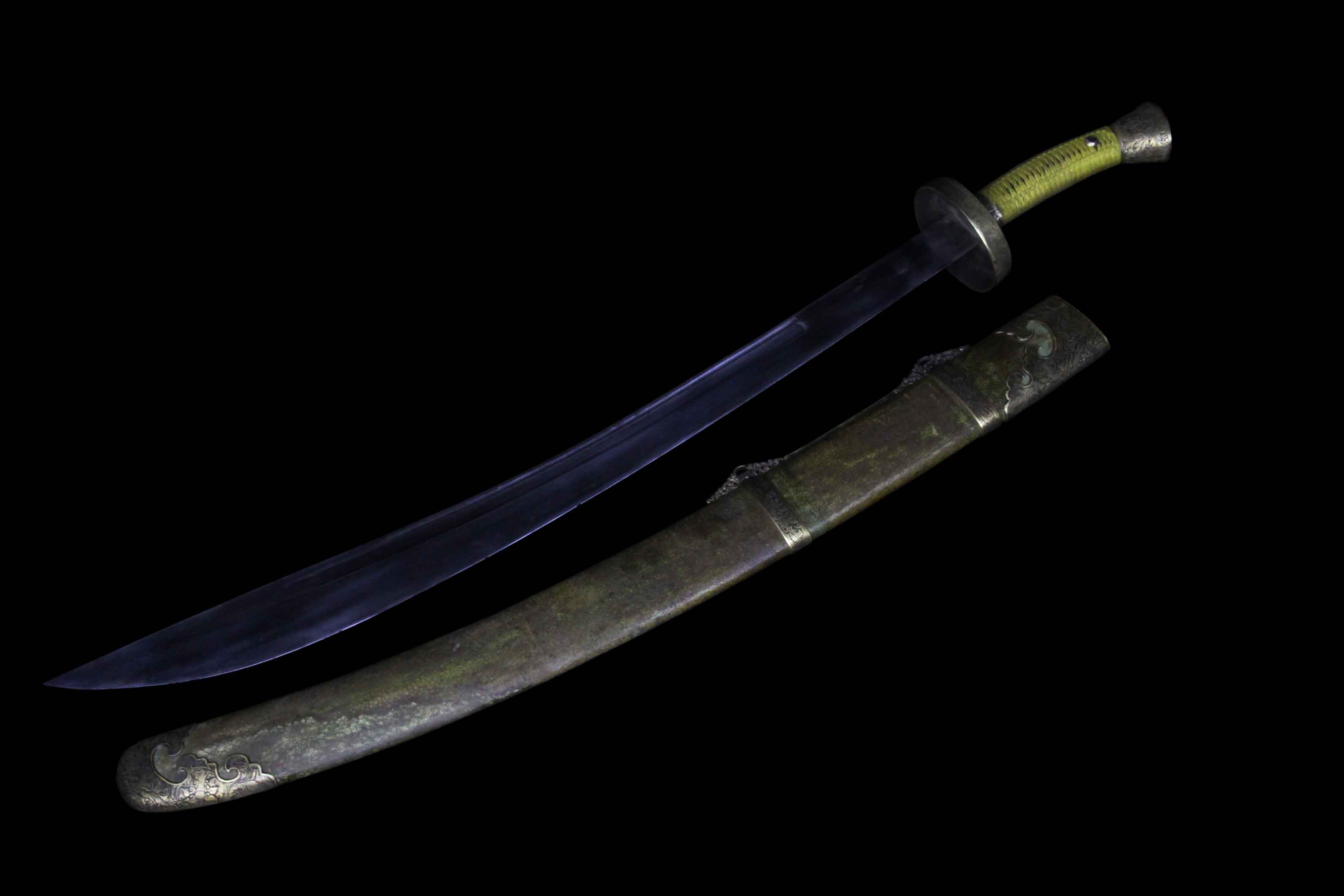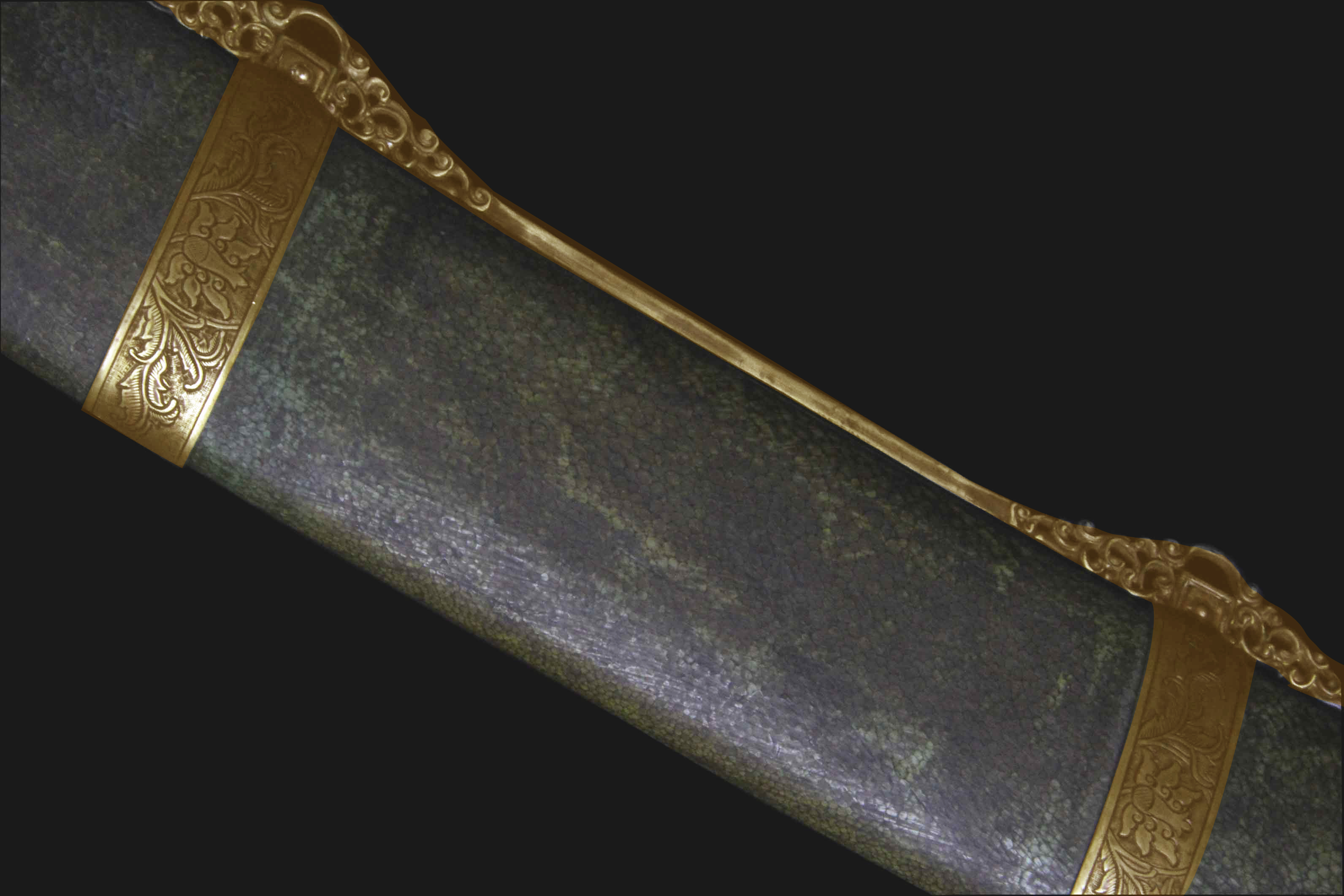 鱼皮残鞘进行对色、补贴。与原件经对色处理后,浑然一体,古韵更浓。