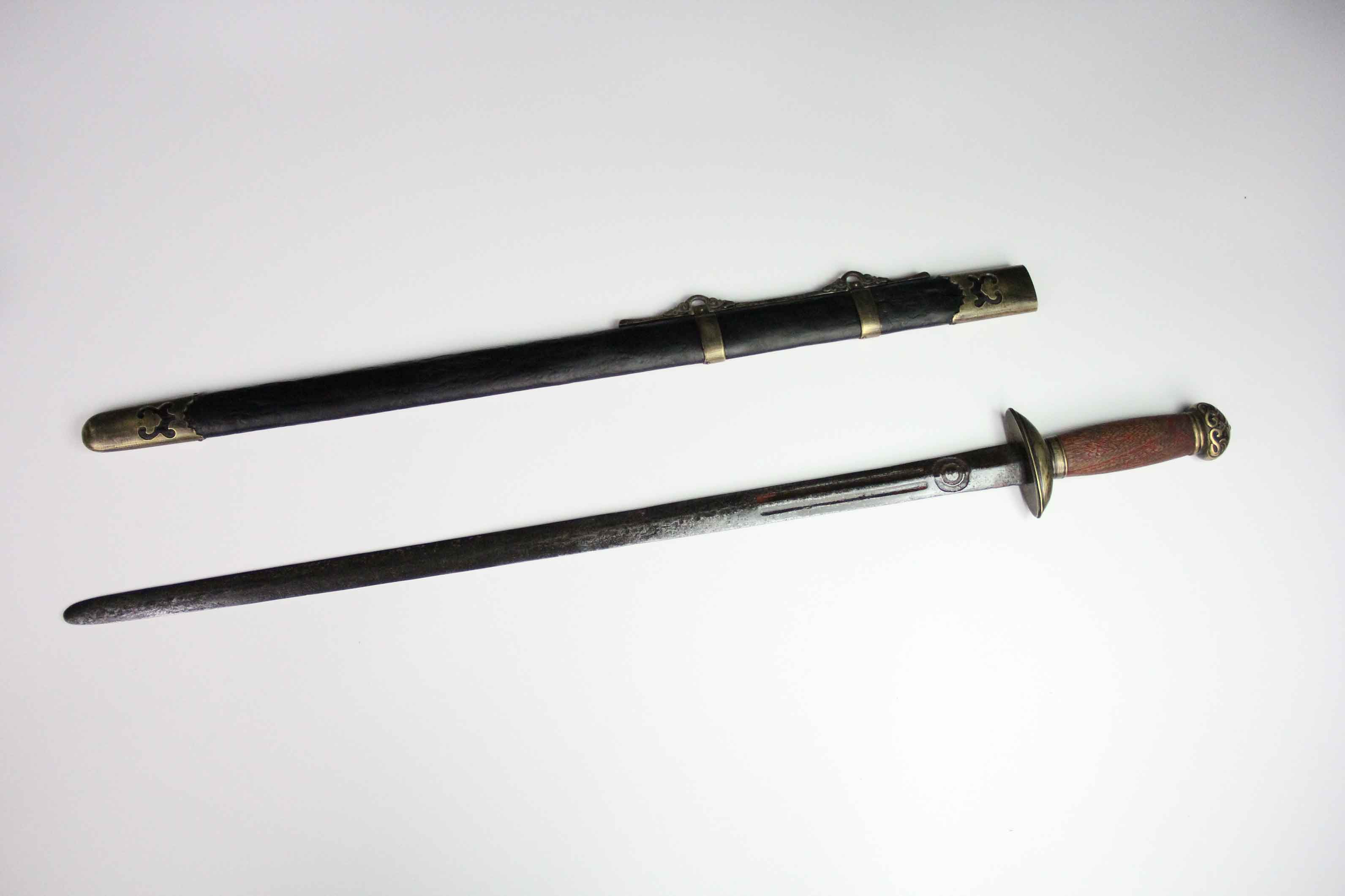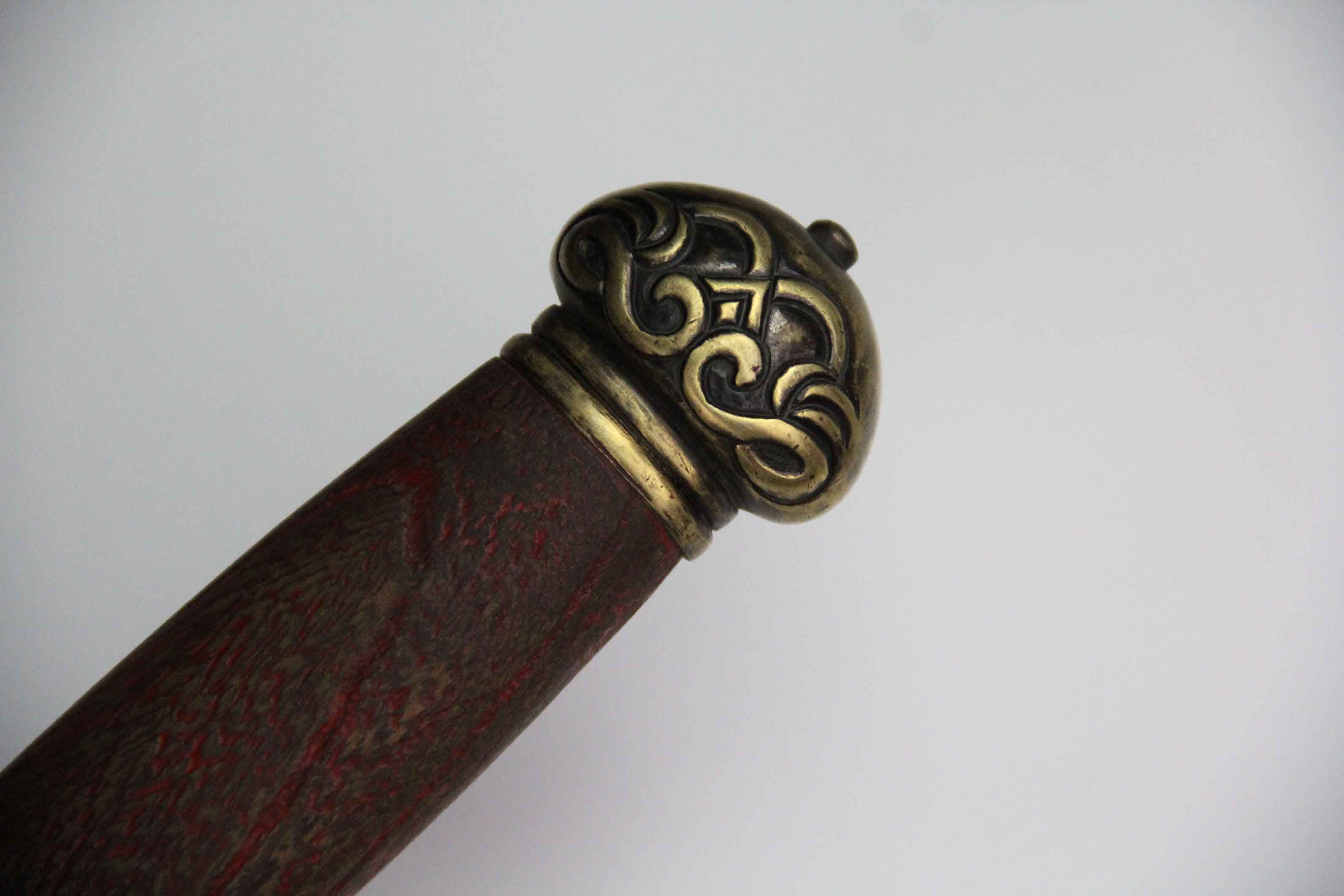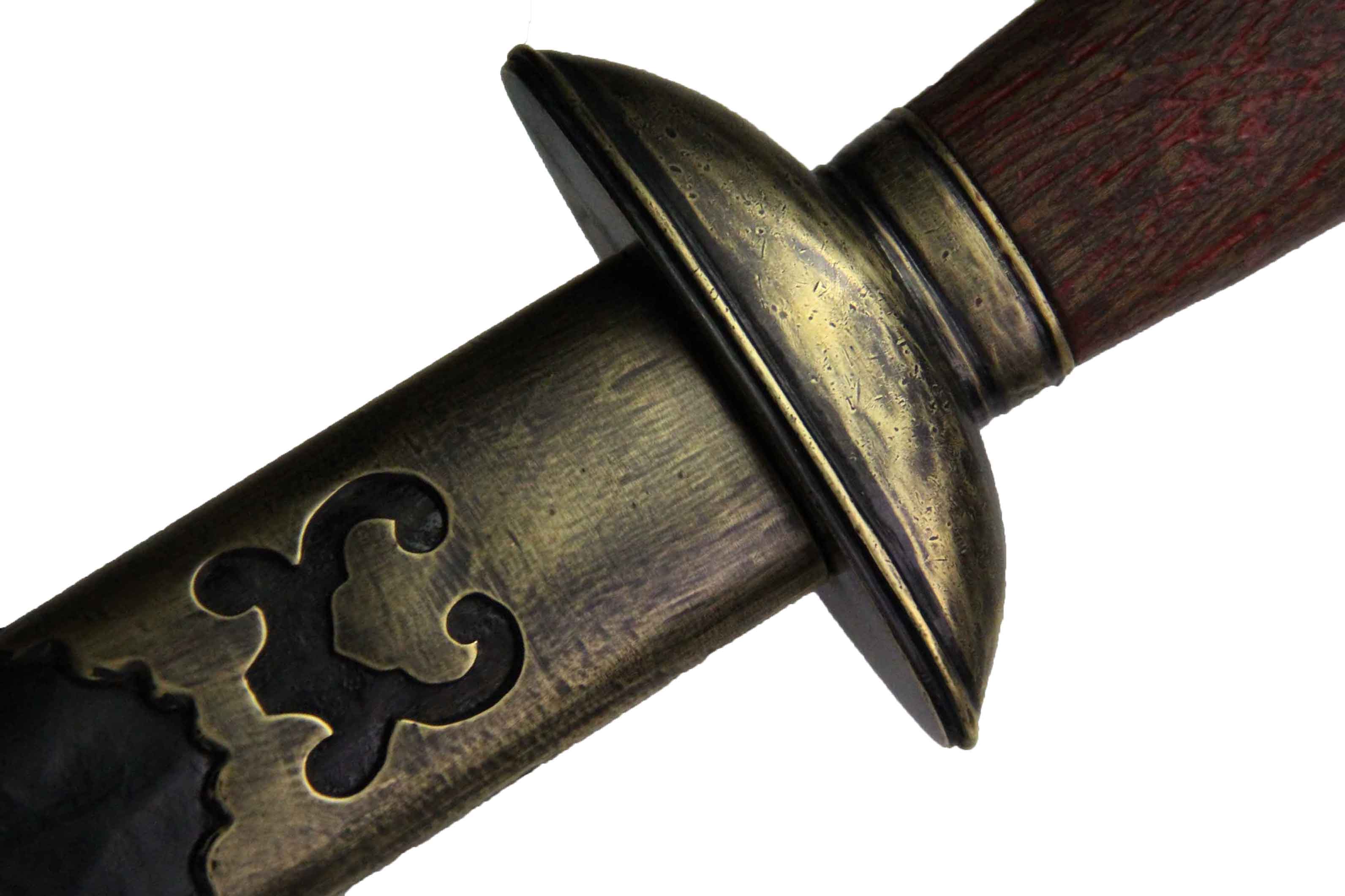 鞘装为素铜装,整装复古做旧,历时两月之久。剑鞘软木包老漆皮,更显古韵。