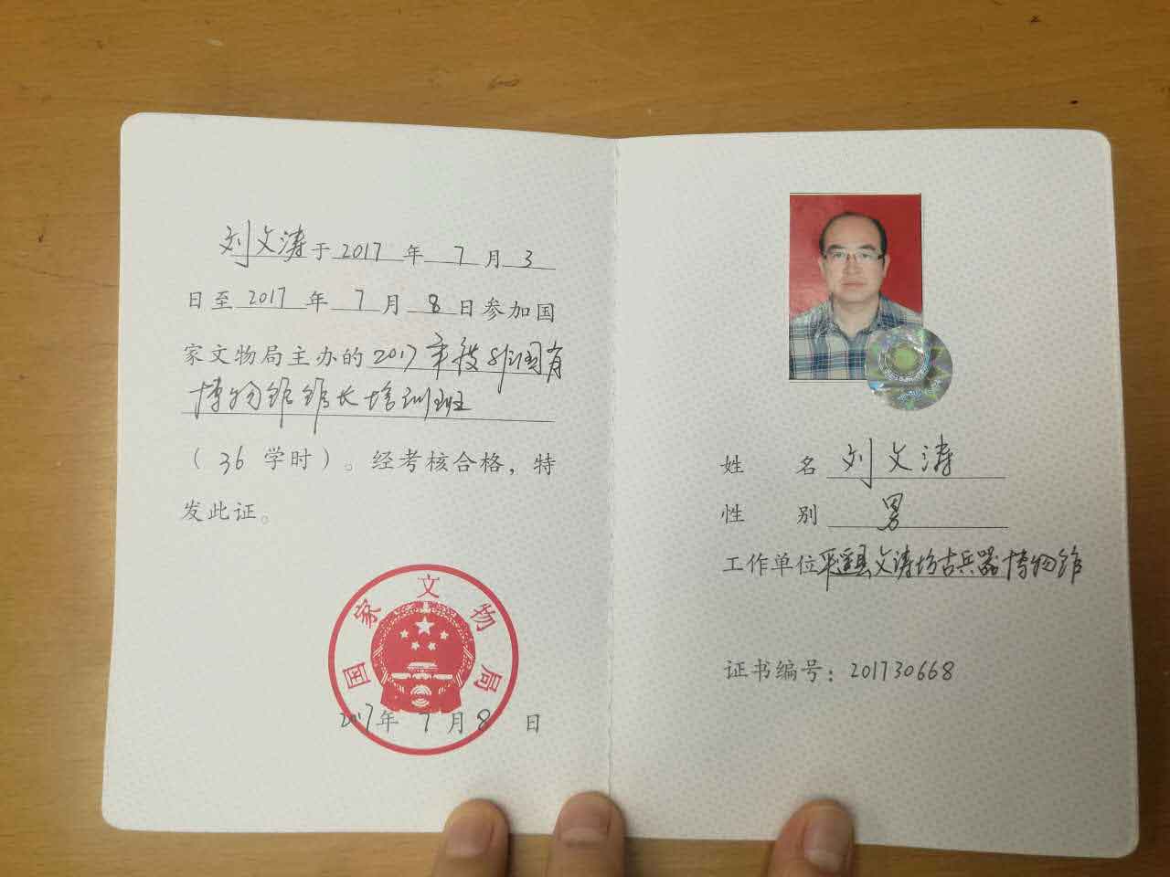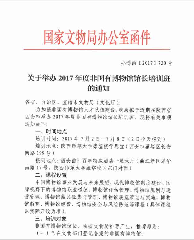 2017年7月2日——7月8日,中国古兵器艺术博物馆(世界遗产——古城平遥文涛坊)馆长刘文涛在陕西西安参加2017年度非国有博物馆馆长培训。