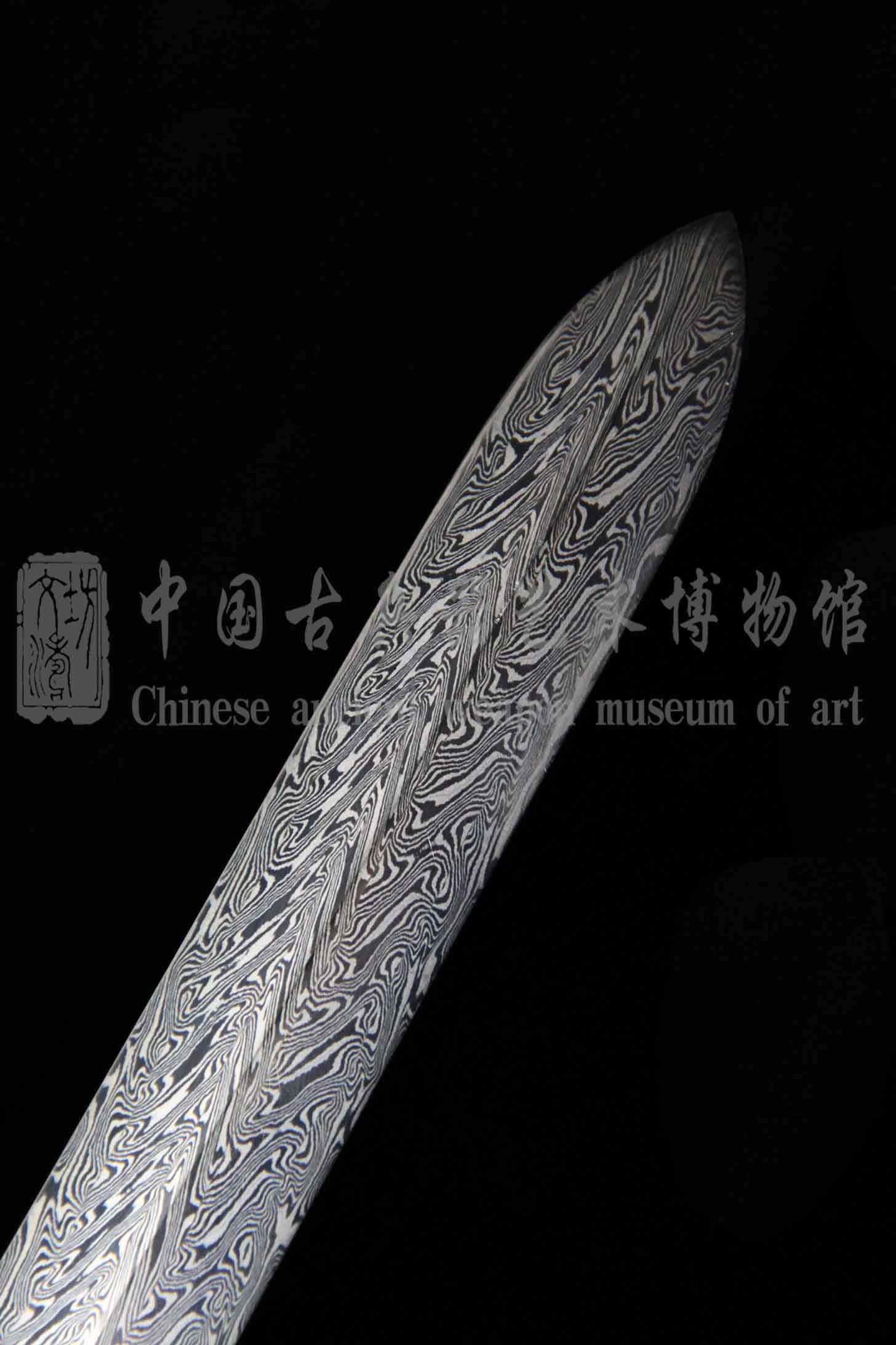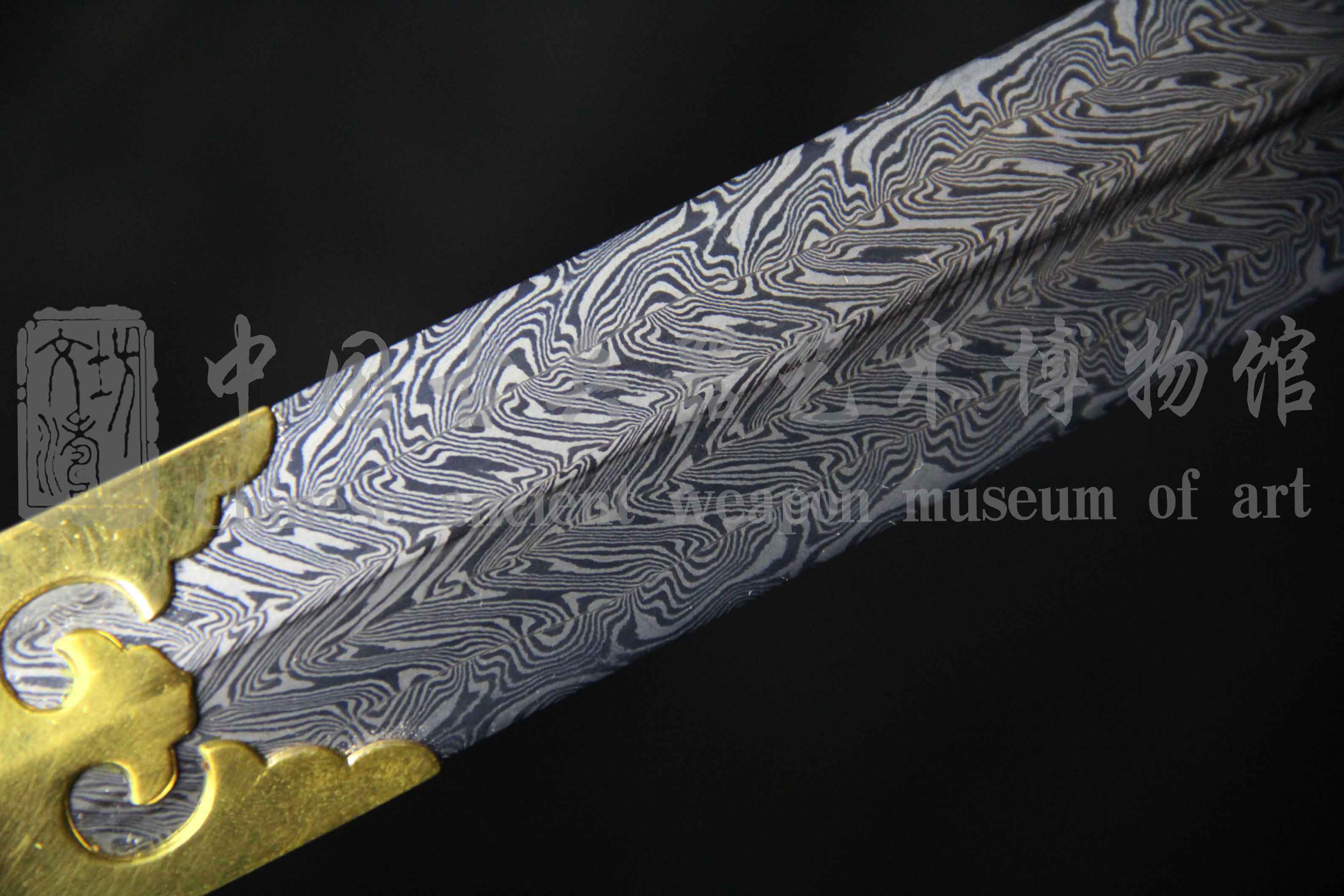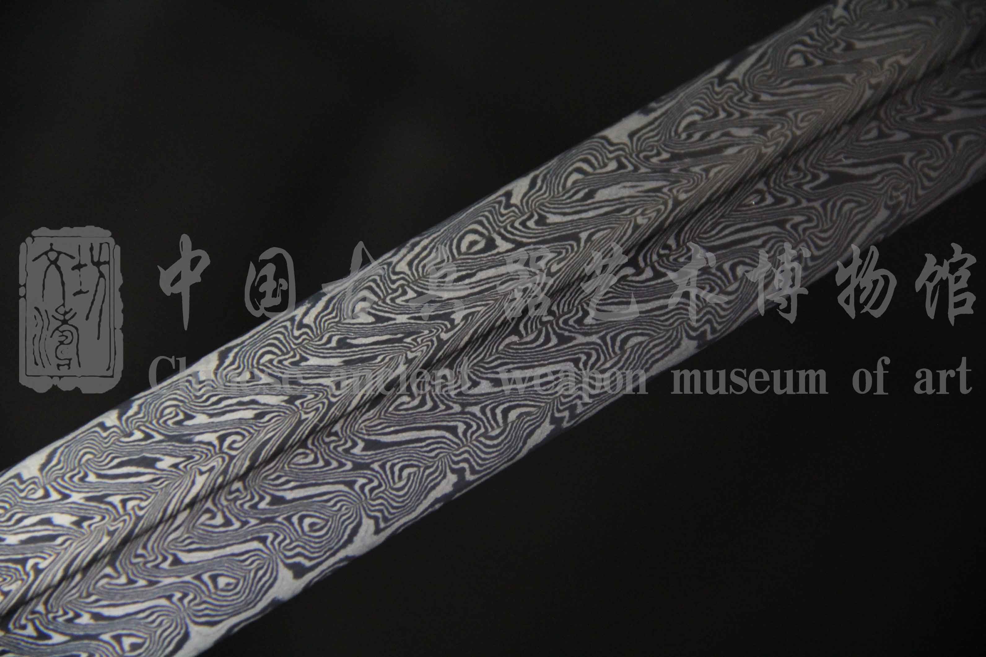 由文涛坊顶级研师,从整型、粗磨、精磨历时近两月之久研磨完工。花纹清晰明亮,羽毛飘逸而出,花纹似手绘于刃,规整绚丽。始于手工锻打而出,终于高超研磨而结,为此剑最大亮点。