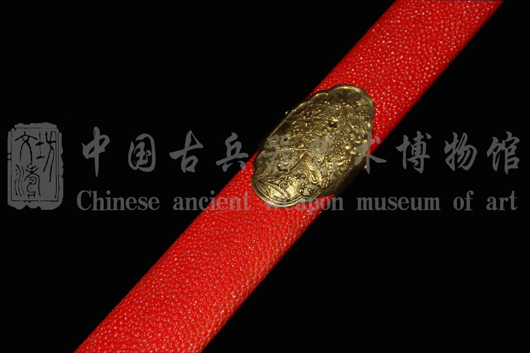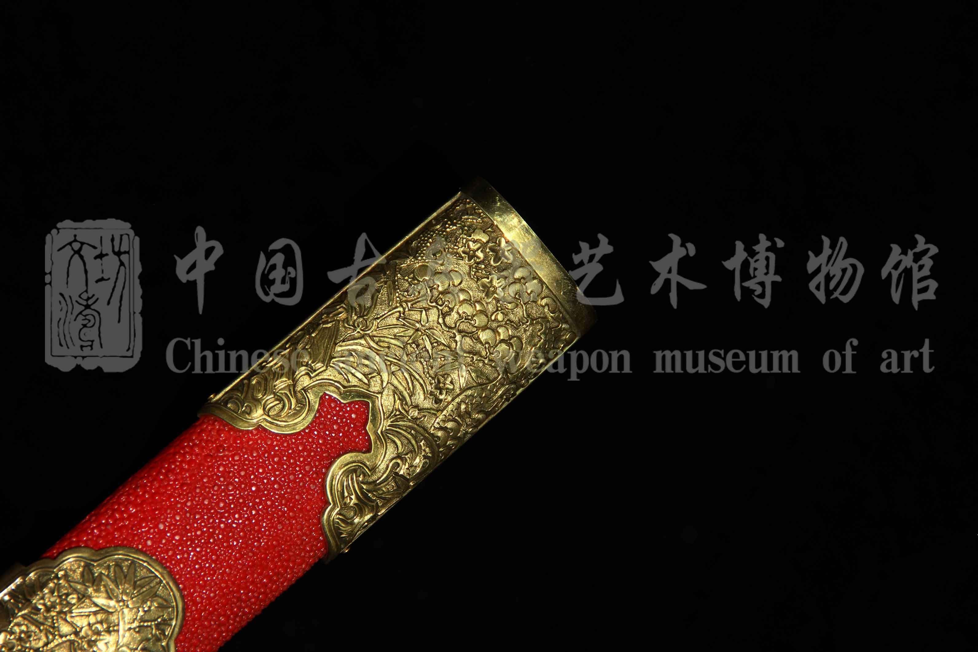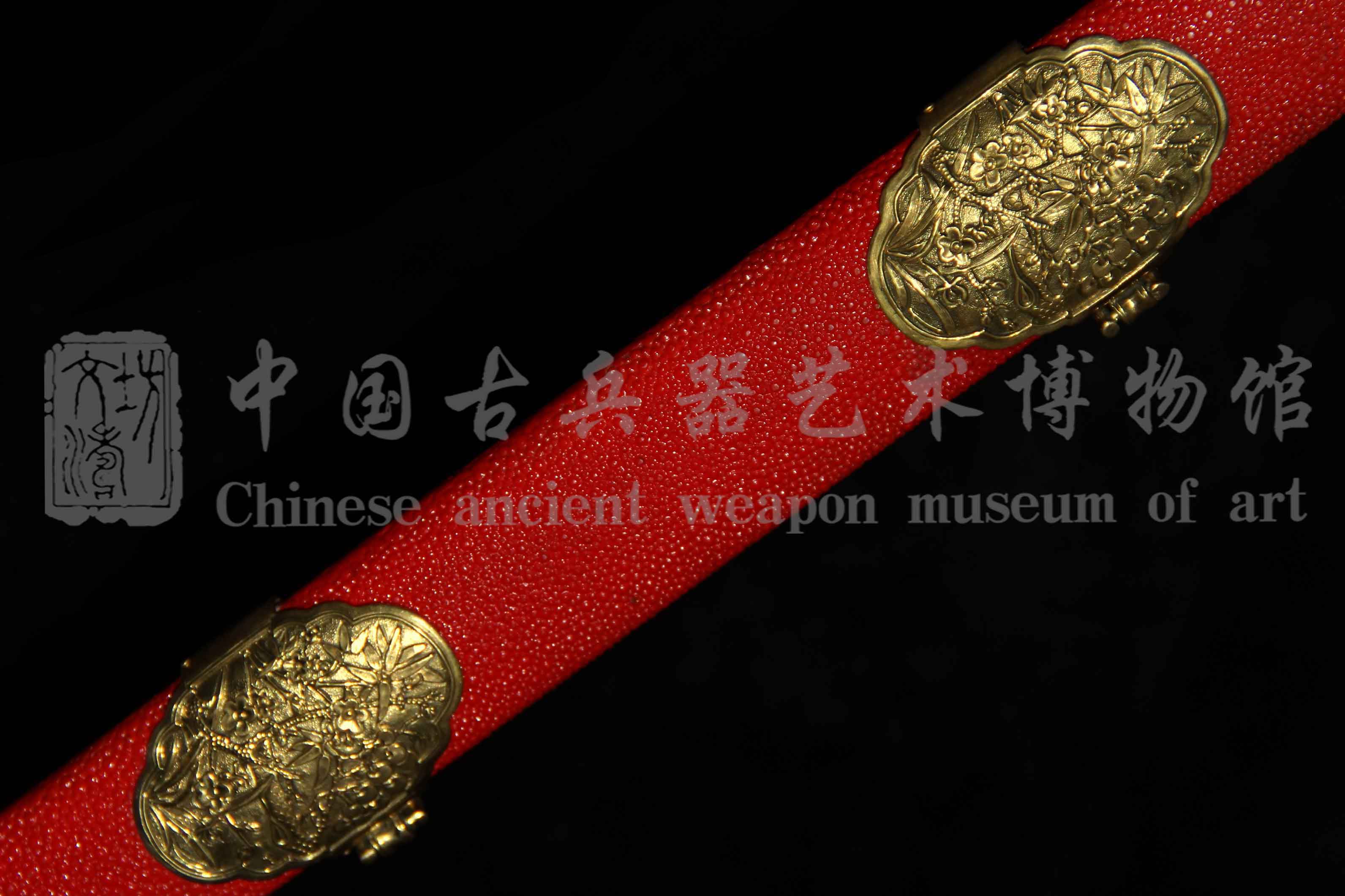 剑鞘软木外包珍珠鱼皮上朱红色大漆。