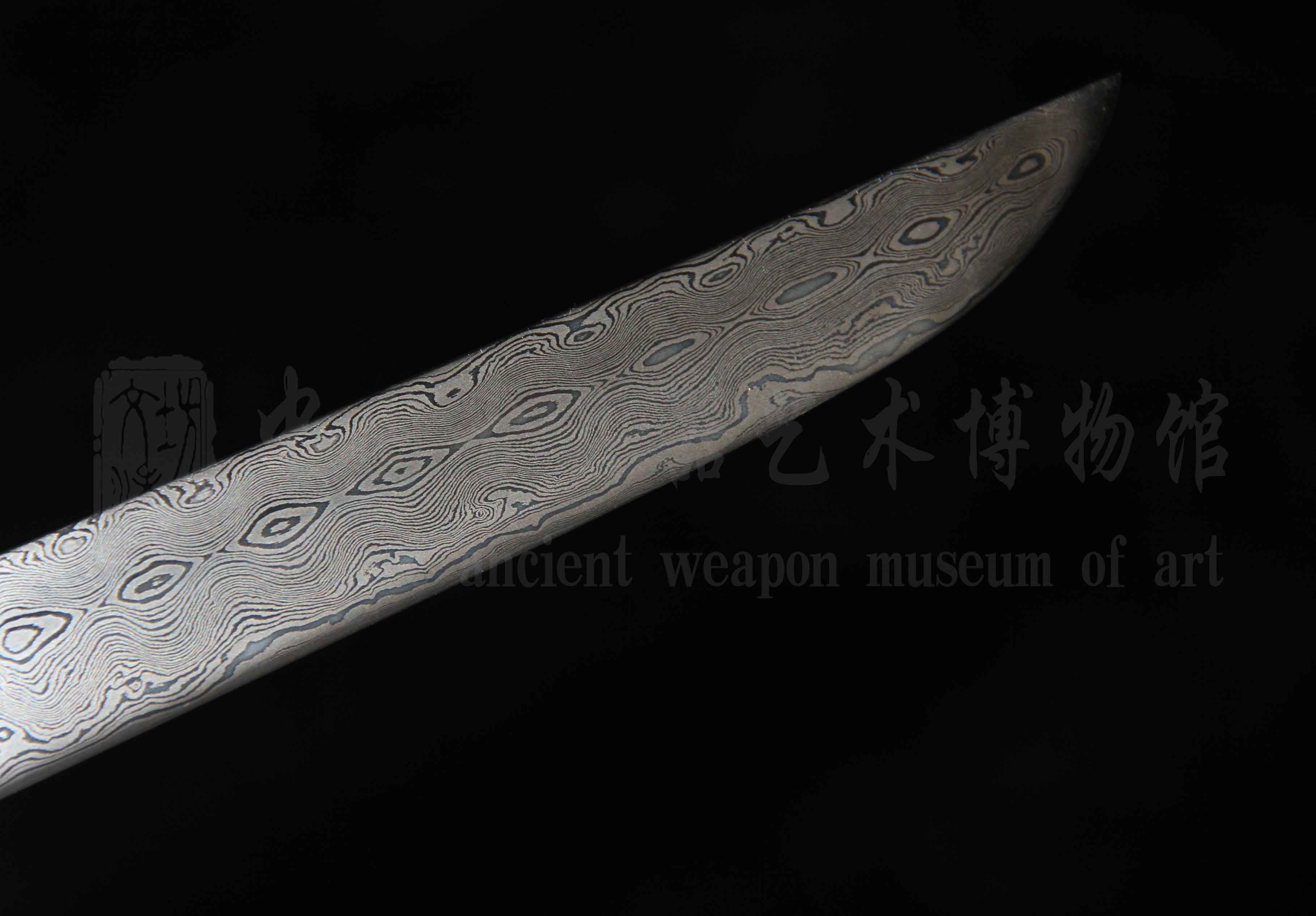 刀身为文涛坊特有工艺锻造而成花纹钢,经顶级研师历时近一周左右研磨而成。花纹清晰明亮,刃部如滚石拍岸,给人意境之美。
