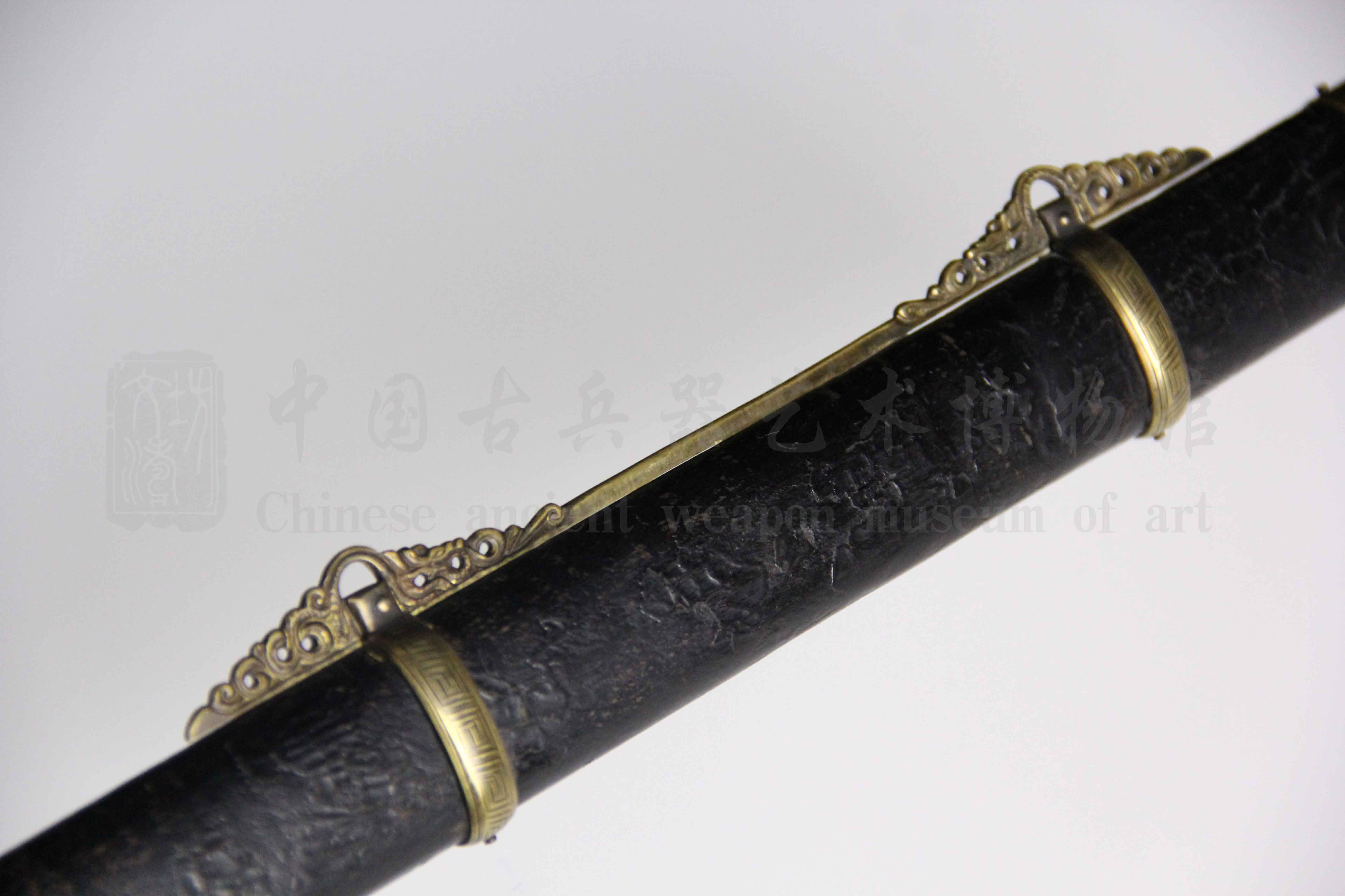 刀鞘为百年古木鞘重包黑色老漆皮古朴大气。