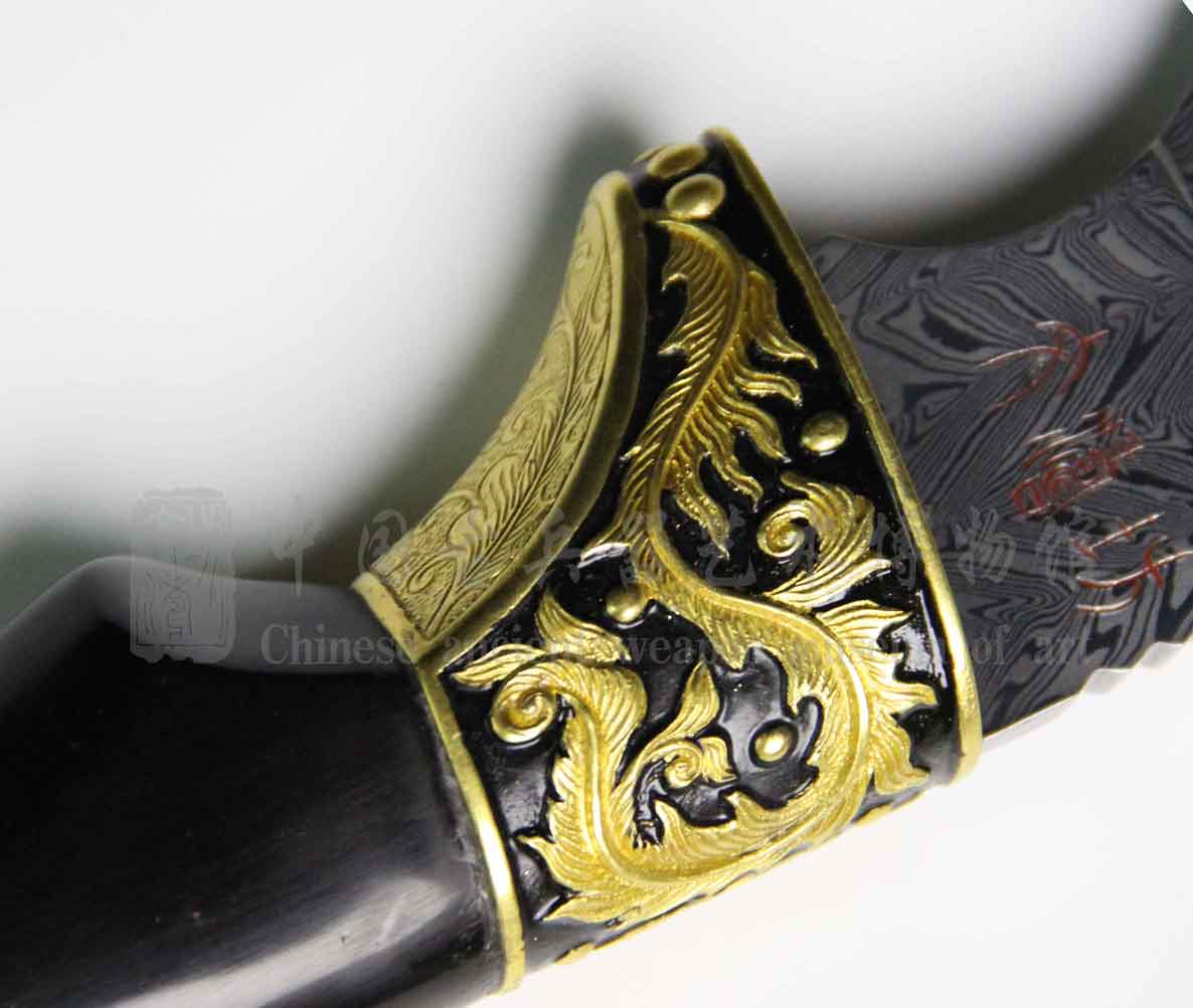 护手部两种技艺,阴刻、浮雕花卉,细节彰显匠人之心。沿用古法花鎏金装具,华丽大气。