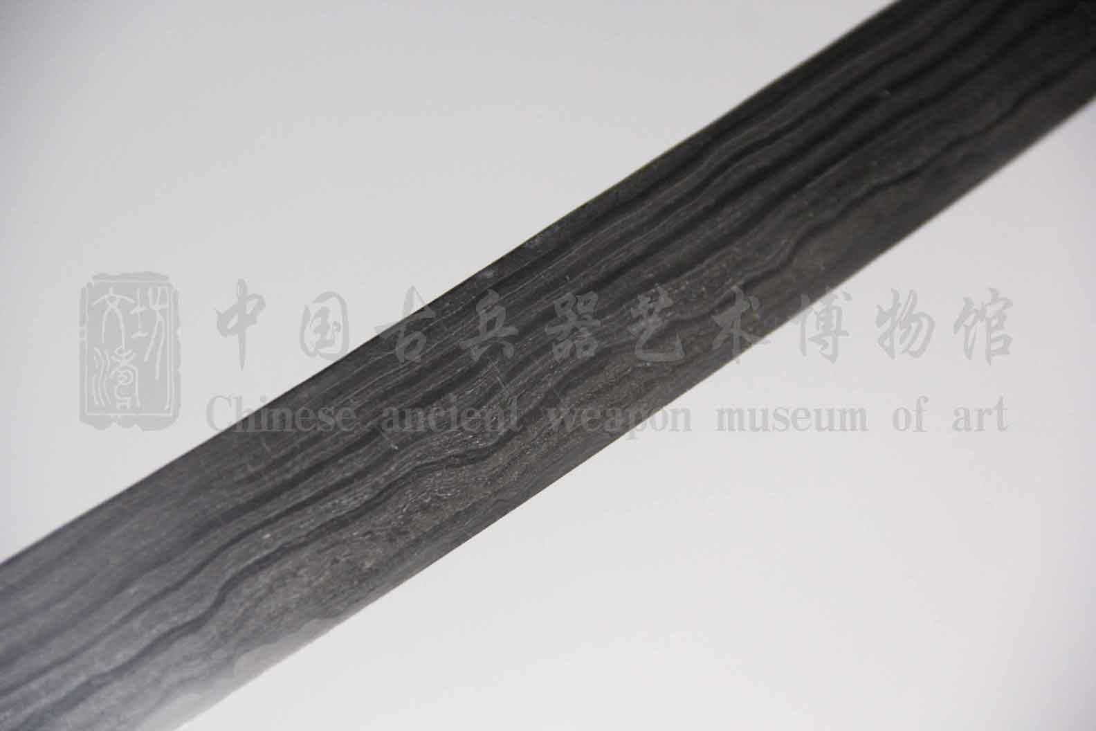 此刀配装修复前为裸条,刀身厚实,刀姿挺拔流畅,手感极佳。经文涛坊专业研磨师研磨,研磨经过整型、调直、粗磨、细磨、精磨,五大步骤。锻造纹理清晰,呈面条纹,研磨历时近一月左右时间,完美再现先人锻造工艺与后人研师精湛技艺。