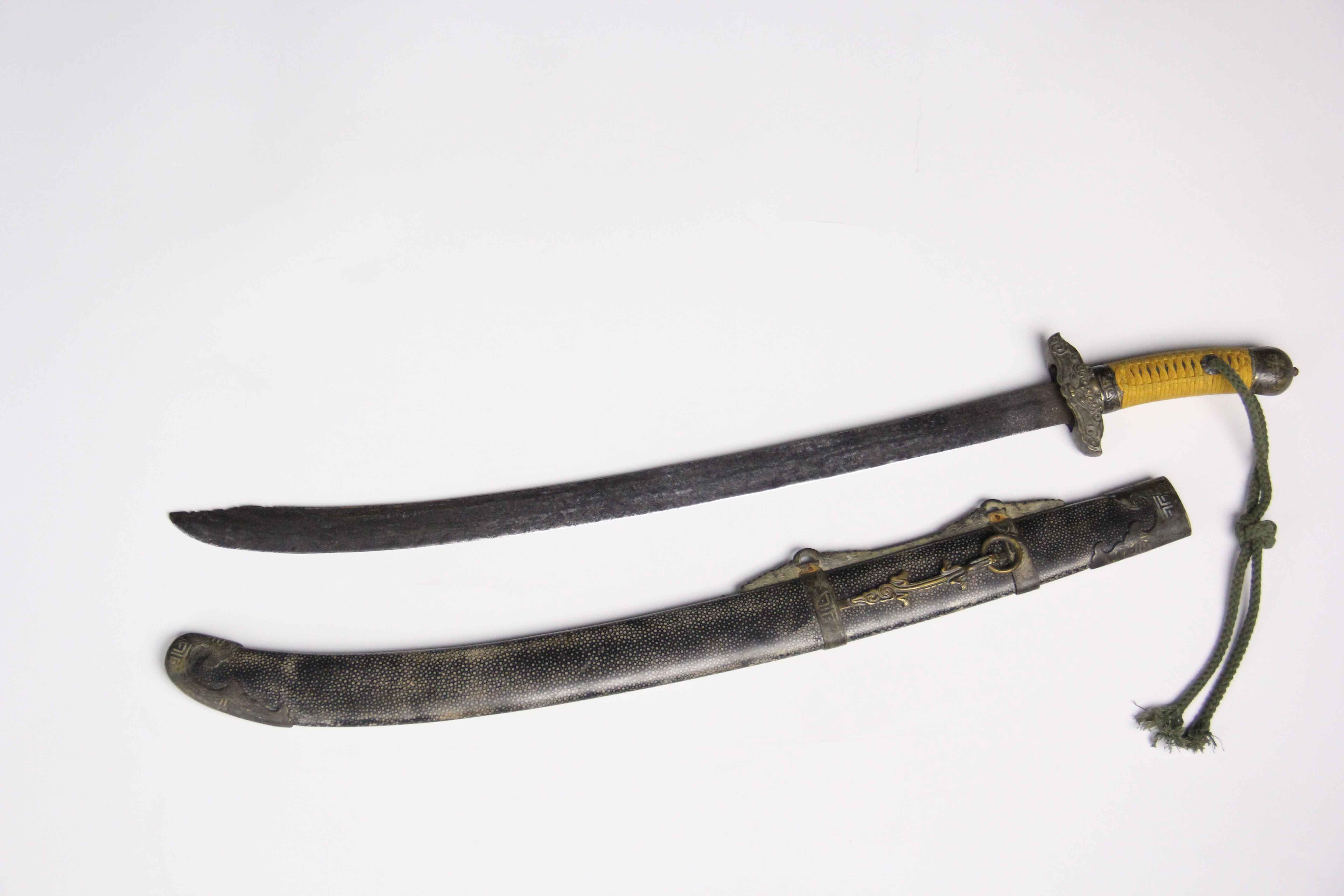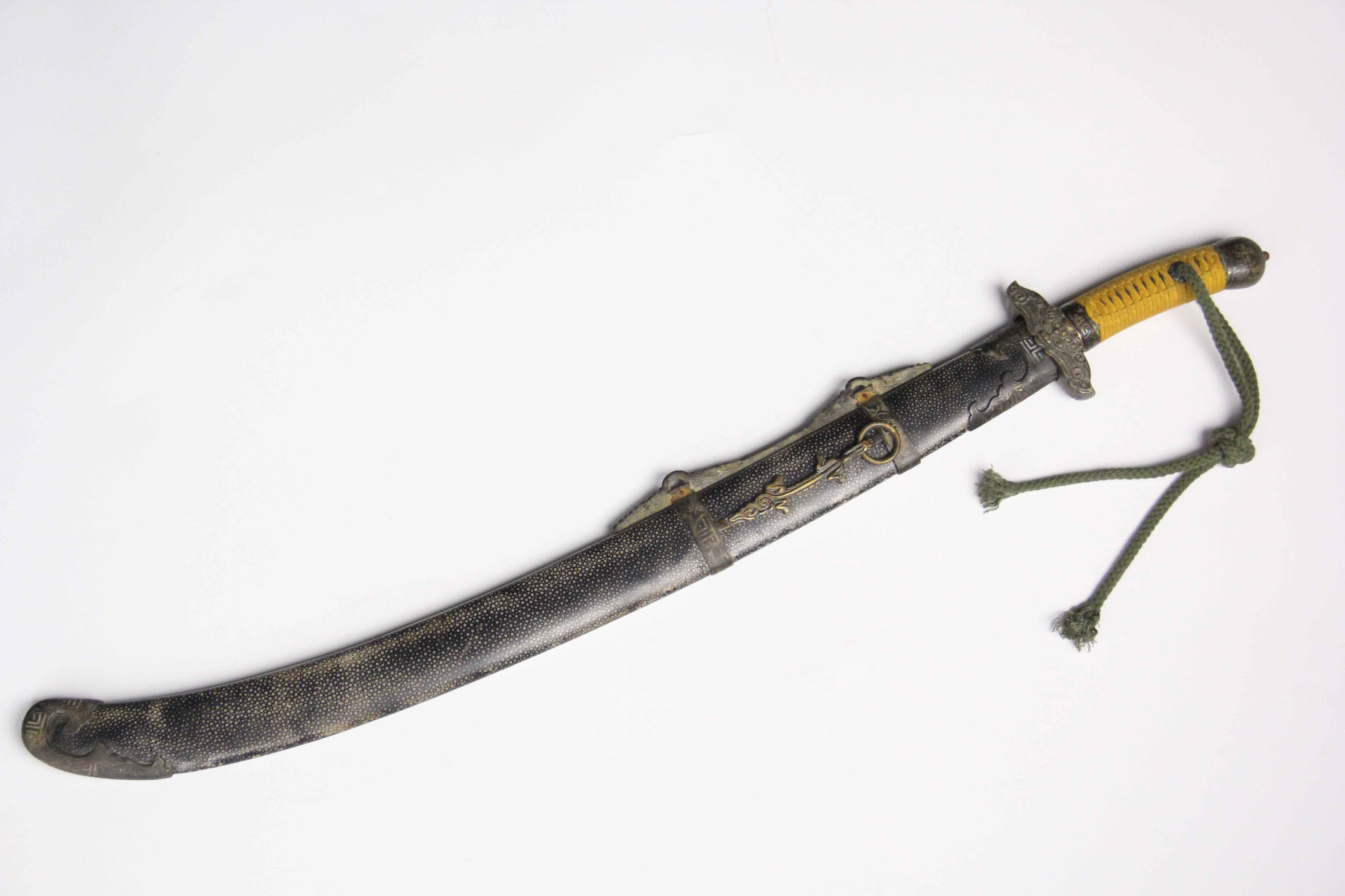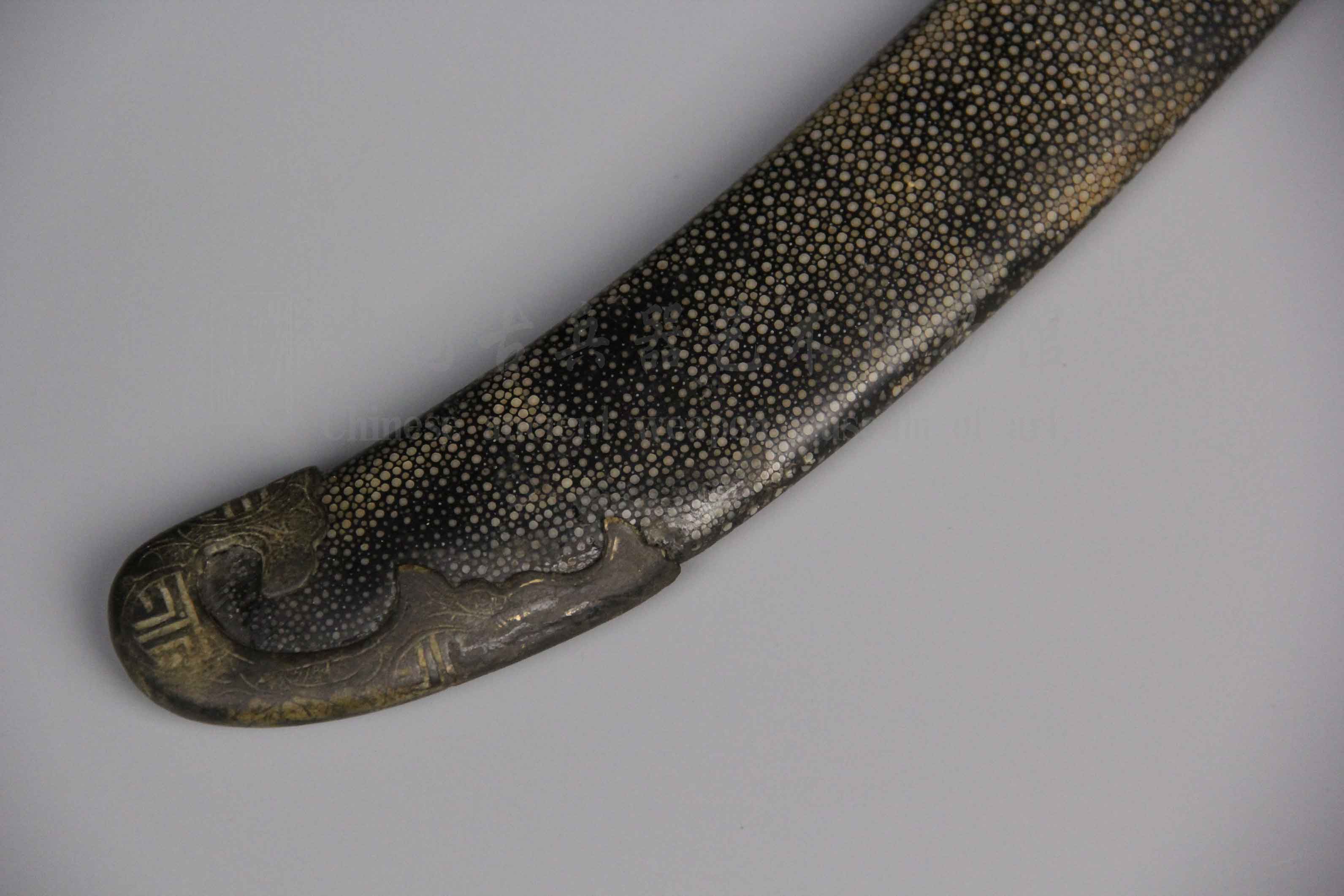 刀鞘为软木外包珍珠鱼皮上黑色大漆更显古朴。