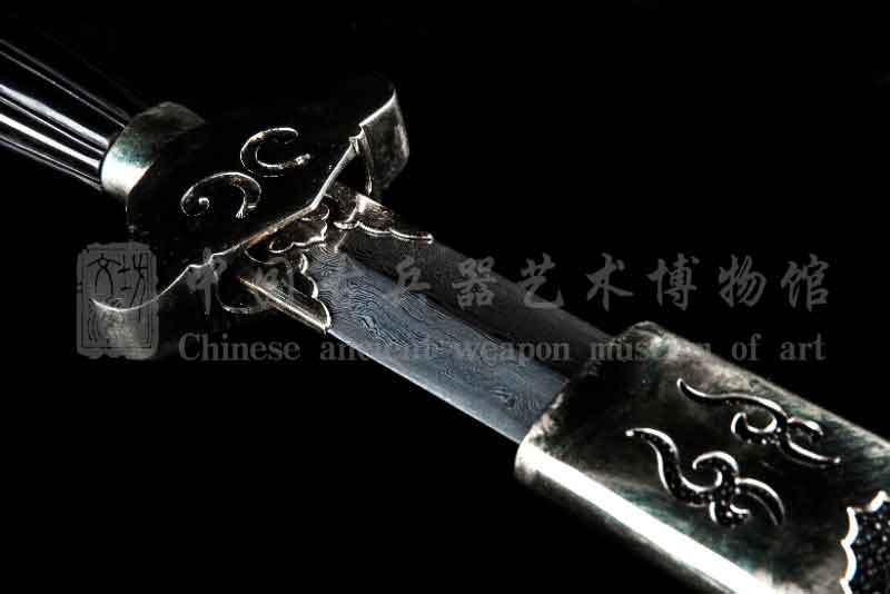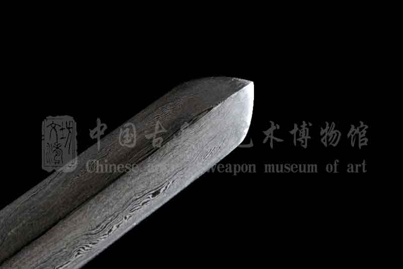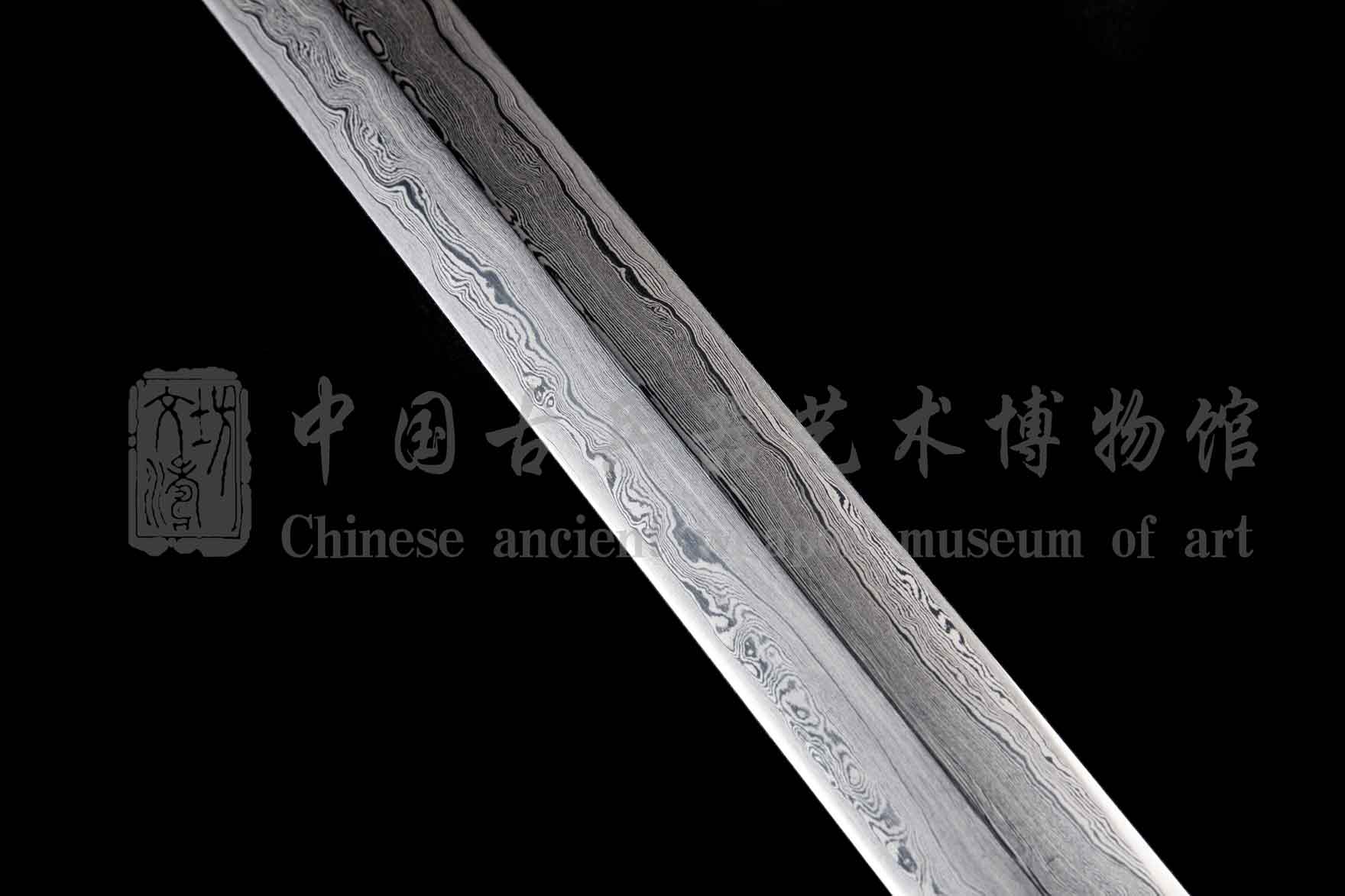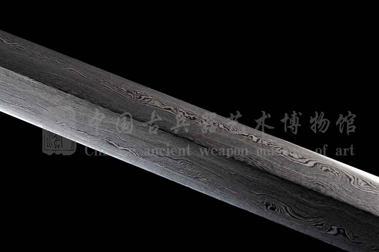 剑身由文涛坊自炼土钢与高碳钢经特殊锻造而成的花纹钢,子夜淬火,硬度极佳。