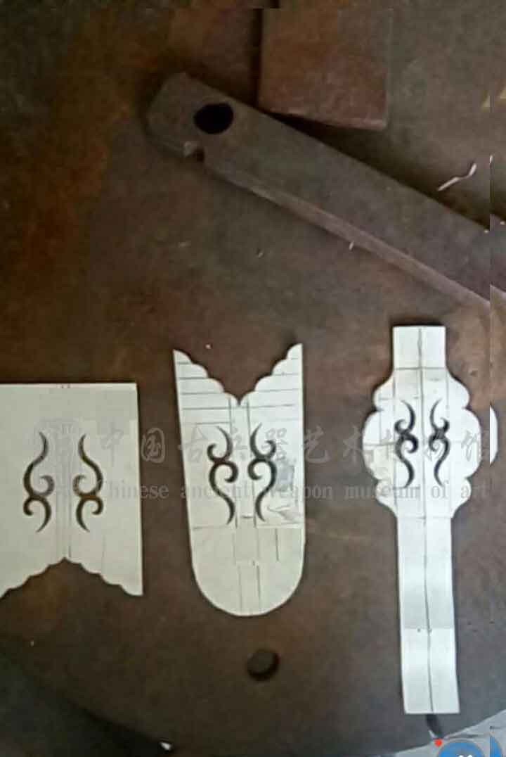 素装白铜剑参照中国古兵器艺术博物馆馆藏,由锻造技艺第六代传人刘文涛老师,设计、编排、制作,历时数月之久完工。