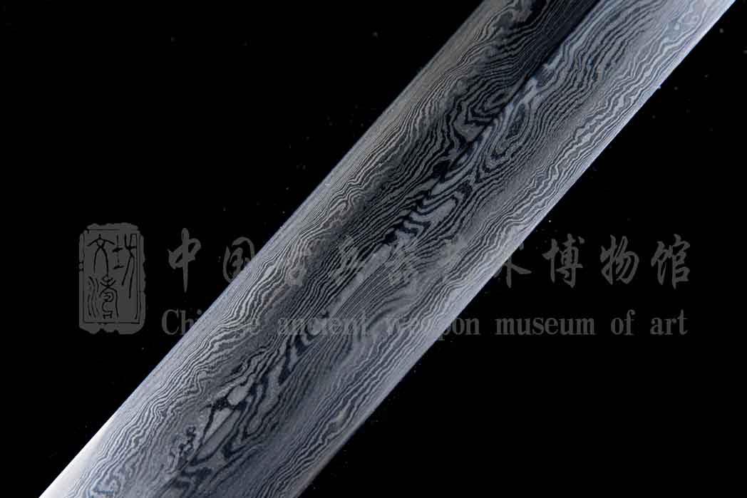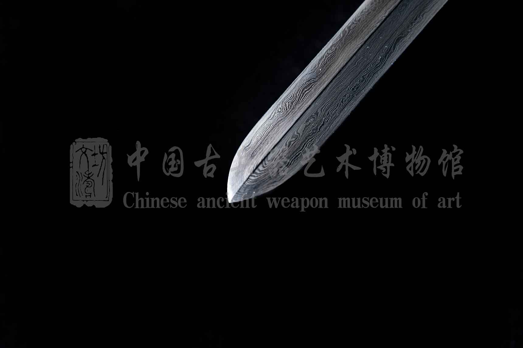 剑身由文涛坊自炼土钢与高碳钢手工折叠锻造而成,千锤百炼,子夜淬火、硬度极佳。