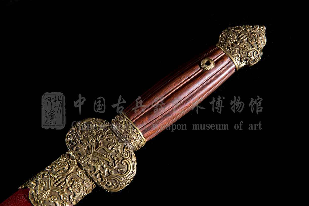 剑柄精选优质红木,手工做柄,做瓜棱状,开瓣均匀饱满,厚重大气。