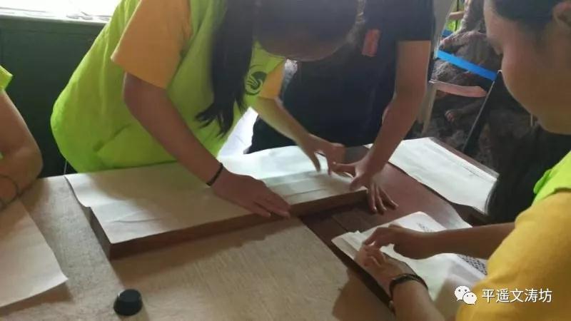 行程第三步,来到研学大厅,制作青铜剑拓片。拓片作为古物留存形制、尺寸最直接的表现形式,是最近距离感受文物的一种方式。同学们在馆内老师的讲解下,纷纷制作拓片。