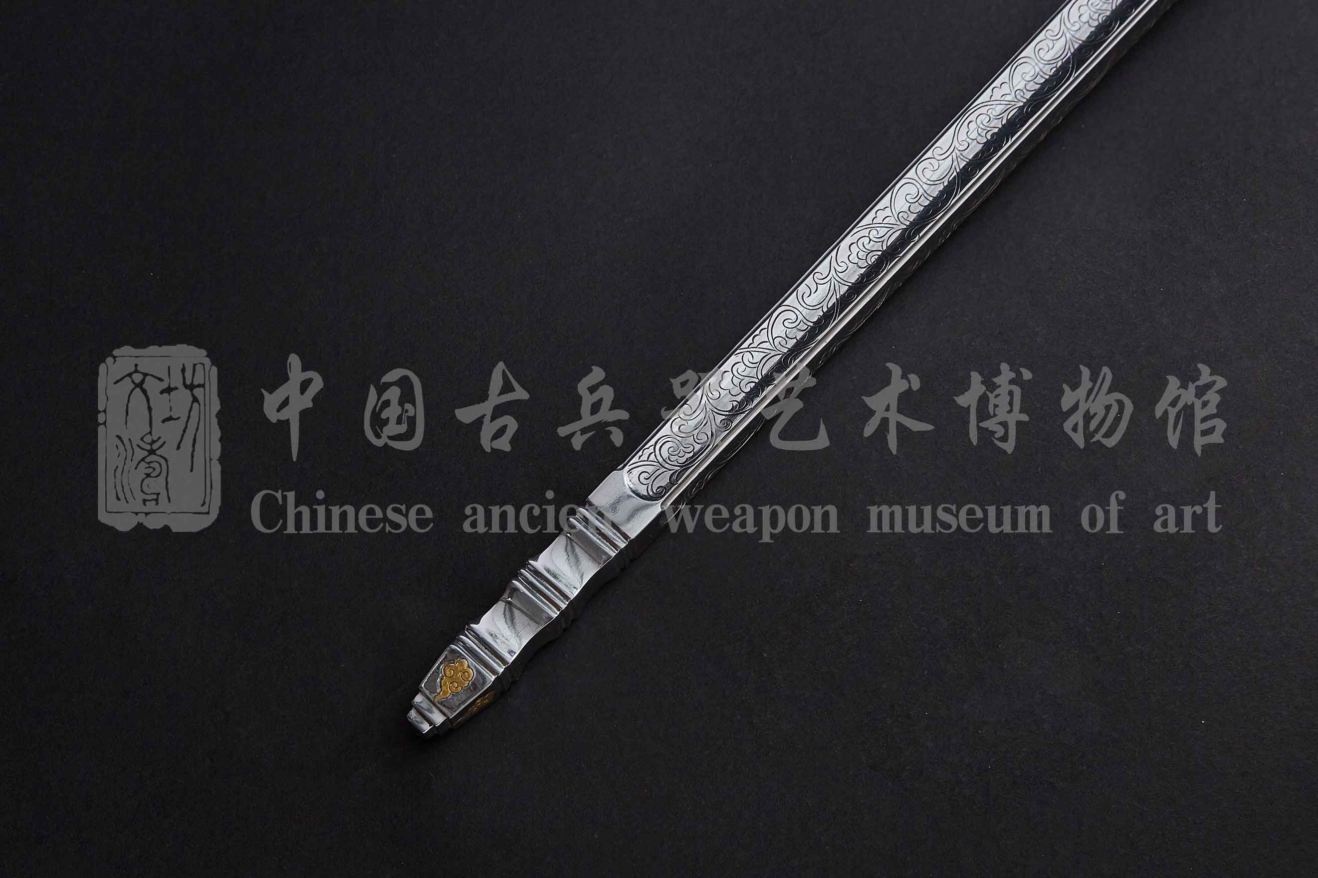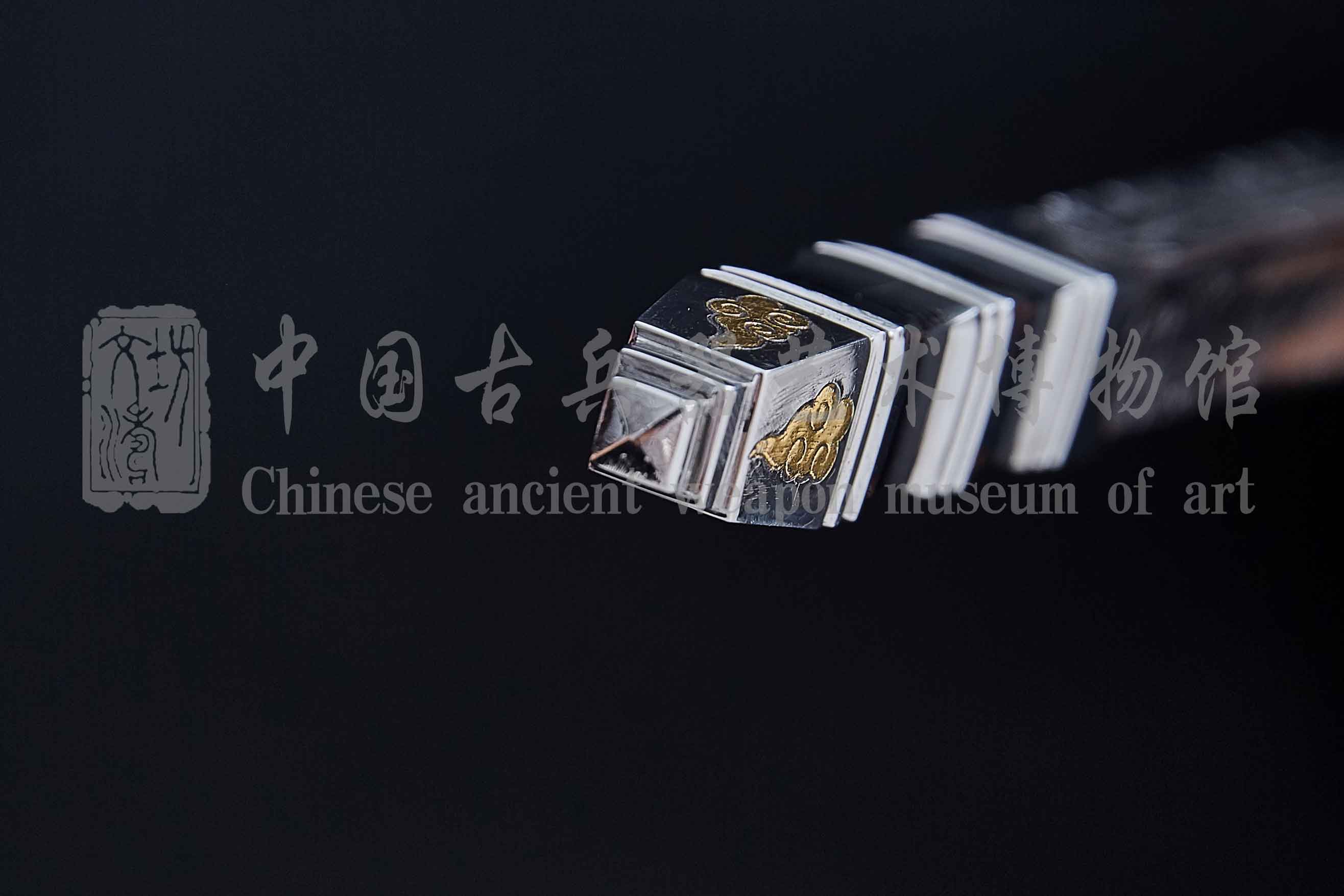 吞口与锏尖采用中国金属雕刻的核心工艺——鋄金银工艺,做祥云与火球造型,体现了此锏极高的身份。