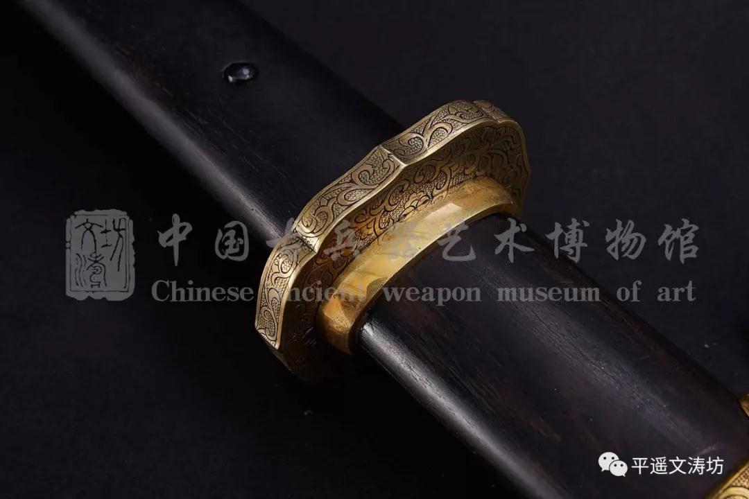 唐刀装具精选黄金铜,手工围制而成。大师手工精细雕刻,卷草雕刻细腻生动,耗时近一月。