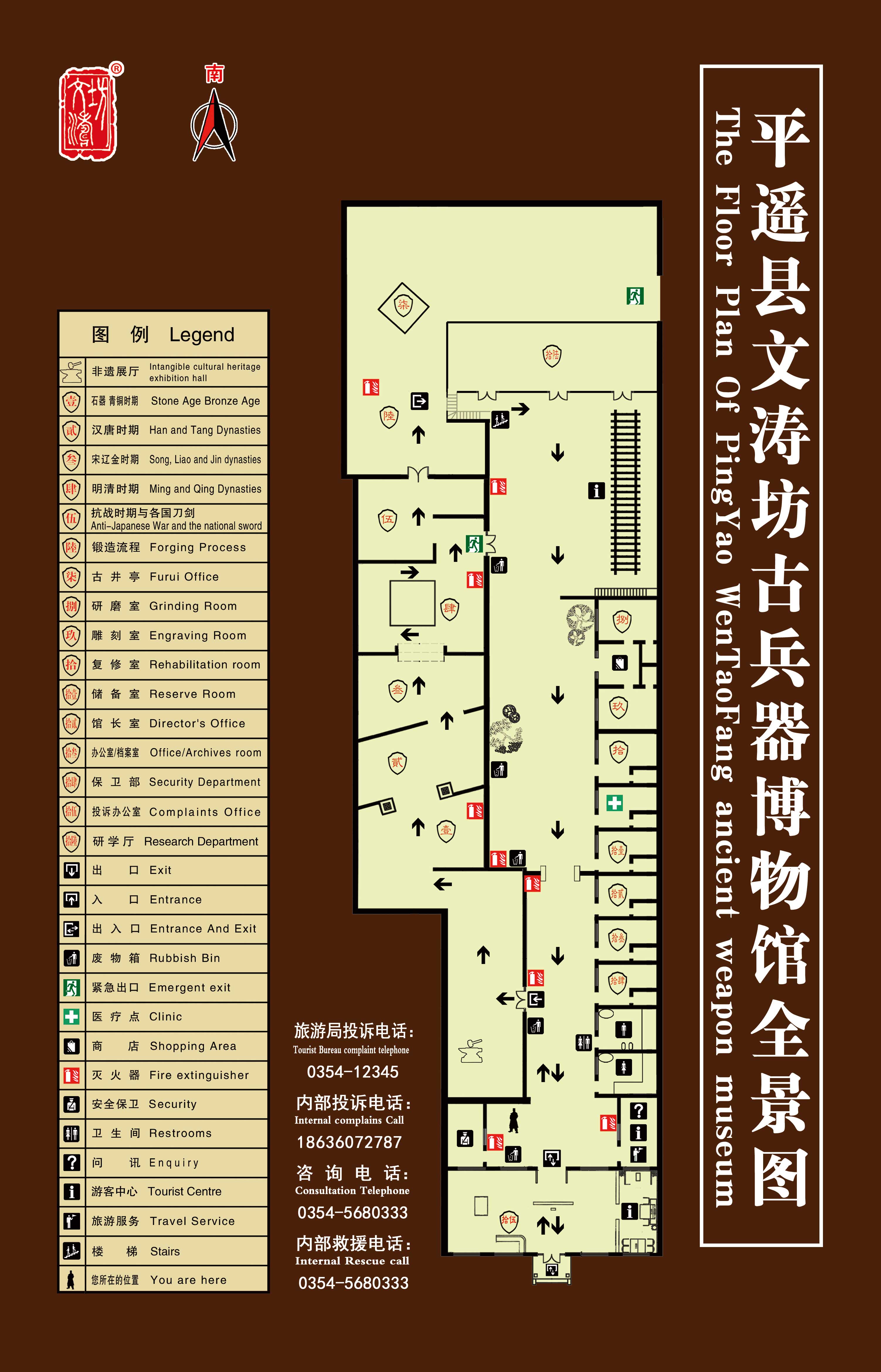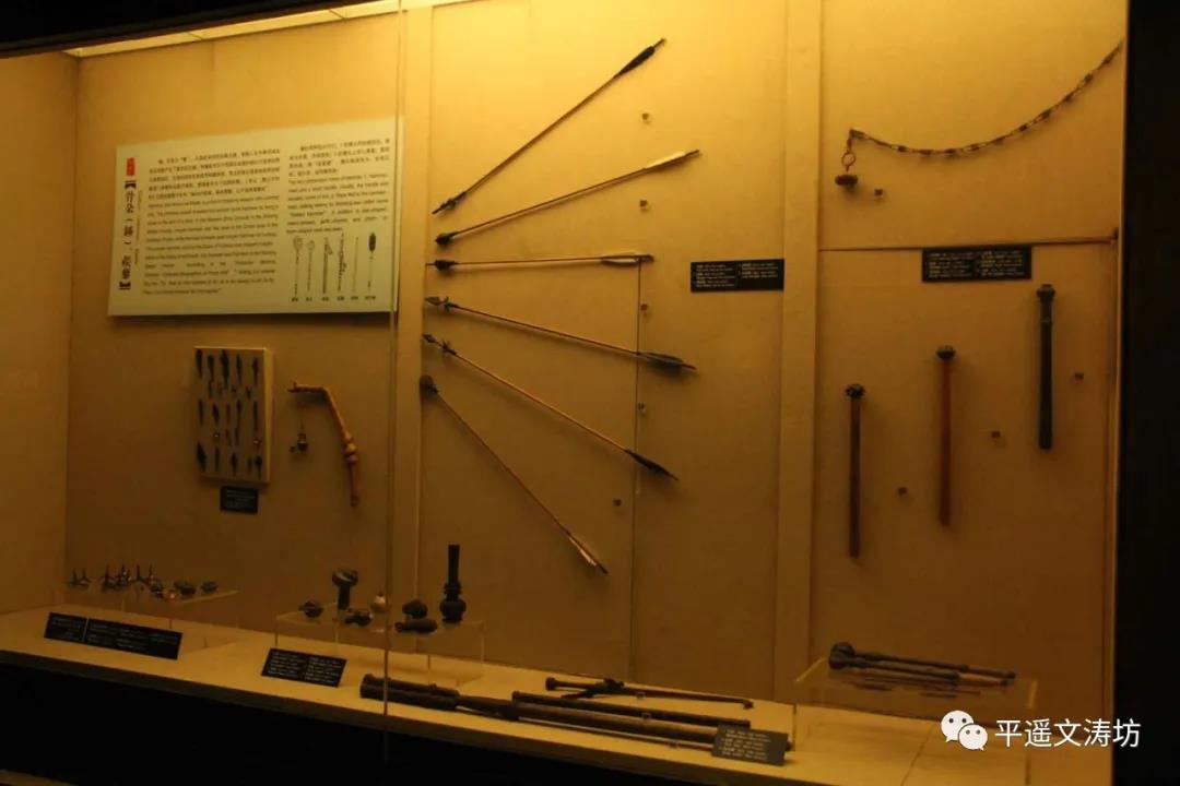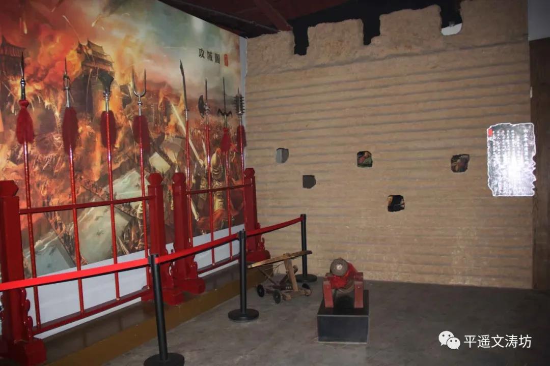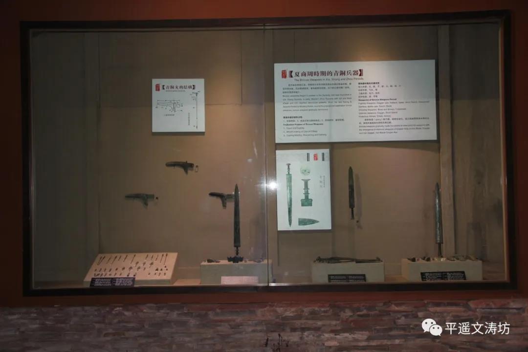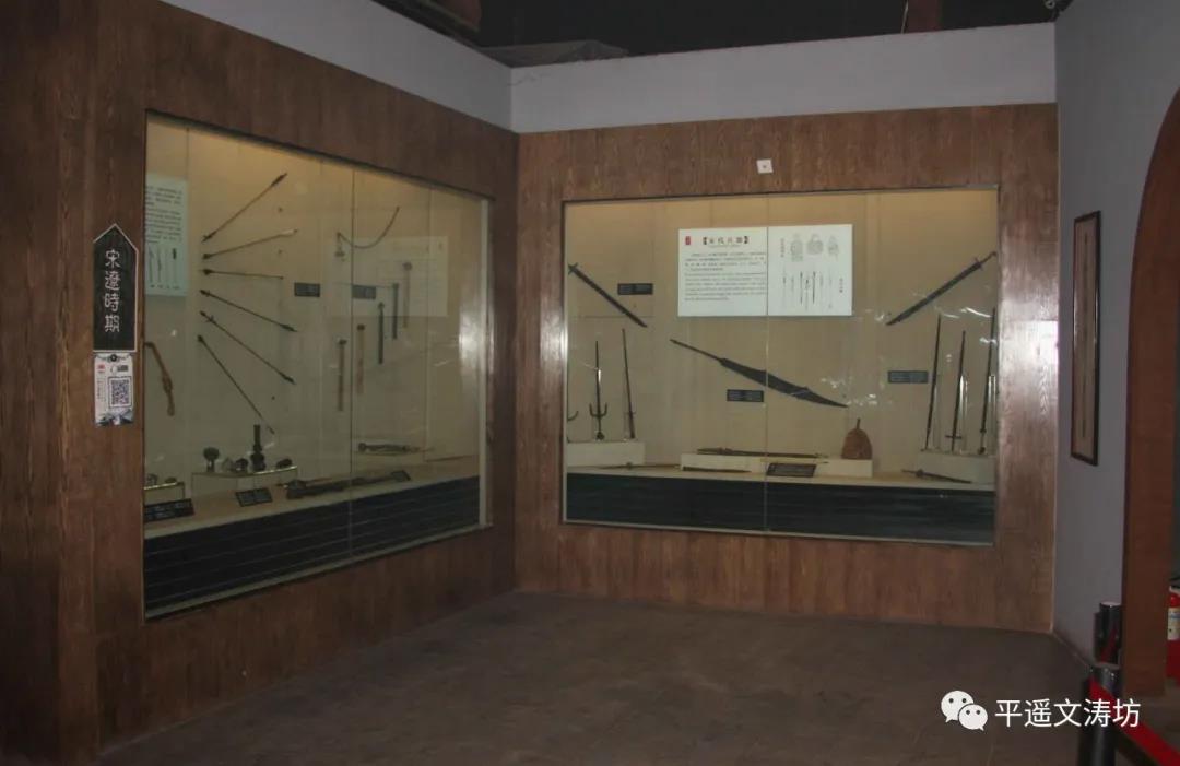 The 7 halls exhibit physical ancient weaponry, projections, pictures, embossed sculptures, porcelain, and oil paintings, displaying the weaponry cultures of the primitive period, Bronze Age, Han Dynasty, Tang Dynasty, Song Dynasty, Yuan Dynasty, Ming Dynasty, Qing Dynasty and eventheperiodoftheAntiJapanese War. While viewing the ancient weaponry, visitors can also learn about some of the most famous historical events in ancient Pingyao. For instance, the original city walls of Pingyao were built by general Yin Jipu who was stationed here with his army. Or the struggle against the Jin Kingdom general ZhanHan attack on the town of Pingyao, or the defense at the city gate to defeat the plundering Liao Kingdom warriors.