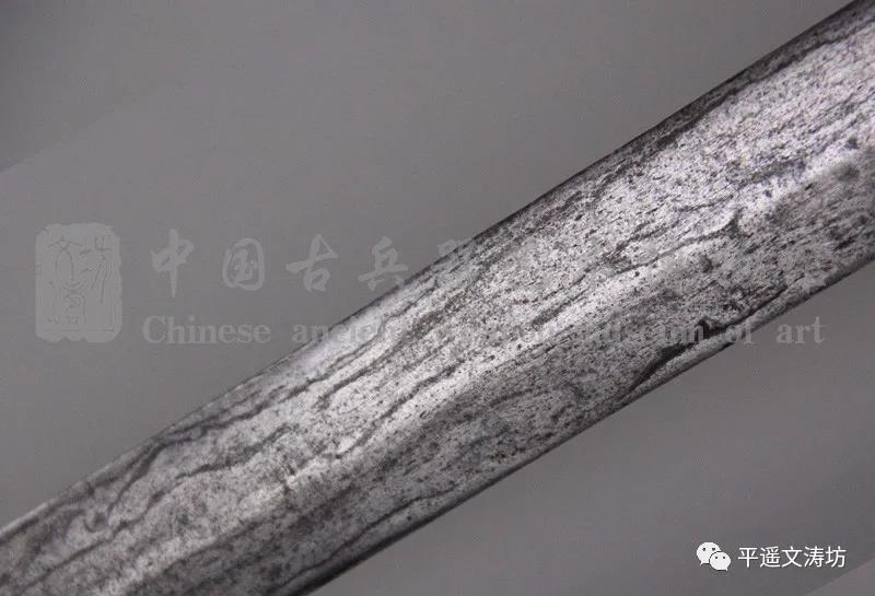 经专业研师清理后,夹钢线明显,剑身为团打花纹,皮壳完整。虽已过百年,但锋芒不减当年。