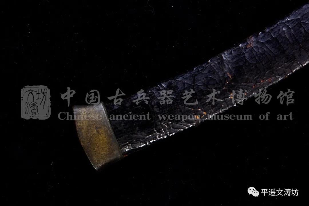 刀鞘为体现朴素之感,硬木披麻、挂灰上大漆,做缎纹处理。效果完美,古色古香。