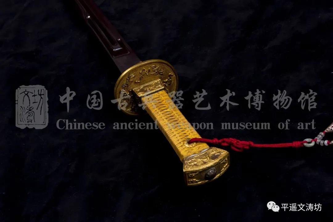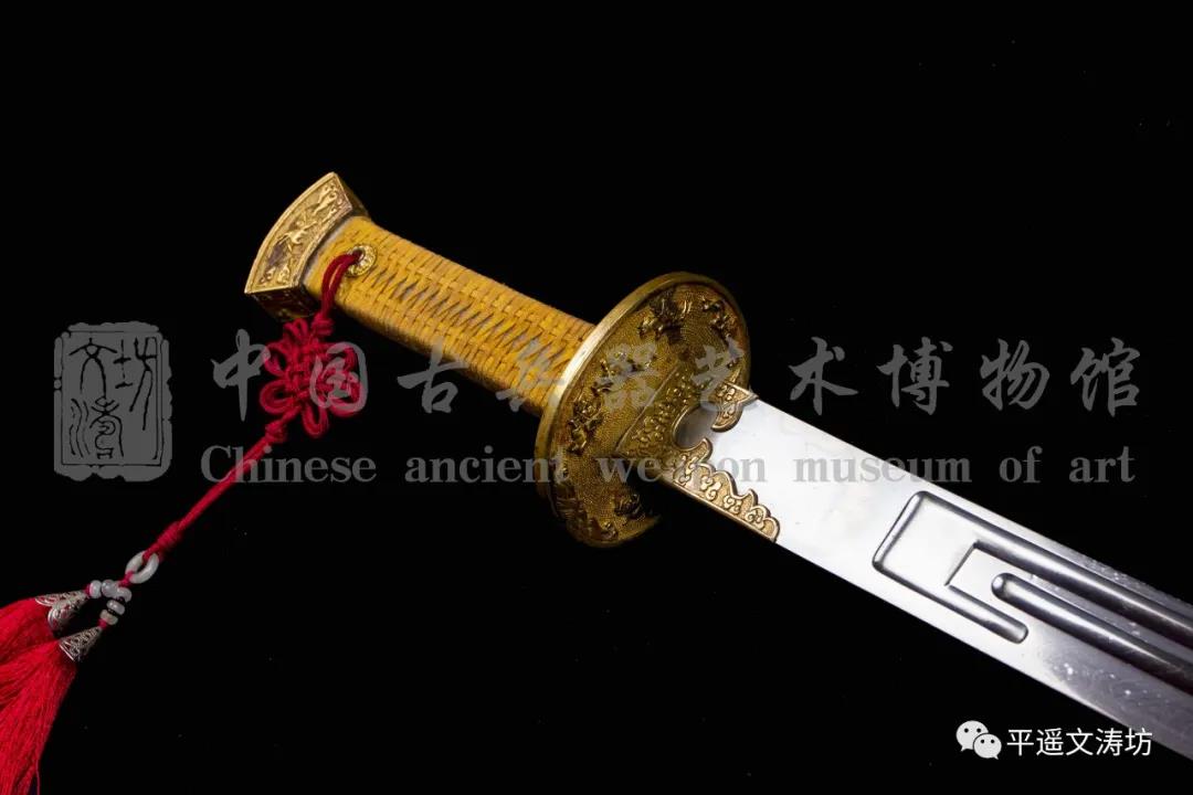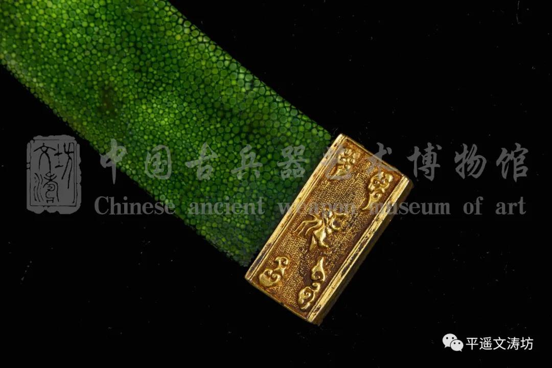 鎏金是一种传统的工艺,鎏金的目的是为了增添物品的高贵程度,而鎏金后可以更大程度的保护材质不被氧化而腐蚀掉。我们所见大多数鎏金物件多为铜质鎏金,而铁鎏金极少,铁质一般为简金。而这支刀采用了极少的铁鎏金工艺,这种工艺也是文涛坊研究数十年后,才得以突破。