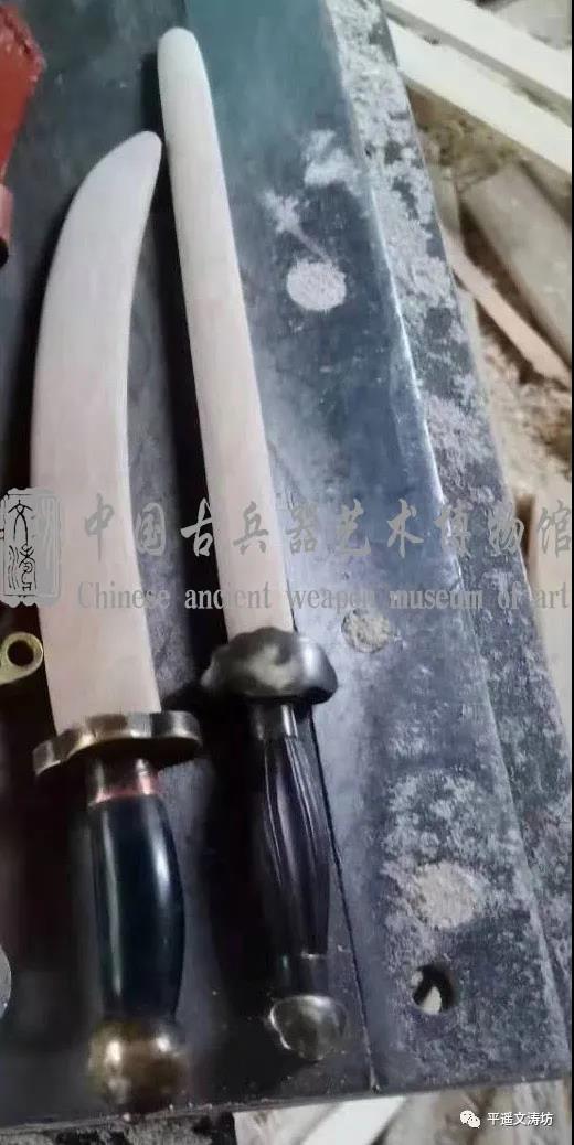 第一步,量身做鞘。手工制作,刀剑尺寸与