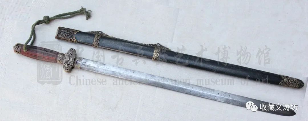 •清代镂空草龙剑• 材 料:镂空雕刻• 工 艺:传统工艺/手工阴刻穿枝牡丹• 规 格:总长84cm /刃长 60cm/ 刃宽 3cm / 刃厚 0.6cm
